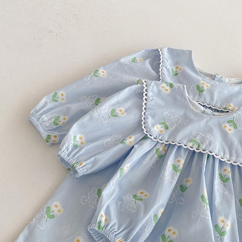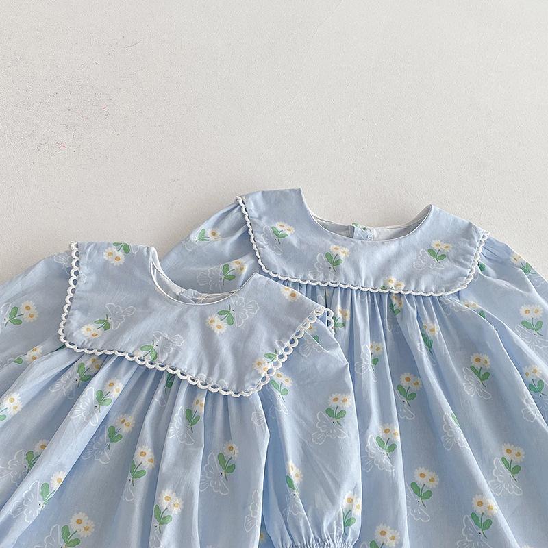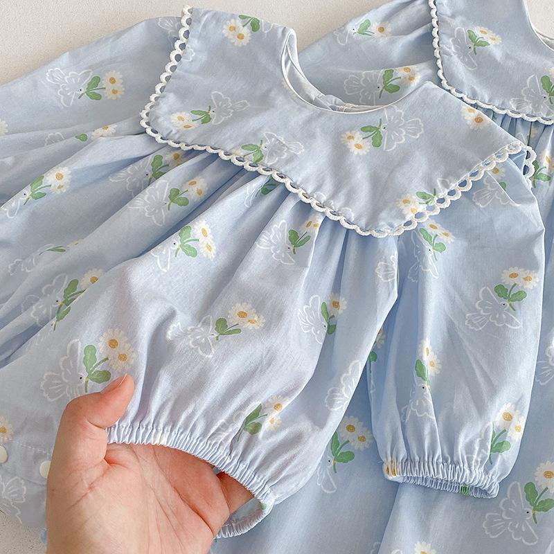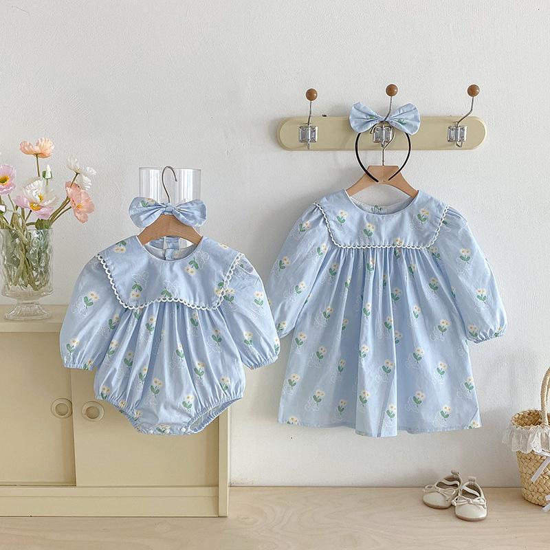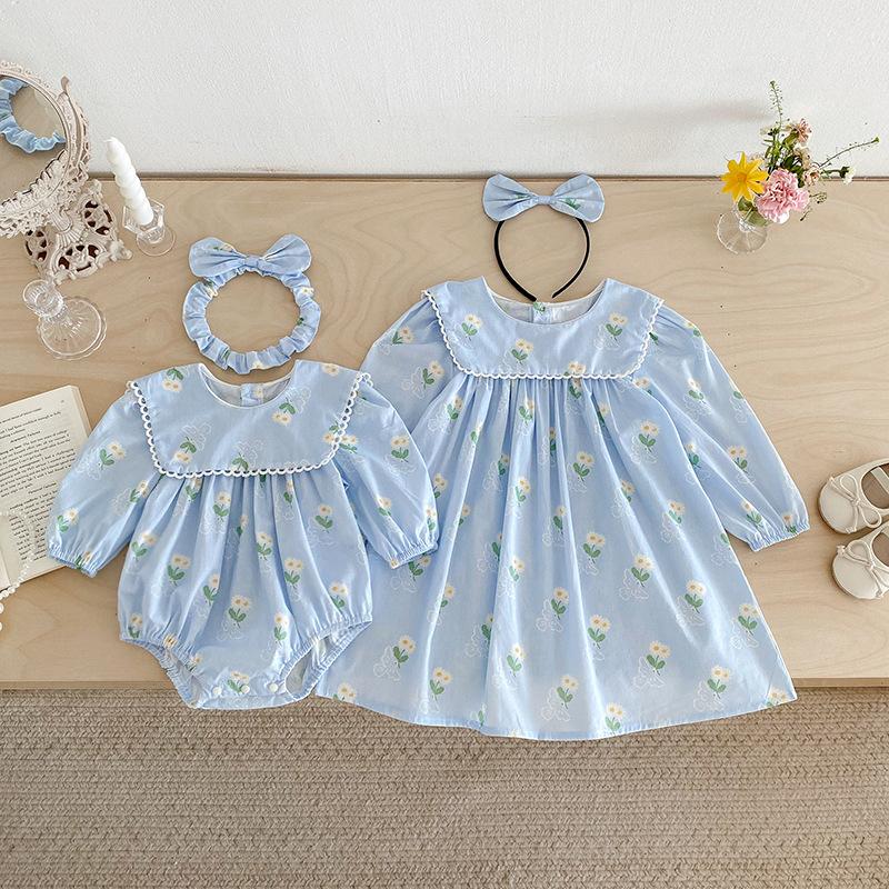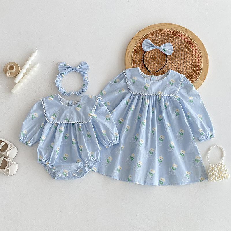 Mameluco Otoñal 2025 Ropa de Bebé Niña Princesa Body Manga Larga Vestido Floral Dulce Conjuntos de Hermanas