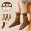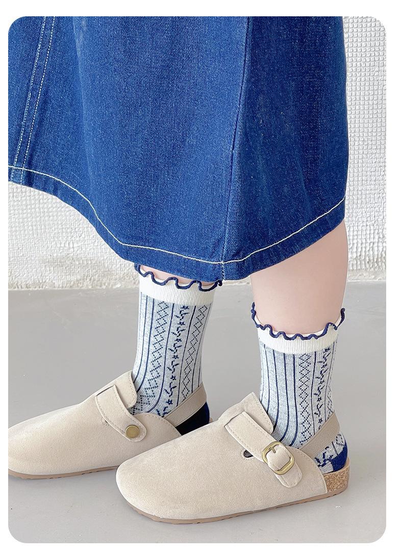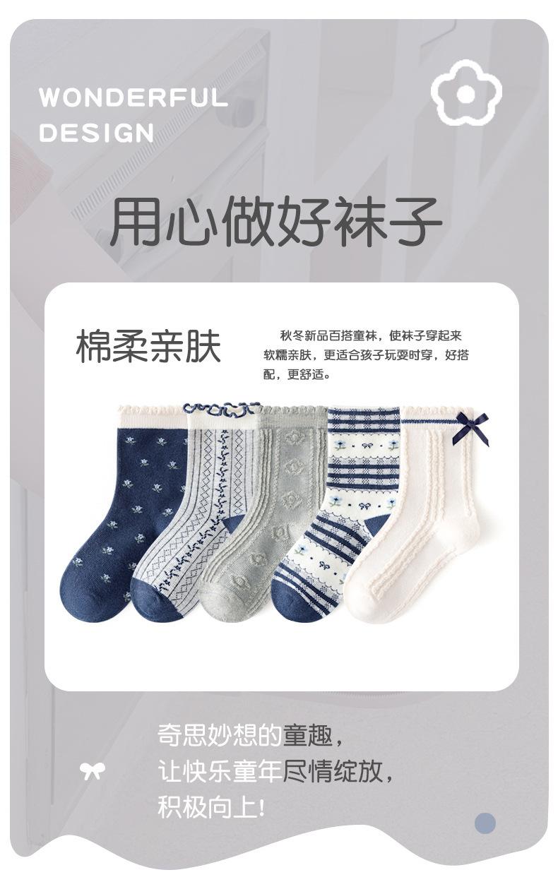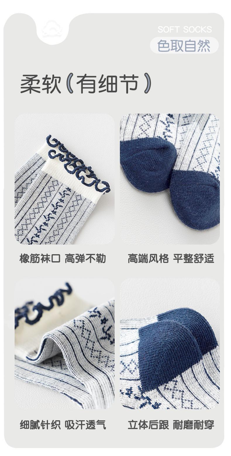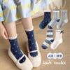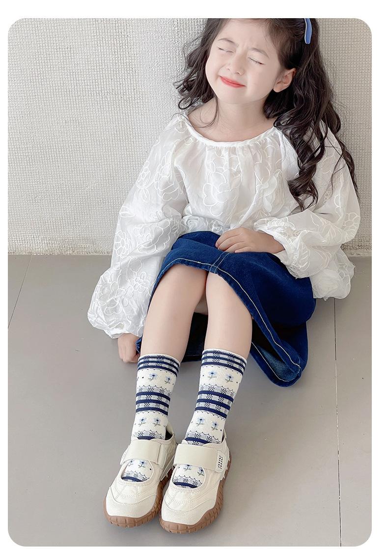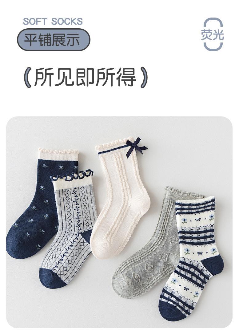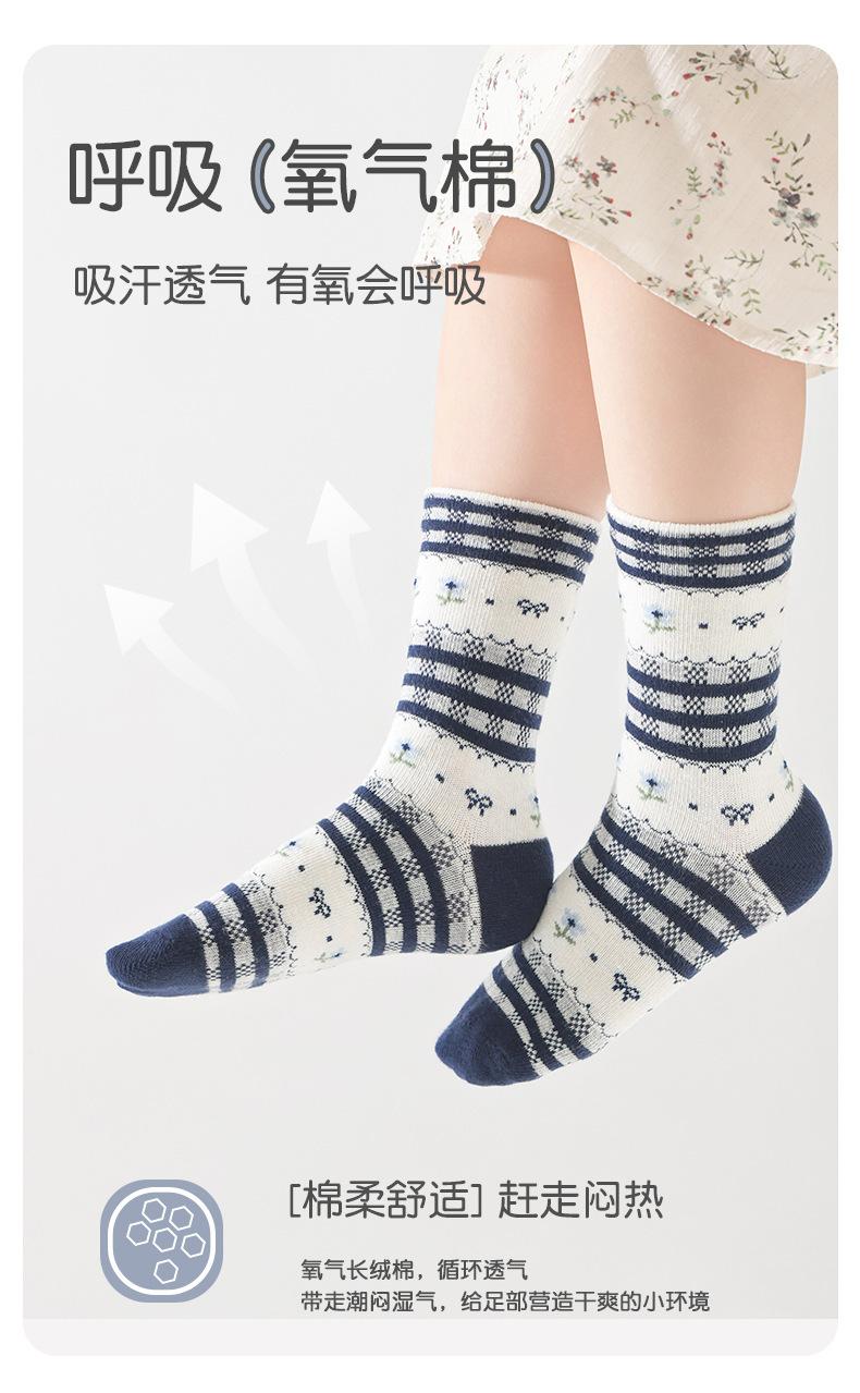 Calcetines Nuevos para Niñas Primavera Otoño Estilo Mori Azul Marino Florales Media Caña Calcetines Japoneses Encaje Lazo Calcetines de Princesa Calcetines para Niños
