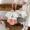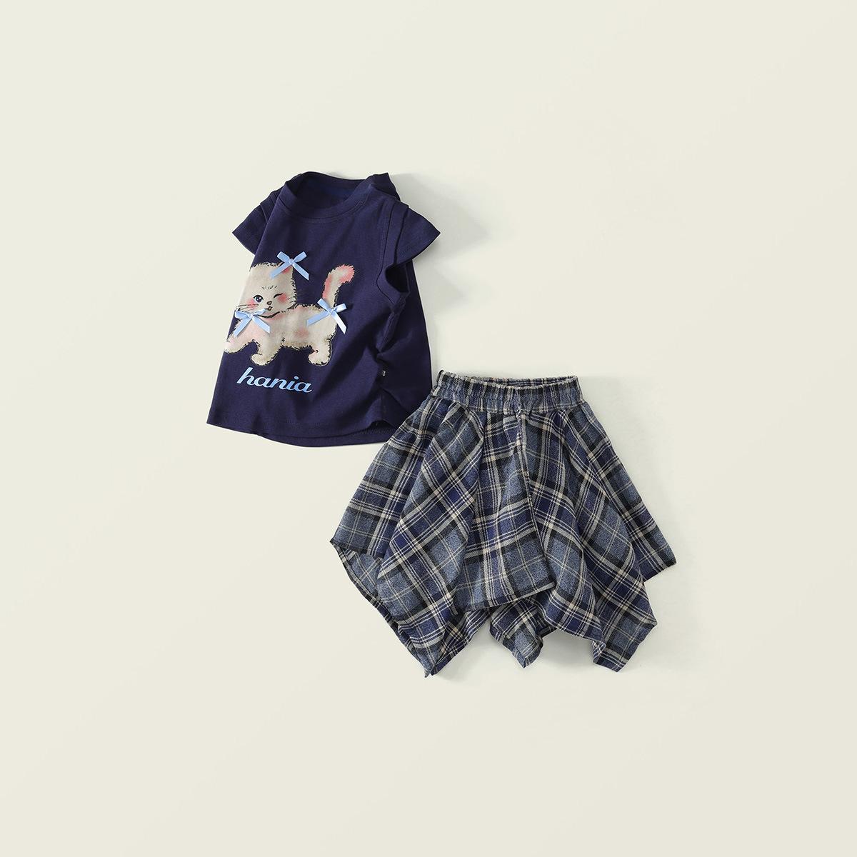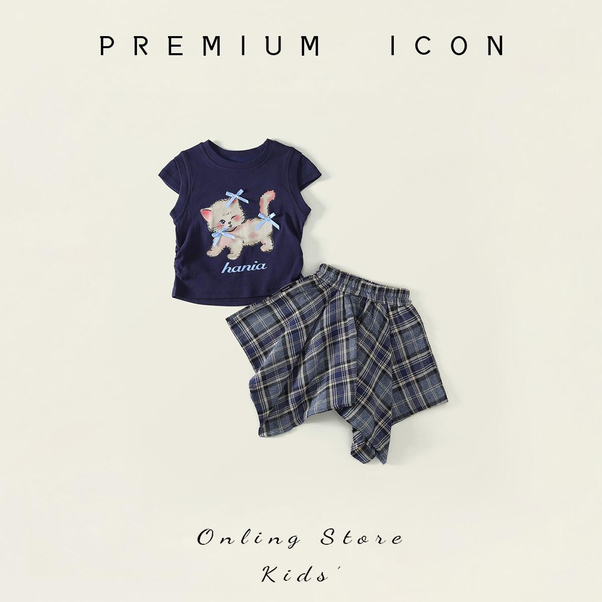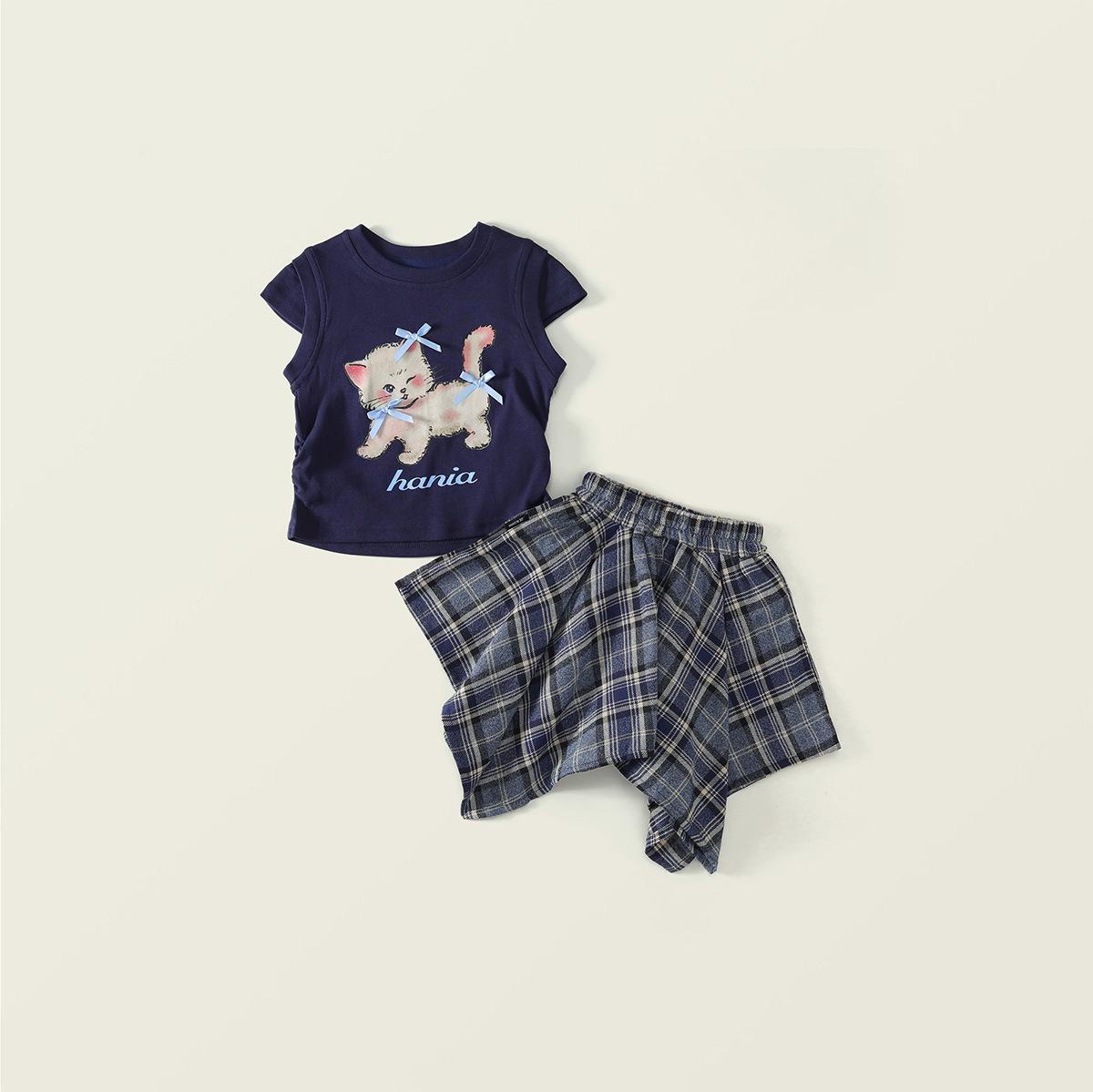 Conjunto para Niñas 2025 Nuevo Verano Bebé Dibujos Animados Camiseta Falda Pantalón a Cuadros a la Moda Estilo Coreano Trendy Versátil Ropa de Verano
