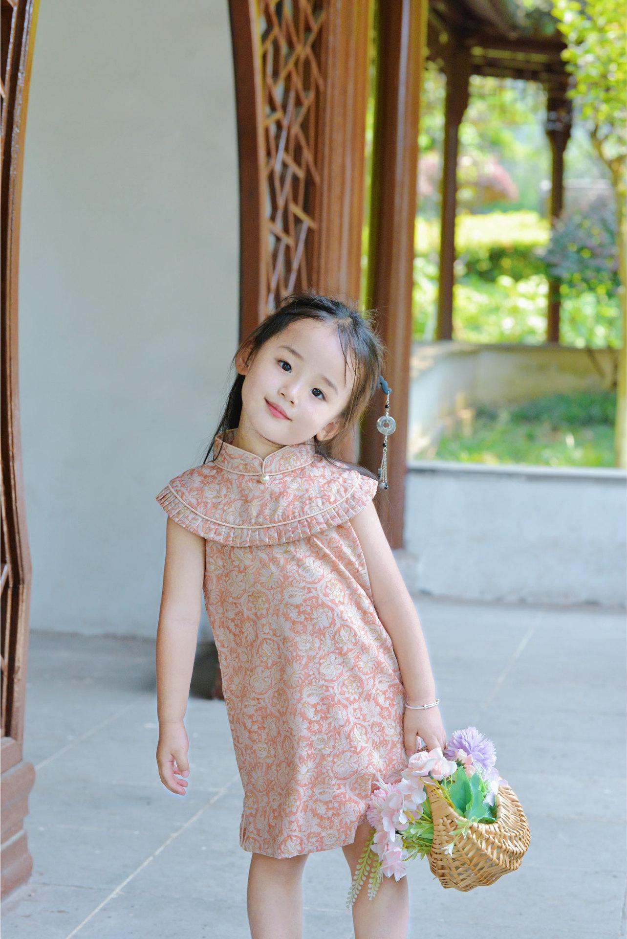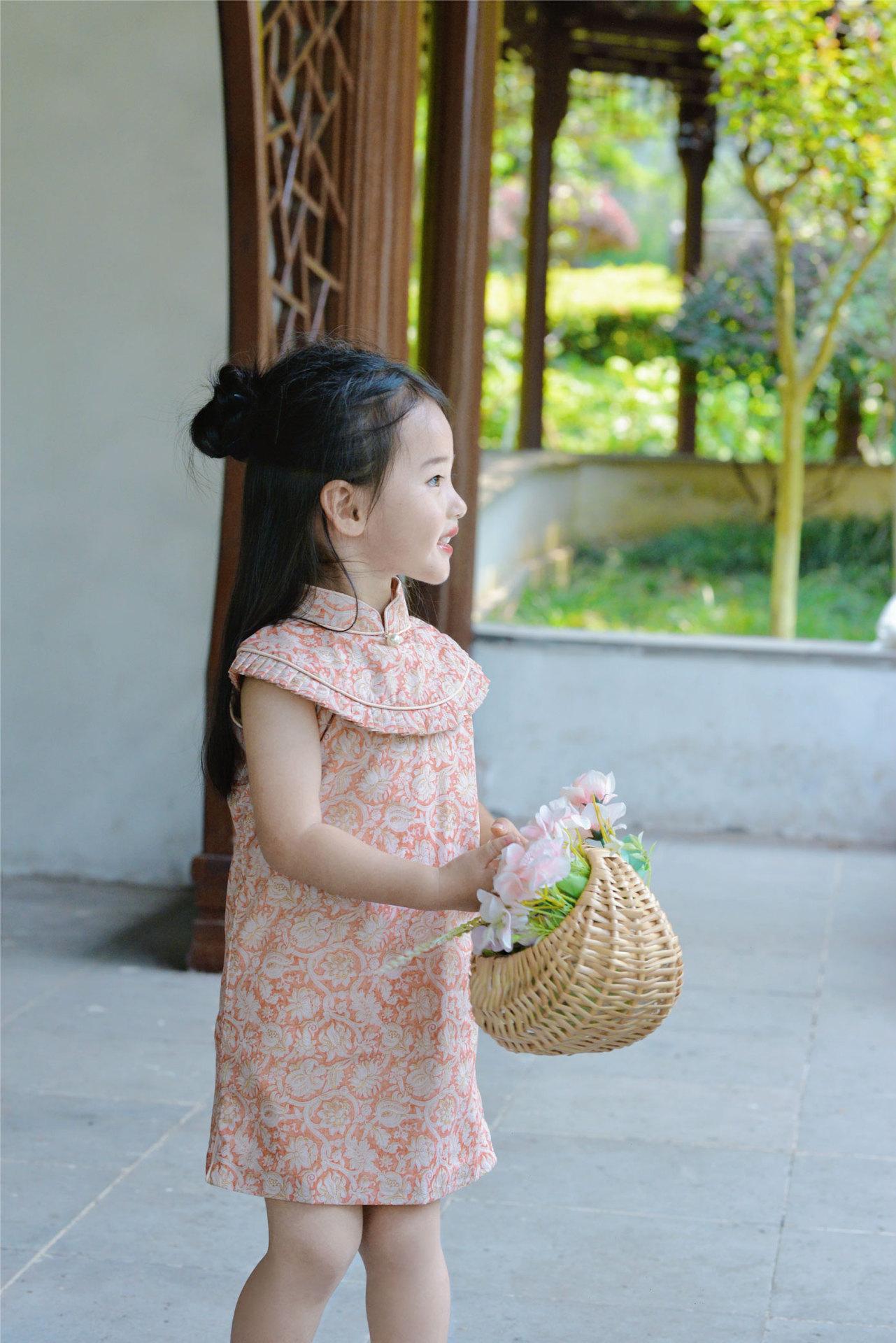 Ropa para Niñas Vestido Cheongsam Rosa sin Mangas con Tótem 2025 Primavera y Verano Nuevo Vestido Falda para Niños Bebé