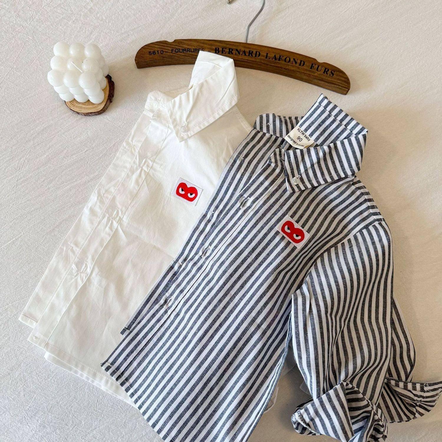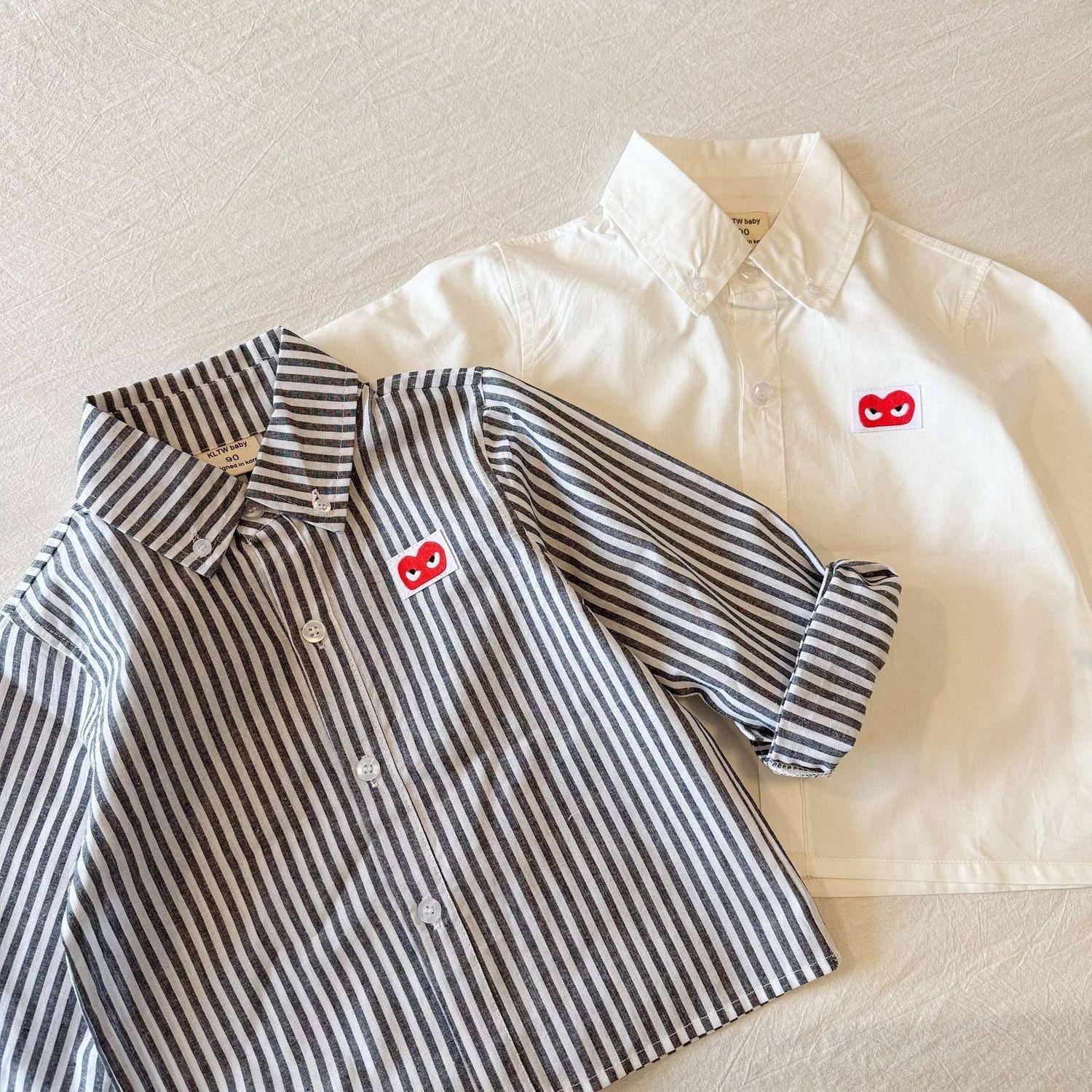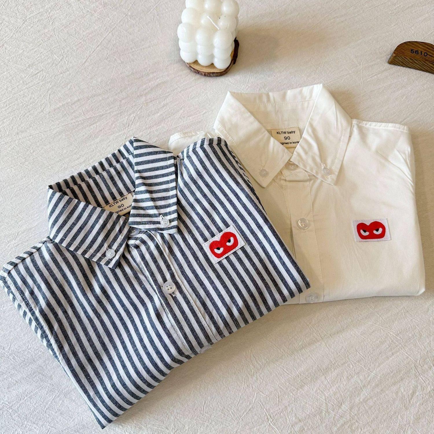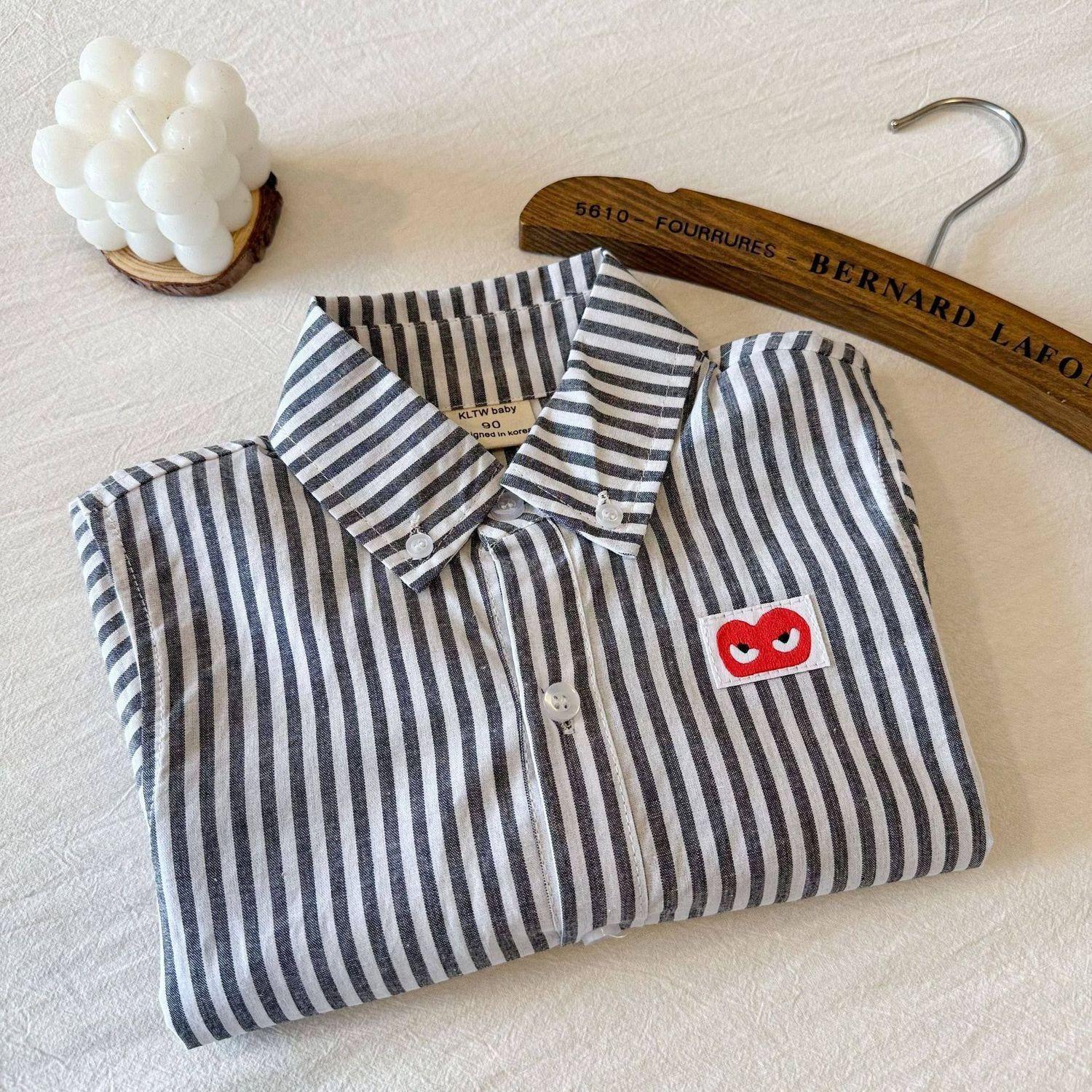 Camisa de rayas de moda para niños de primavera y otoño, nuevo cárdigan bordado con logo pequeño coreano para niño y niña, camisa de manga larga, chaqueta