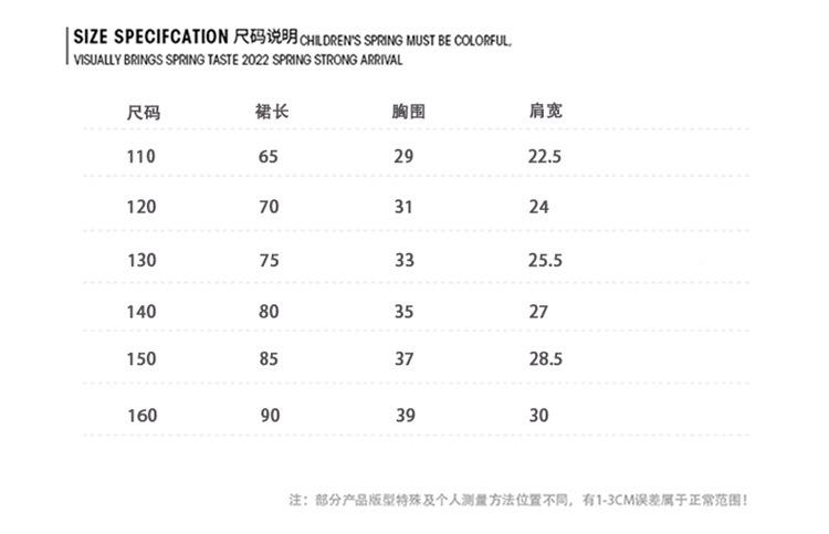 110cm, 120cm, 130cm, 140cm, 150cm, 160cm
