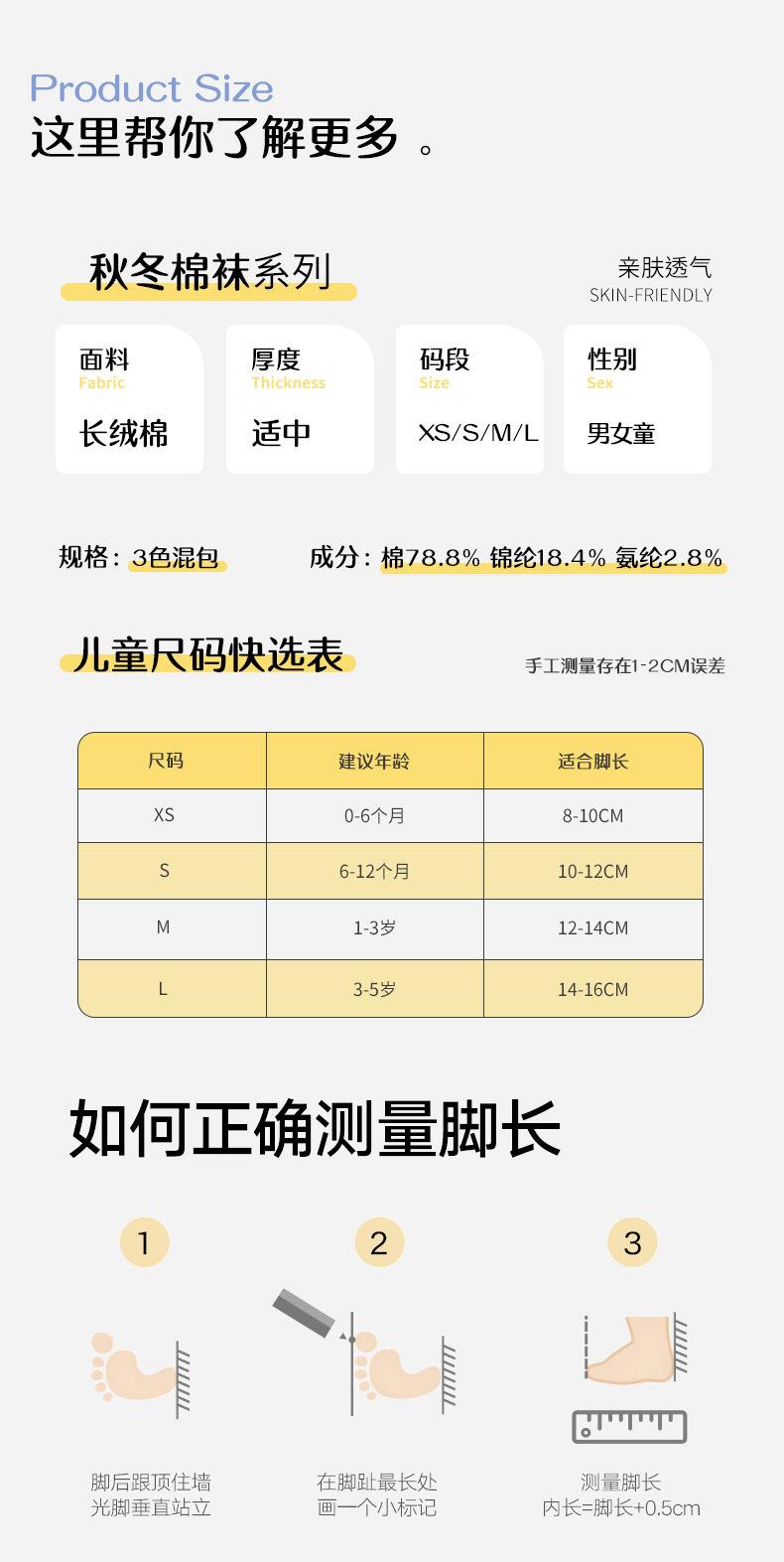 XS code 0-6 months, S size 6-12 months, M size 1-3 years old, Size L 3-5 years old