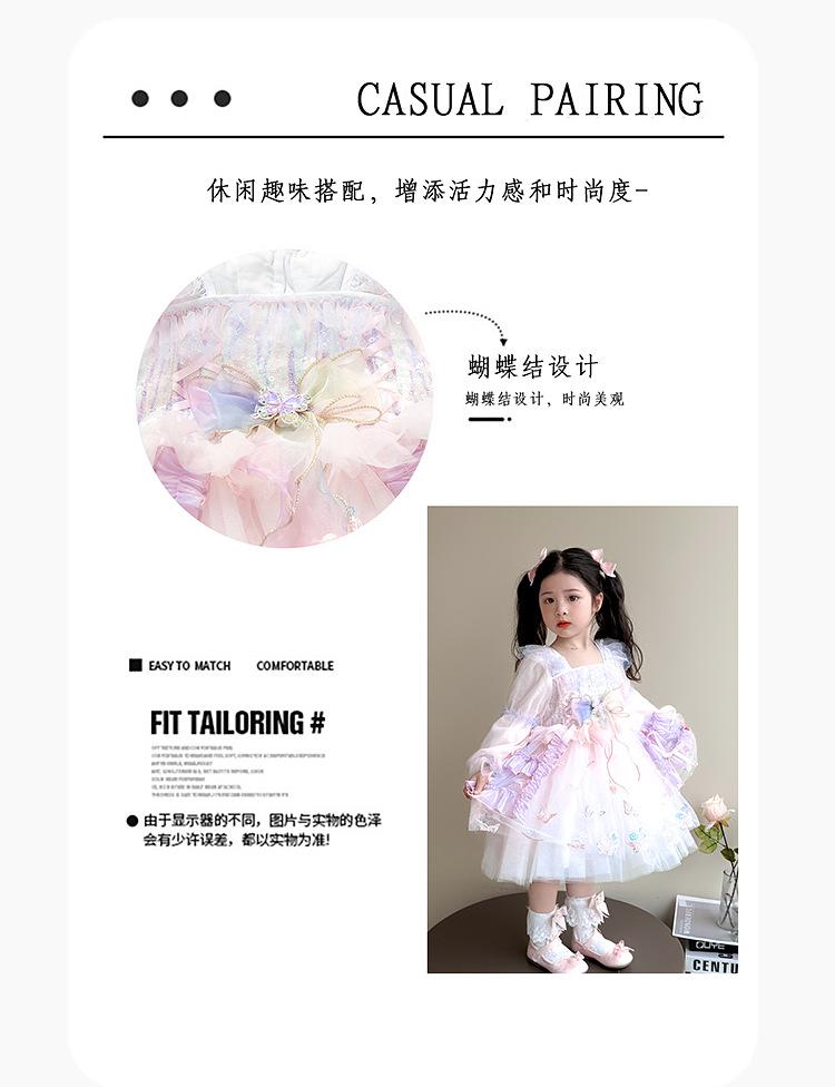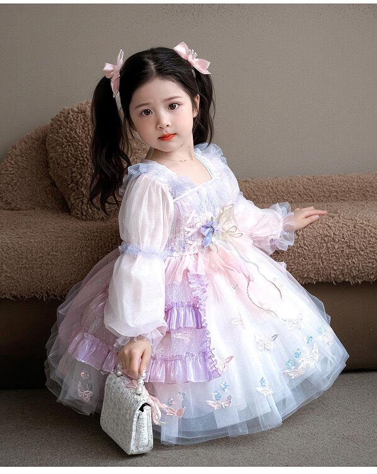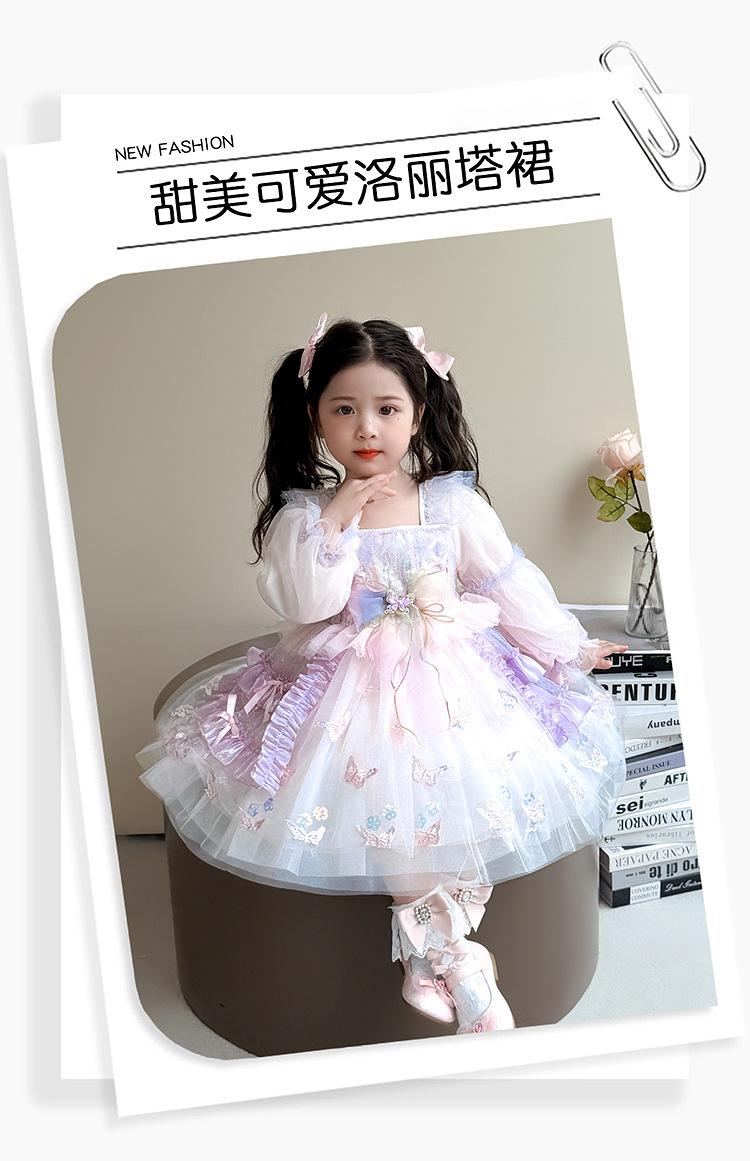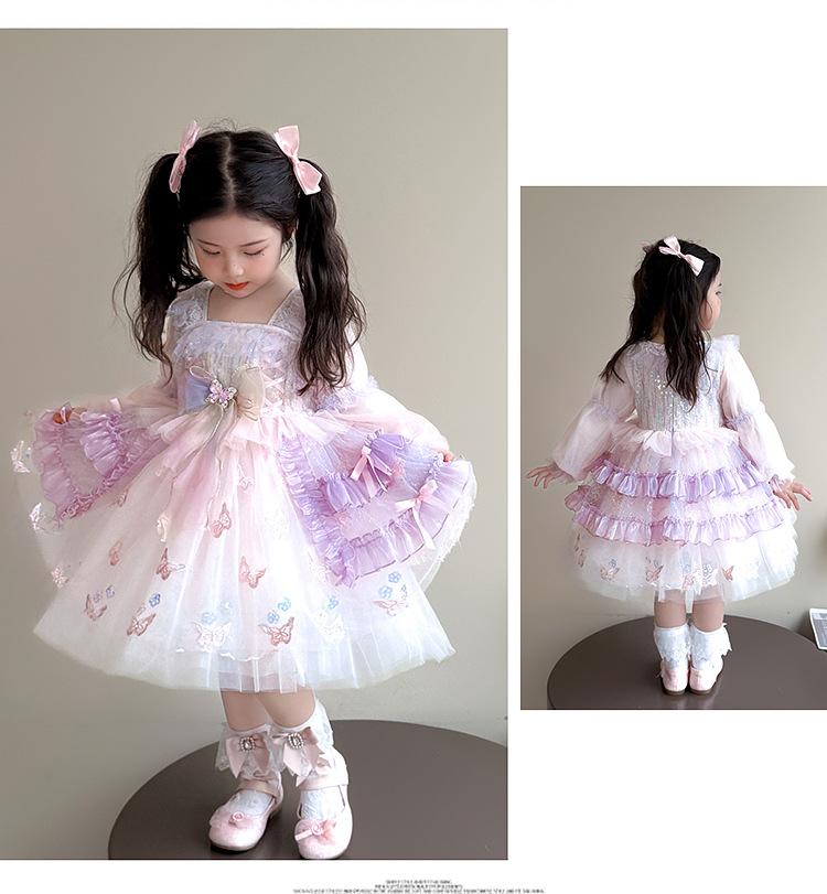 Vestido de Princesa Lolita para Niñas Primavera Otoño 2025 Nueva Moda Vestido de Tul Infantil Vestido de Cumpleaños para Niña