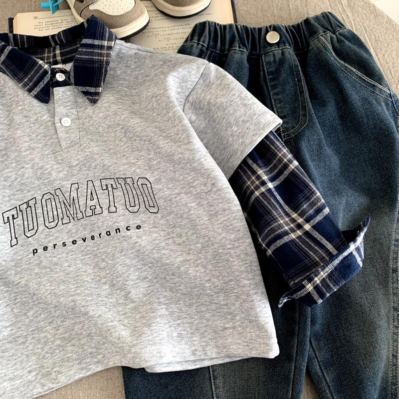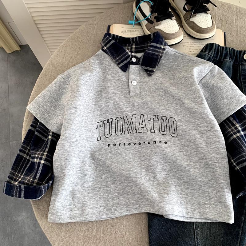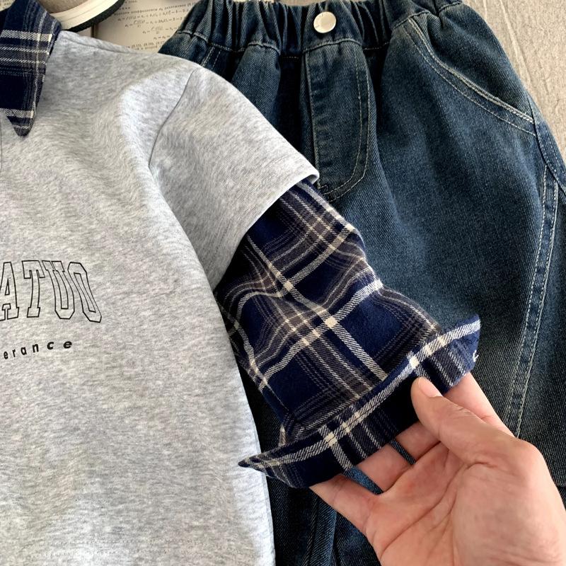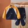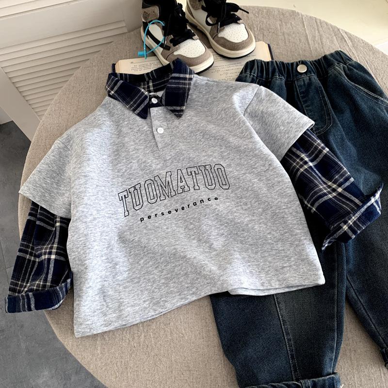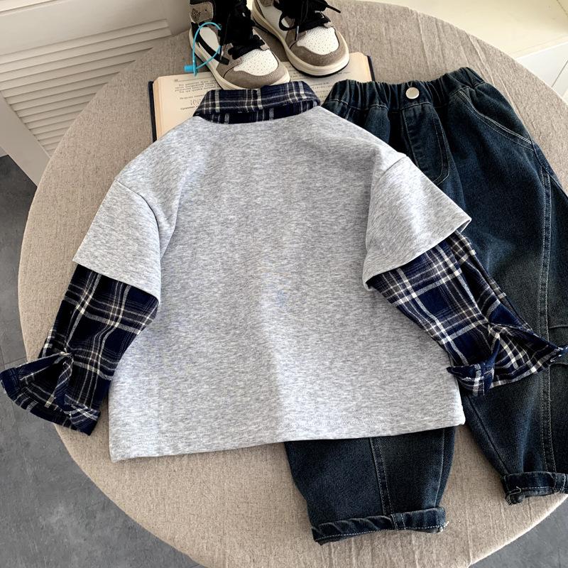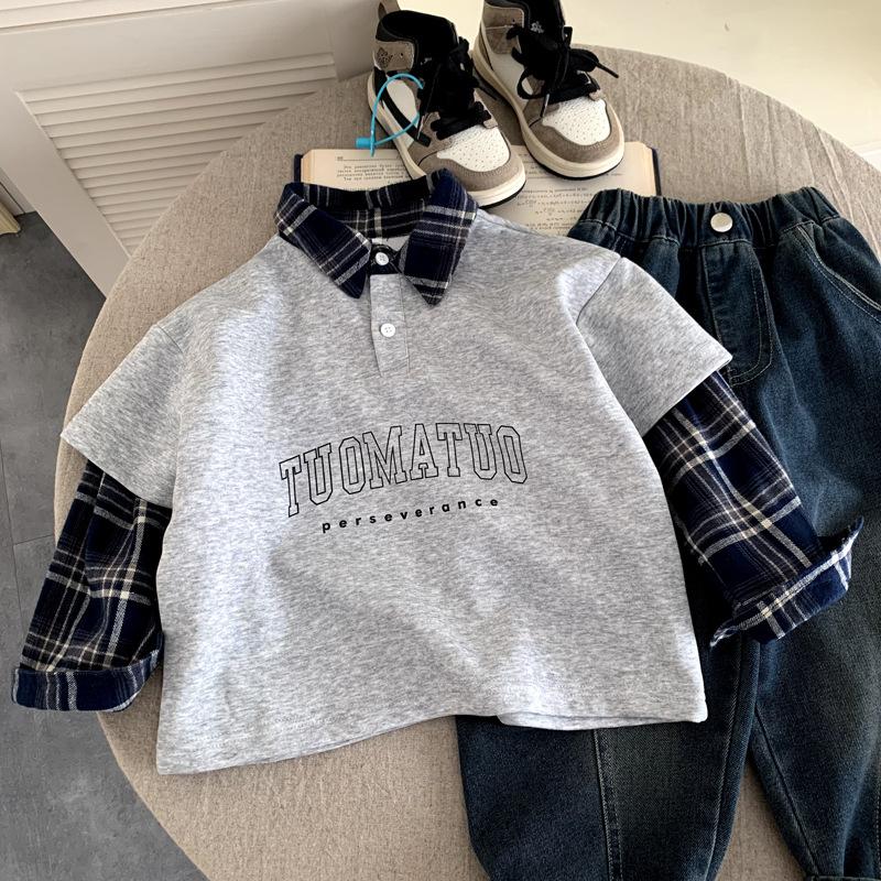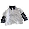 Sudadera de dos piezas falsas para niño 2025 Nuevo estilo Ropa de otoño para niños a la moda Top de bebé Ropa para niños pequeños y medianos Estilo de primavera y otoño Trendy