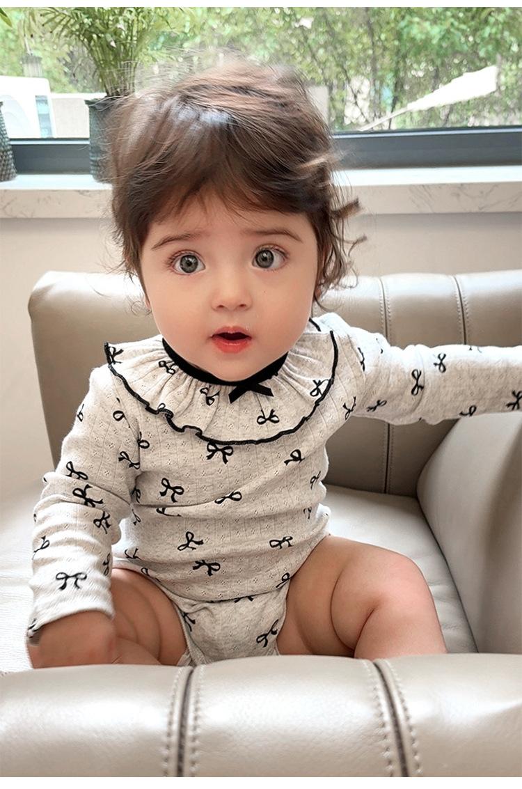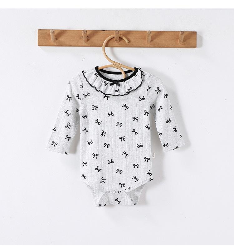 Body de Manga Larga para Bebé Otoño Algodón Puro Clase A Ropa para Recién Nacido Mameluco con Cuello de Encaje para Bebé Traje para Gatear