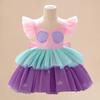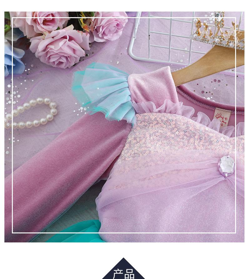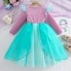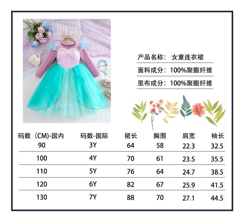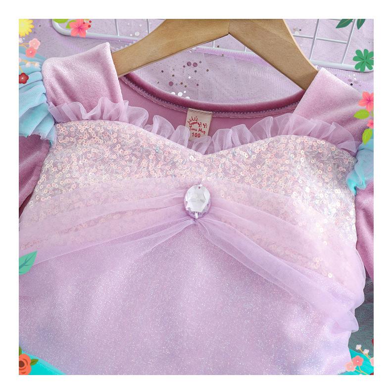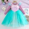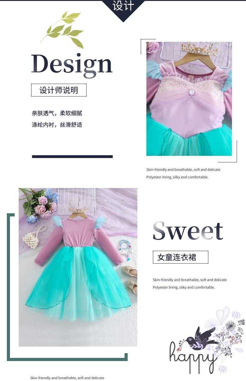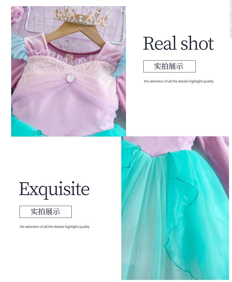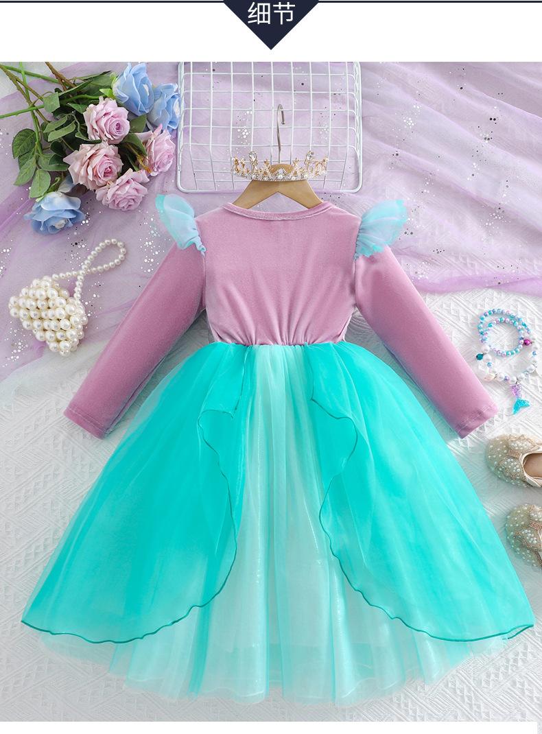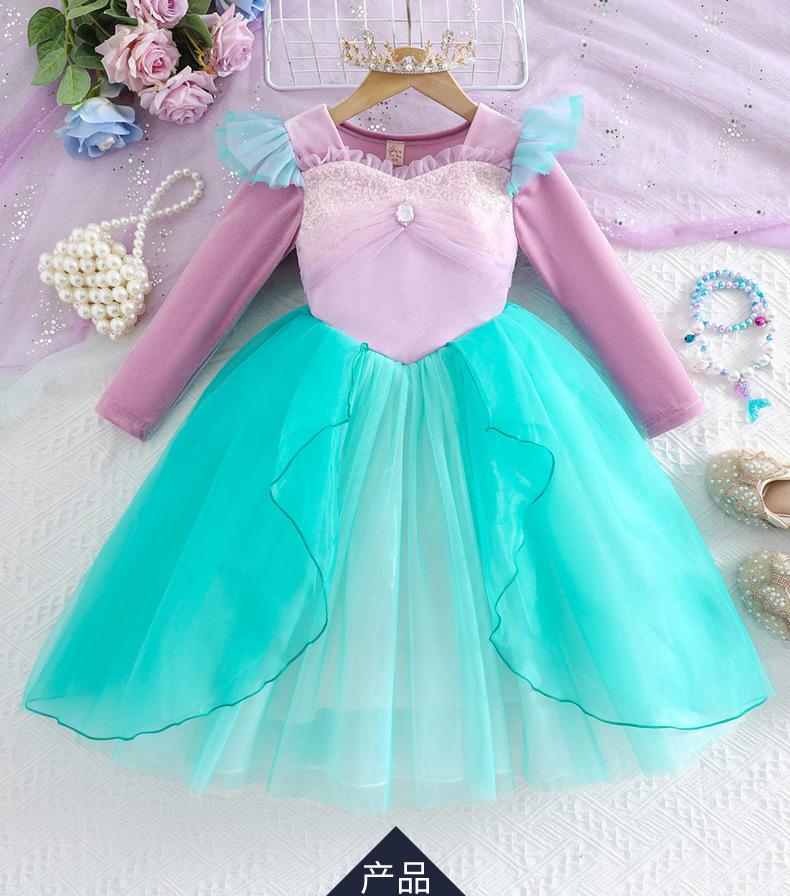 Nuevo Vestido de Princesa Sirena con Gema para Niñas Otoño e Invierno Transfronterizo Vestido de Manga Larga con Manga Mariposa para Fiesta de Navidad