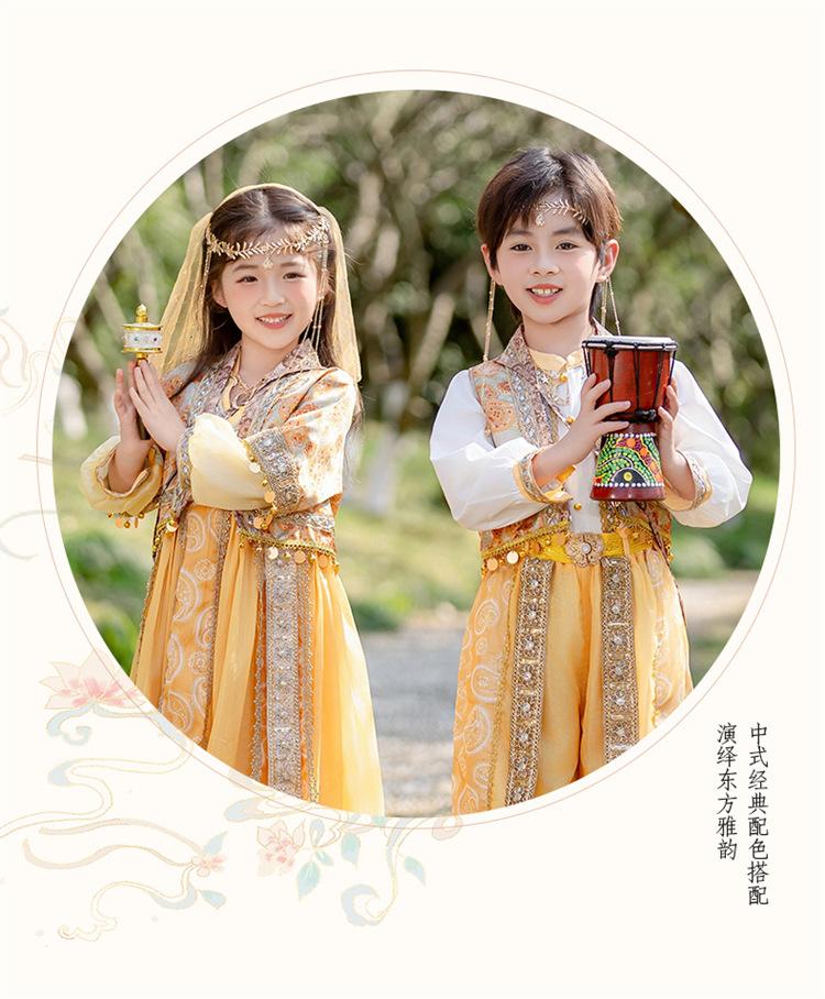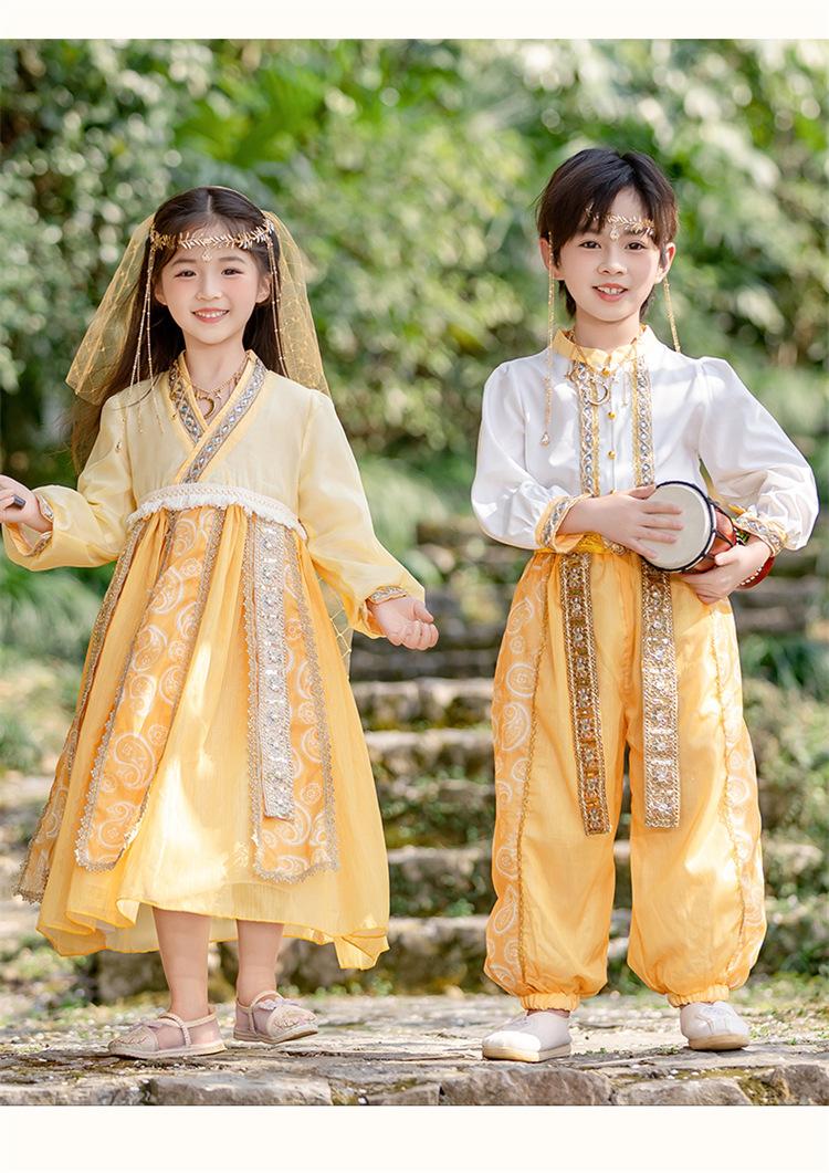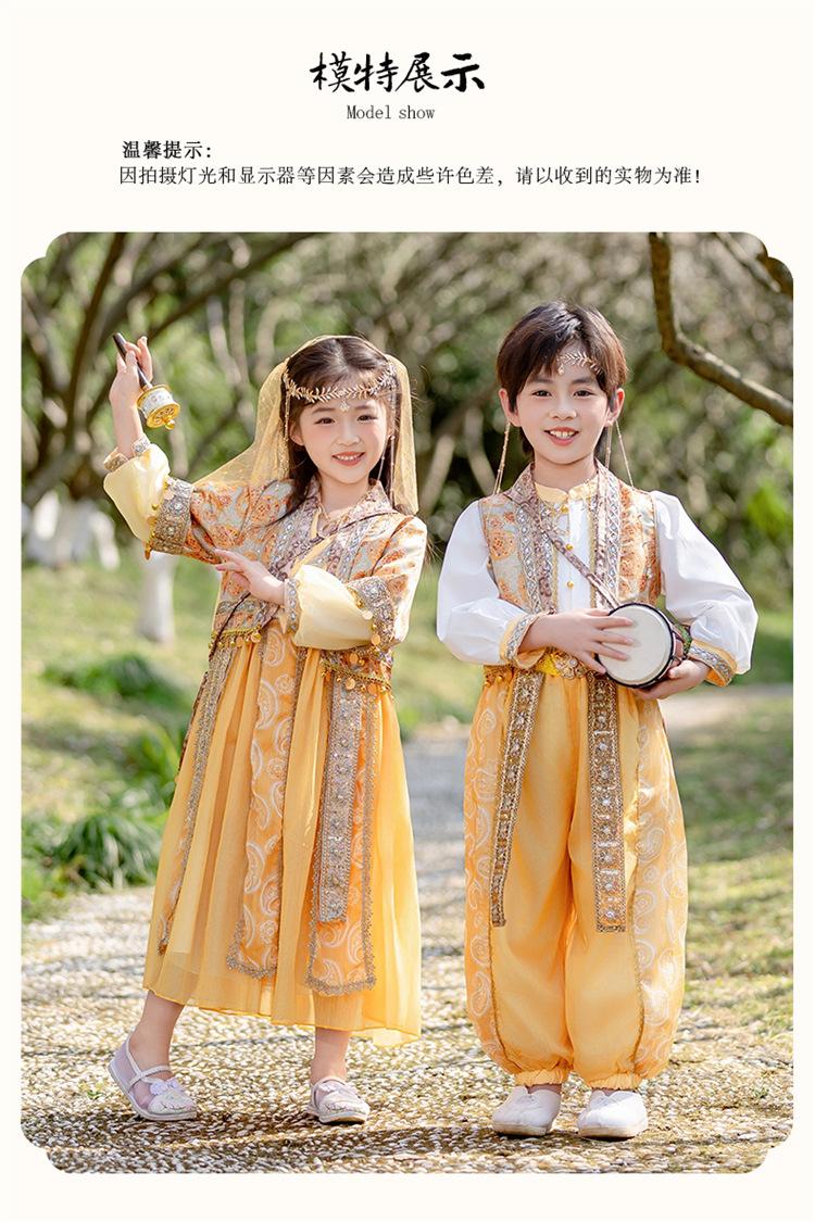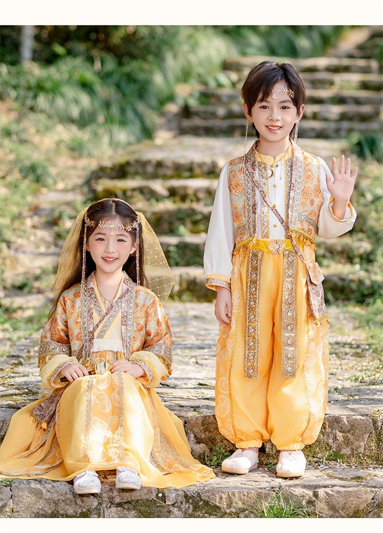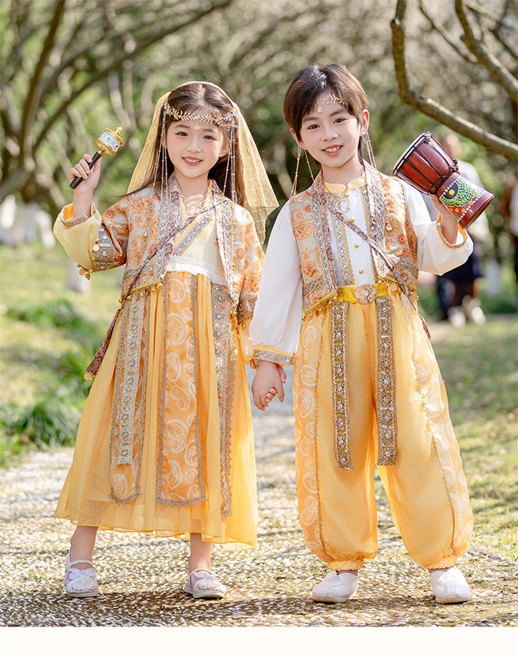 Traje Infantil de Estilo Étnico de las Regiones Occidentales de Xinjiang Traje Antiguo Estilo Chino Hanfu para Niño Pequeño Traje de Danza Uigur