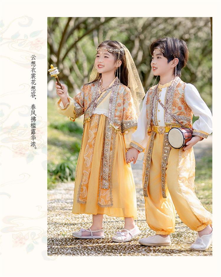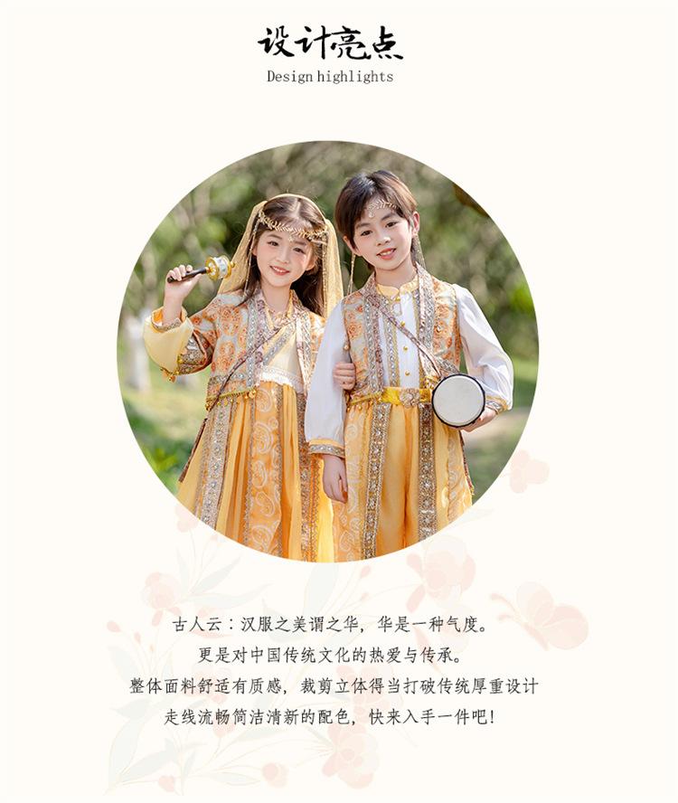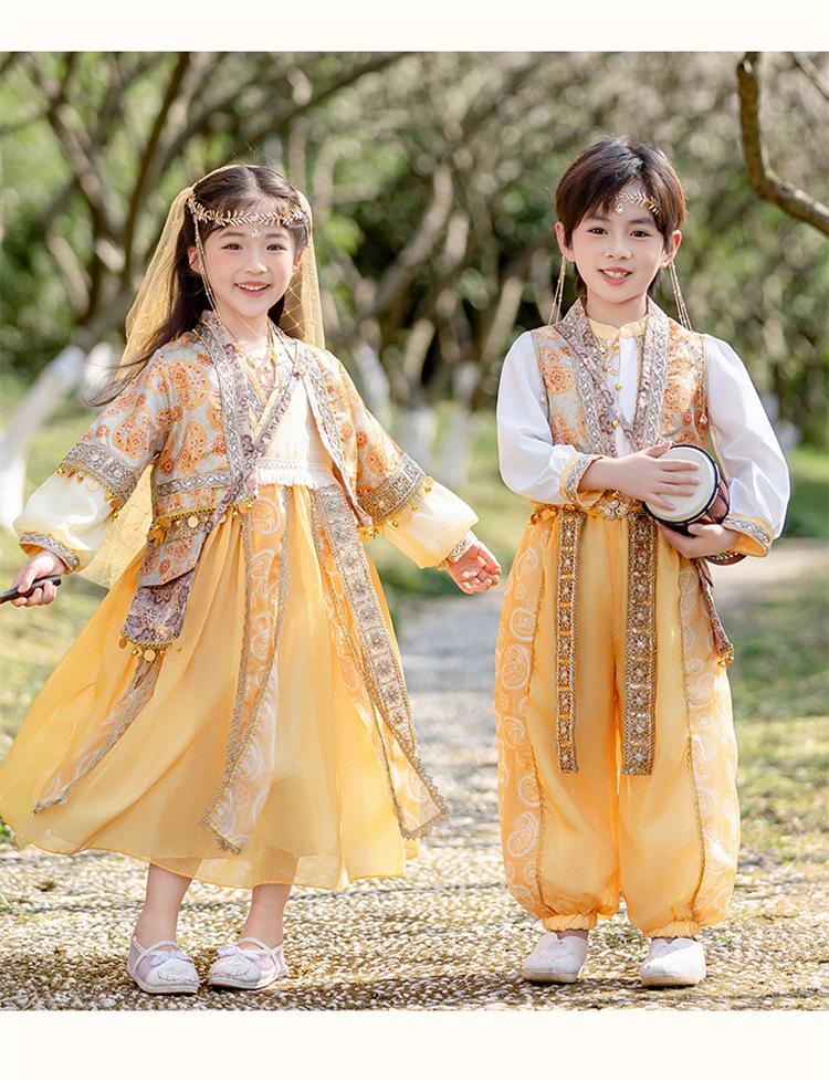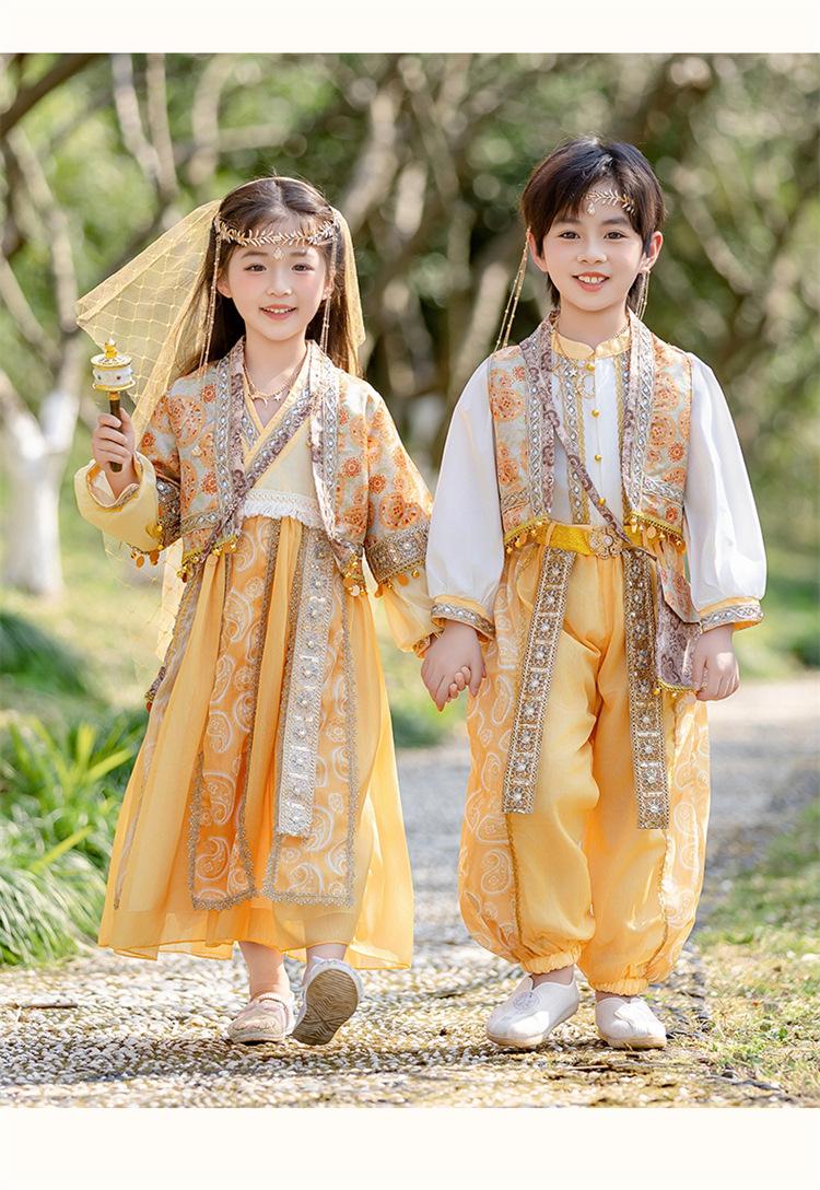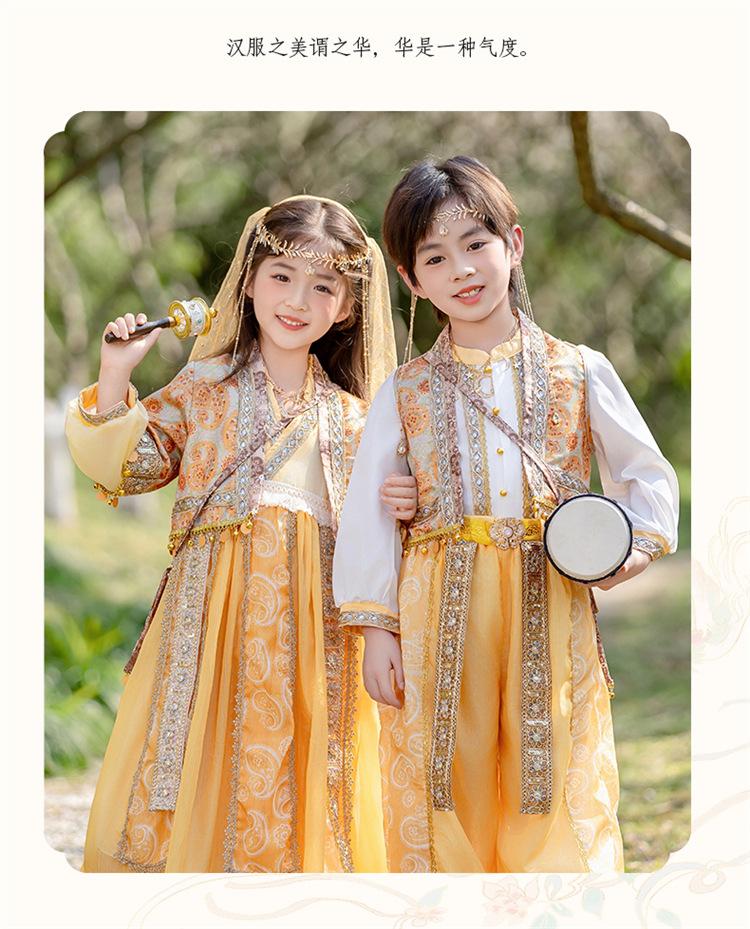 Traje Infantil de Estilo Étnico de las Regiones Occidentales de Xinjiang Traje Antiguo Estilo Chino Hanfu para Niño Pequeño Traje de Danza Uigur