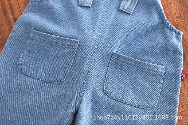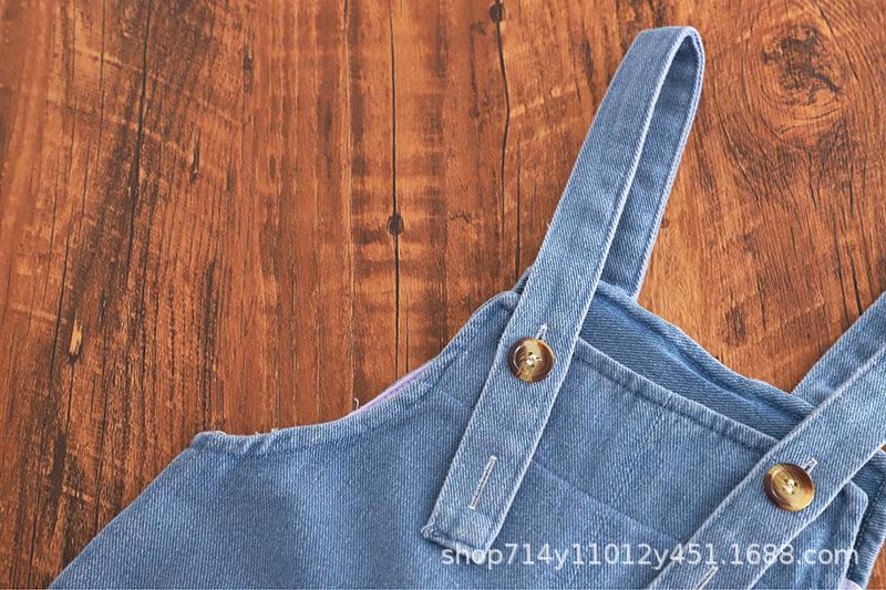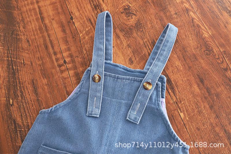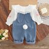 Long Sleeve Embroidered Rabbit Overalls Set Blue