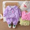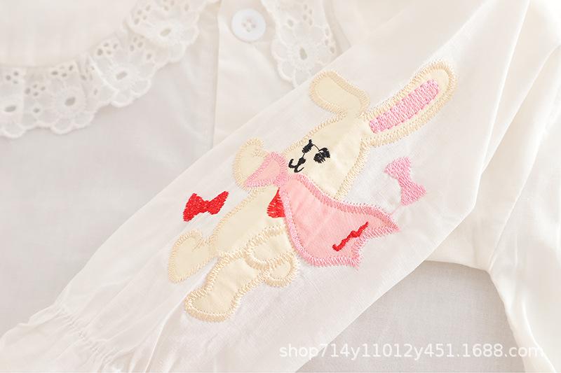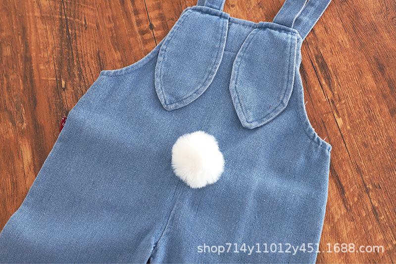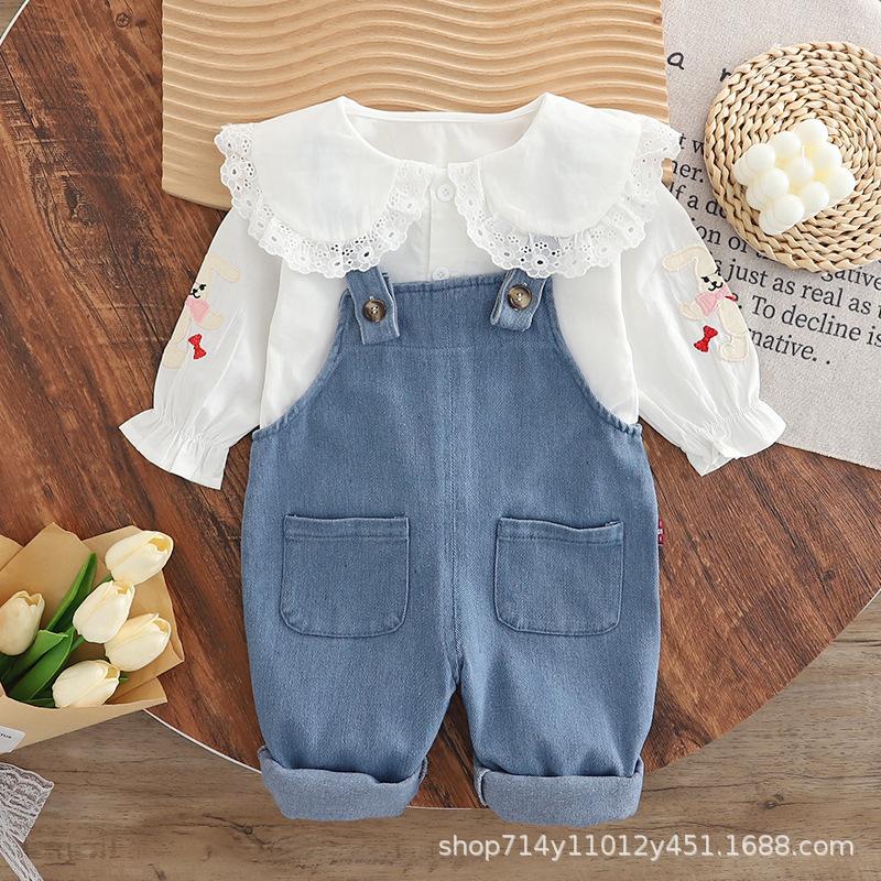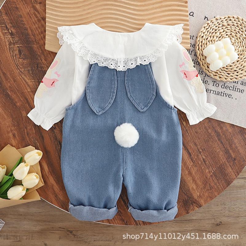 Conjunto Dulce de Manga Larga para Niña 2025 Otoño Nuevo Estilo Bebé Niña Lindo Manga Larga Conejo Bordado Overol Conjunto de Dos Piezas