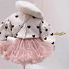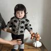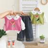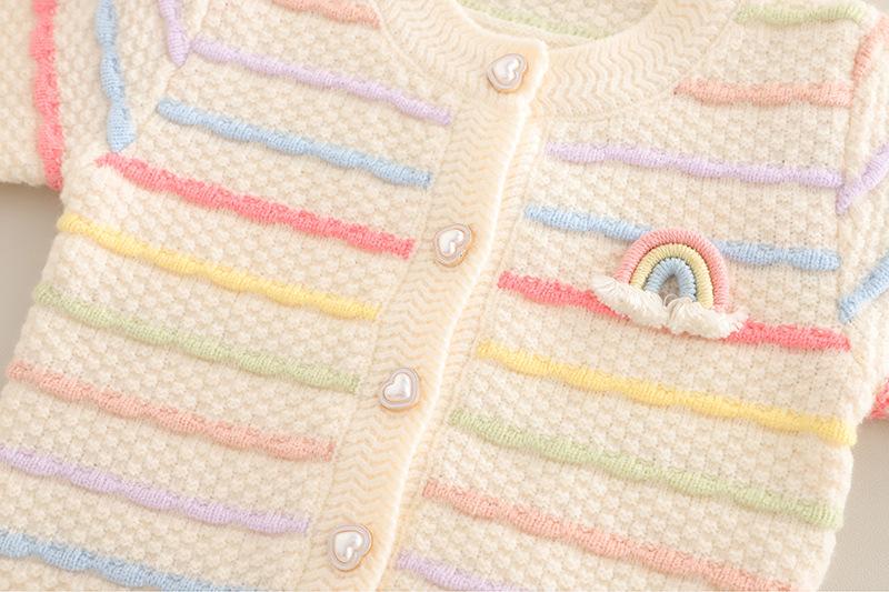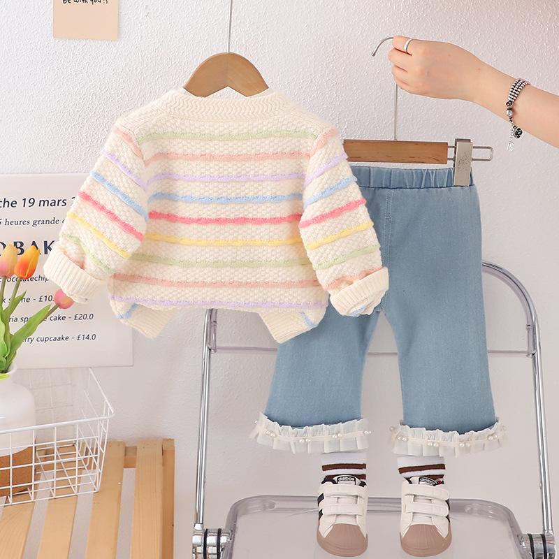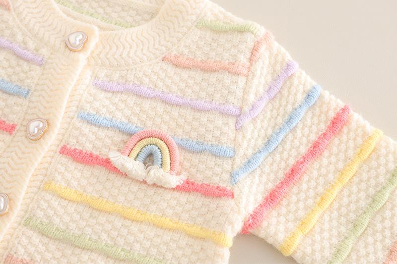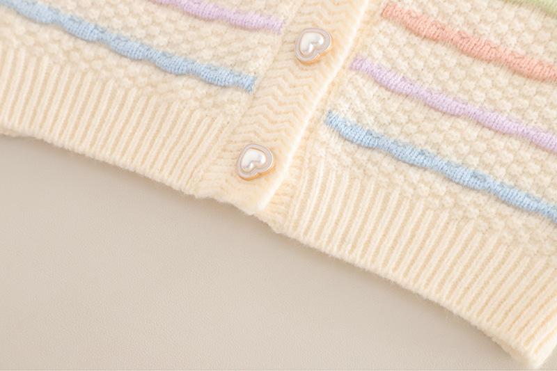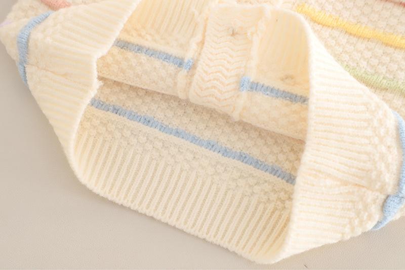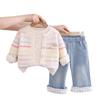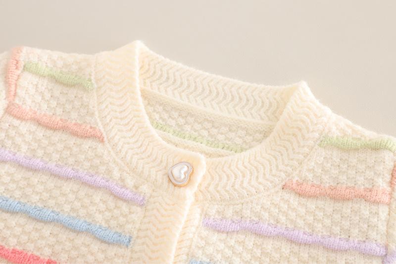 Conjunto de Tres Piezas Tejido para Bebé Niña Otoño e Invierno Manga Larga 2025 Colorido Estilo Coreano Nuevo Estilo Cárdigan de Moda para Niño Pequeño Rayado