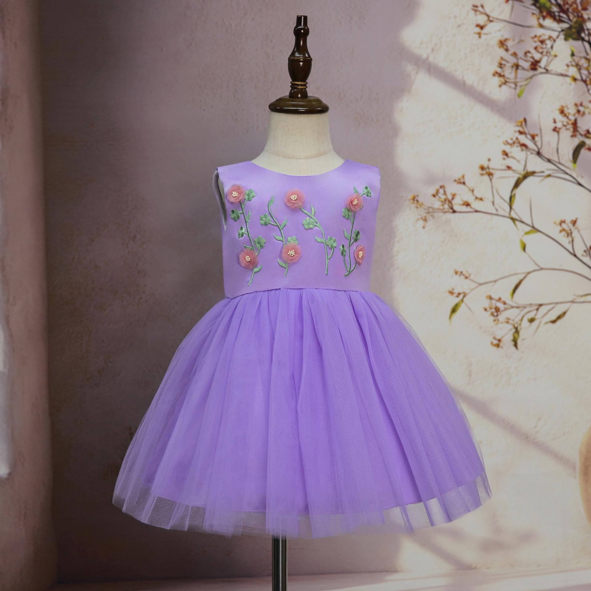 Vestido de un año niña morado luna llena vestido de princesa anfitrión vestido para presentación de piano vestido infantil comercio exterior