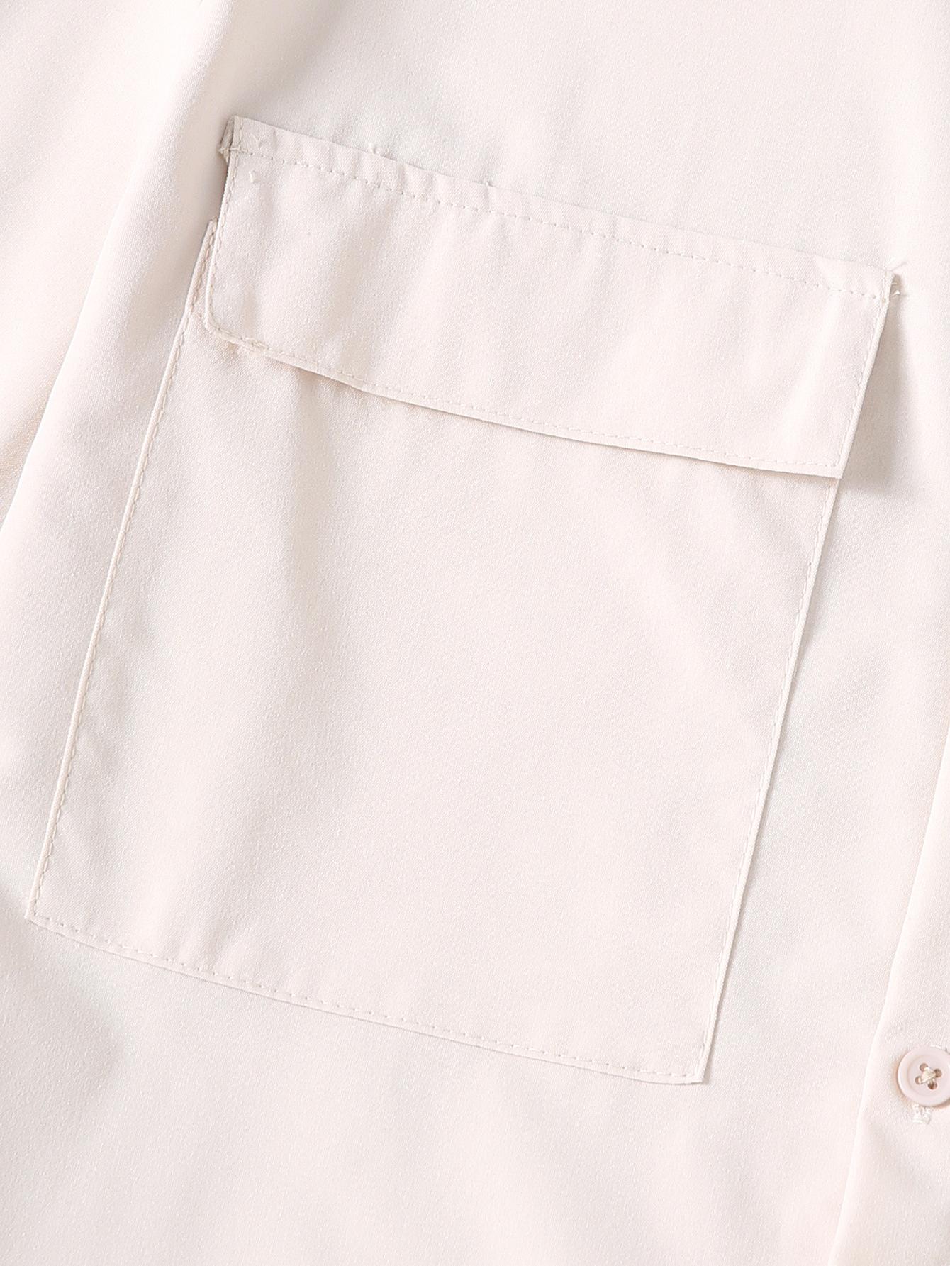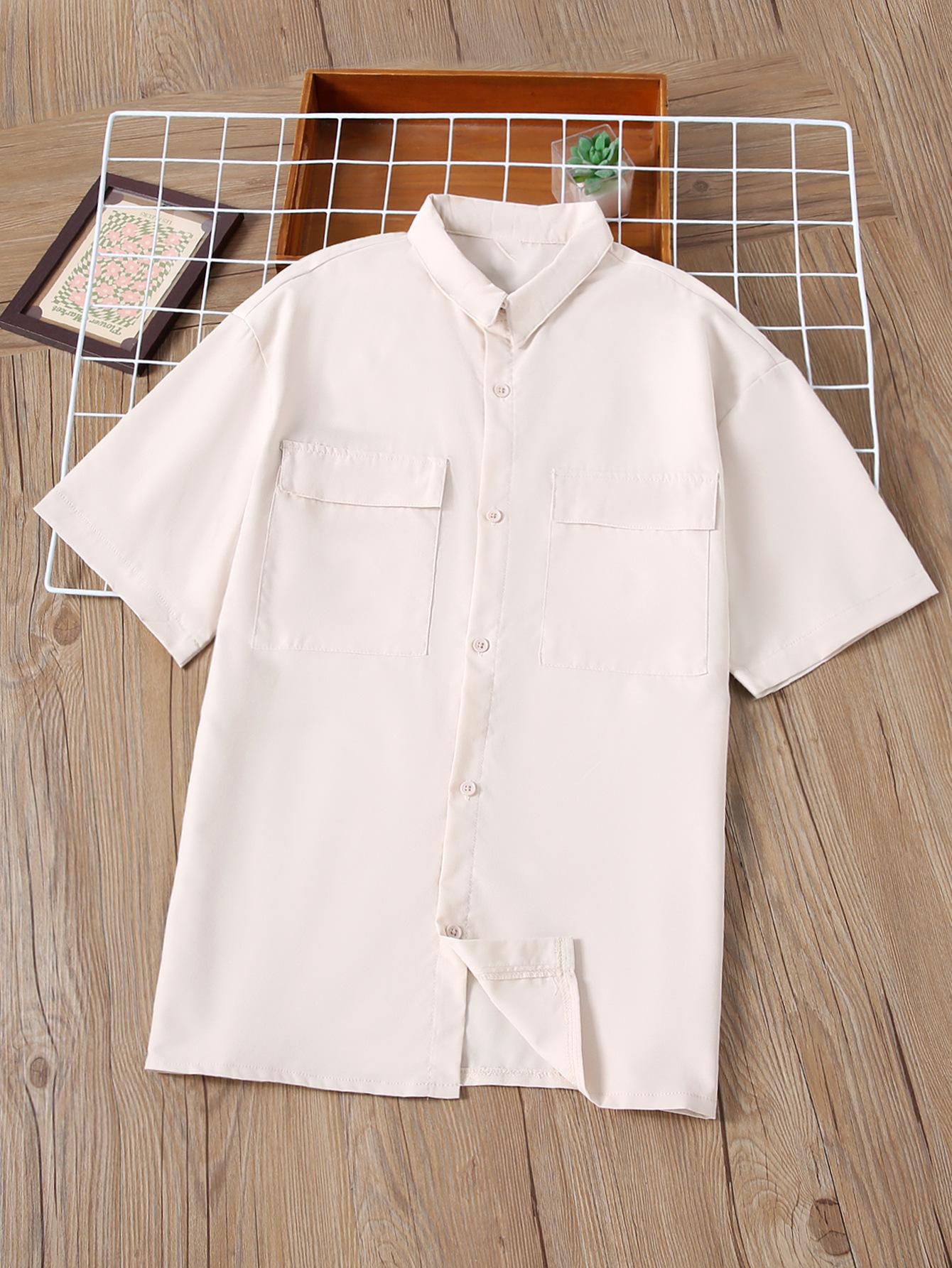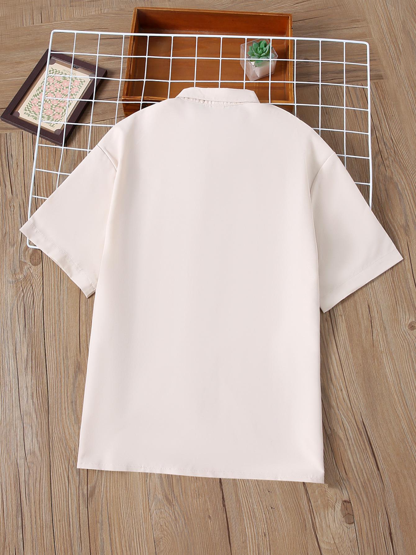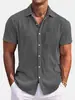 Camisa de Manga Corta con Cuello Vuelto para Jóvenes de Verano Transfronteriza 2025 Color Sólido Doble Bolsillo Top Casual Diario Amazon
