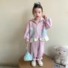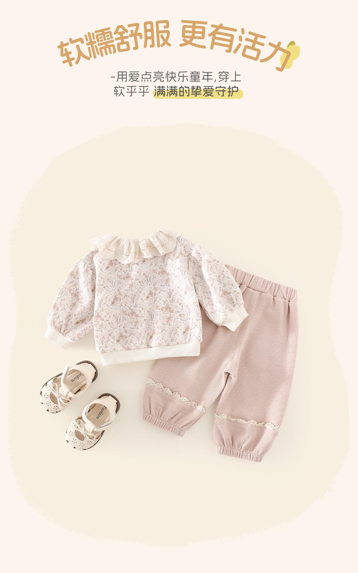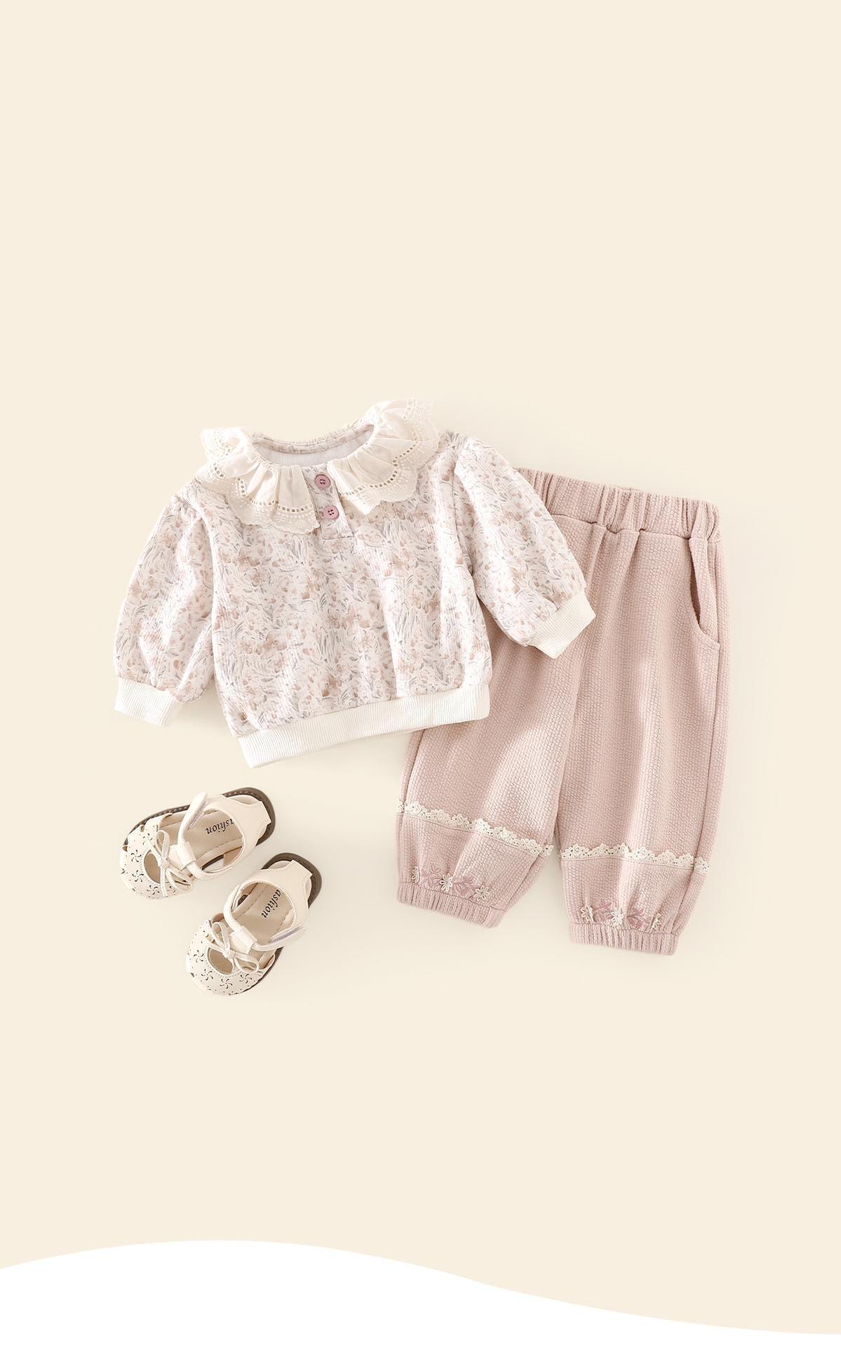 Otoño Nuevo Rosa Jardín Clase A Ropa para Niños Conjunto para Niñas Bebés y Niñas Pequeñas Cuello Pétalo Sudadera de Otoño Pantalones de Sudor Conjunto de Dos Piezas