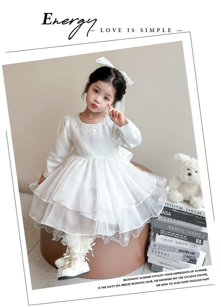 Vestido para niña primavera y otoño 2025 nuevo estilo bebé niña un año vestido de cumpleaños estilo otoño ropa de otoño para niños vestido de princesa de moda