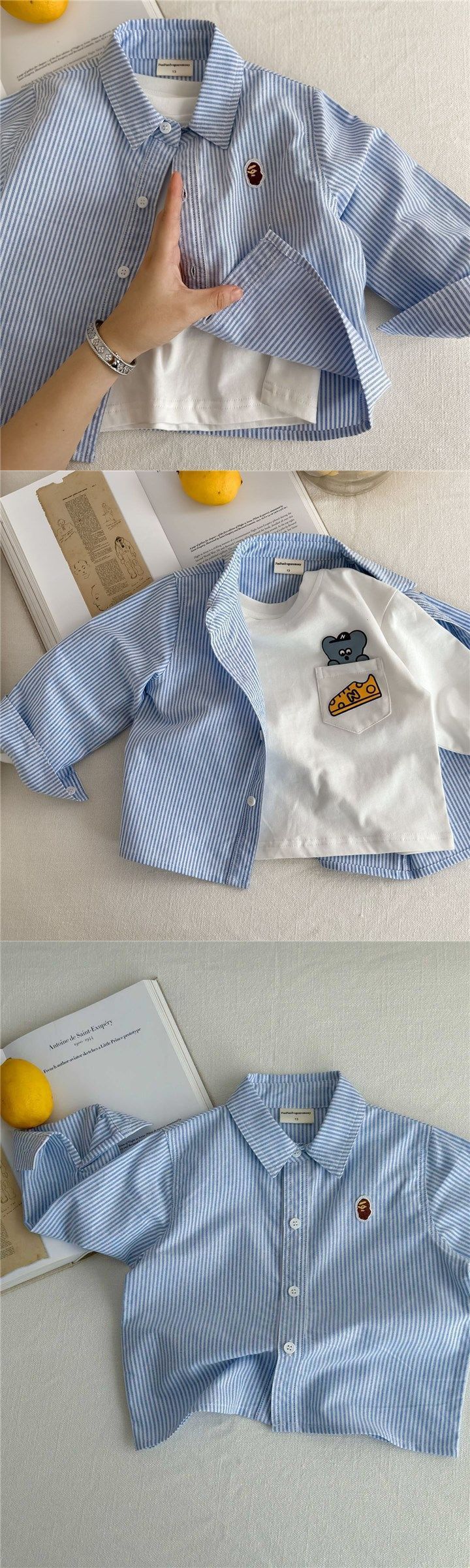Camisa Rayada para Niño 2025 Nueva Primavera y Otoño Camisa de Manga Larga para Niño Moda Coreana Bebé Versátil Top Tendencia