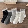 Otoño/Invierno 2025 Nuevos Calcetines de Niña Algodón Sin Costuras Calcetines de Media Caña para Niños Estilo Coreano Encaje Niños Grandes y Medianos Niños Cachorro