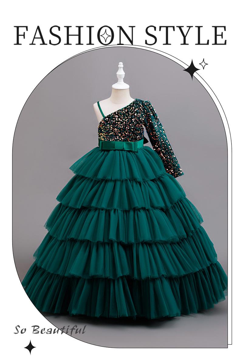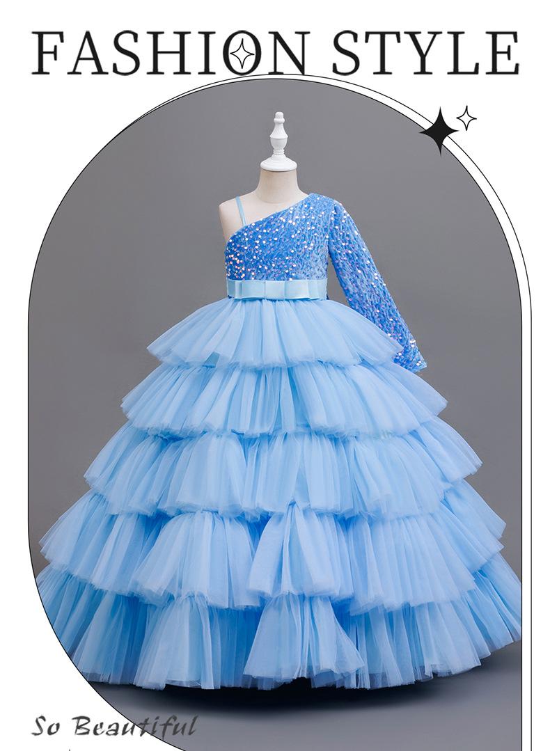 Compra Vestido de Princesa de un Hombro para Fiesta de Cumpleaños de Niñas Europeas y Americanas, Vestido de Noche para Actuación de Piano Infantil, Empalme de Lentejuelas, Venta al por Mayor Transfronteriza al por mayor en Joom.pro