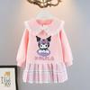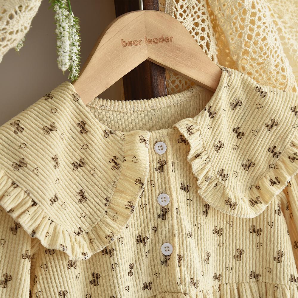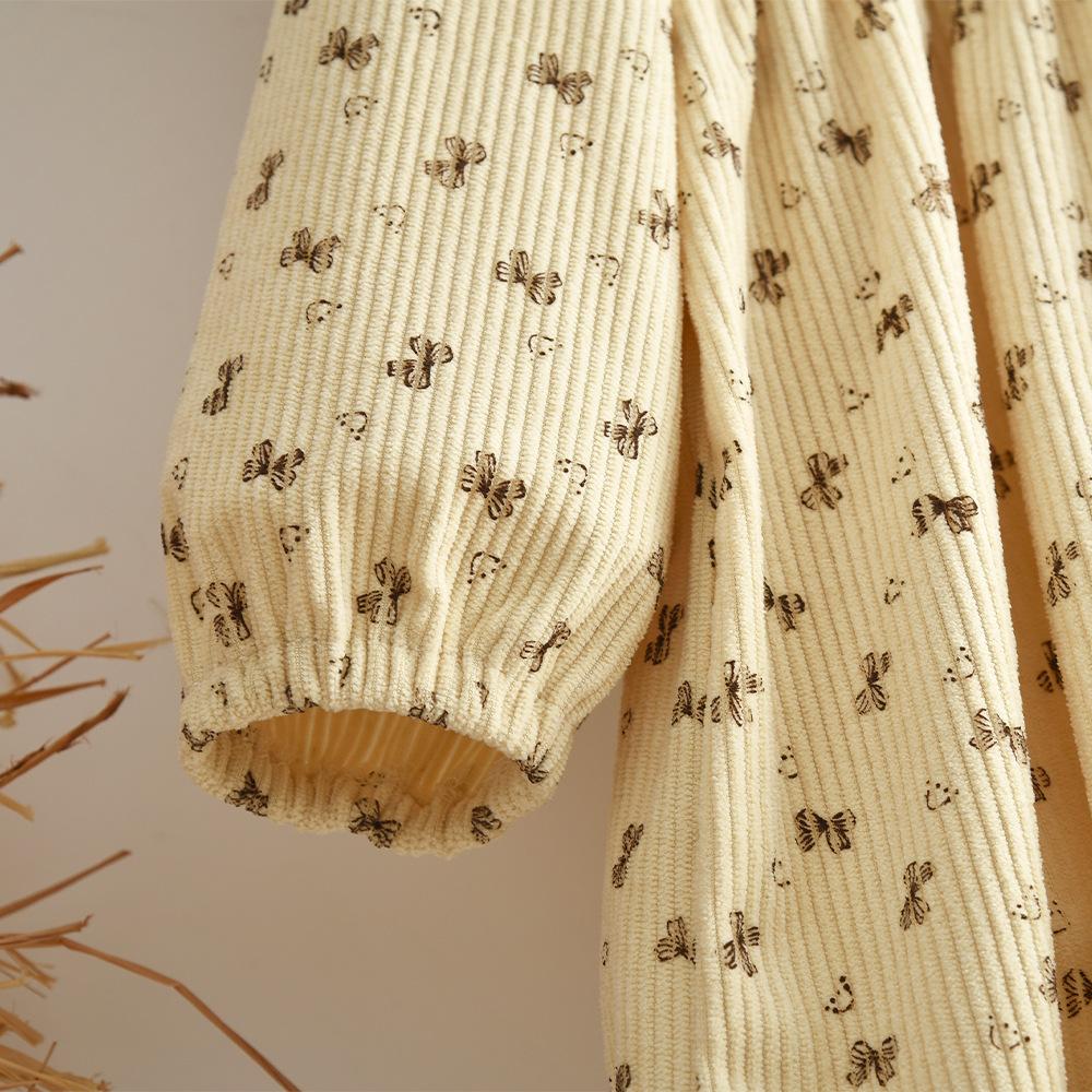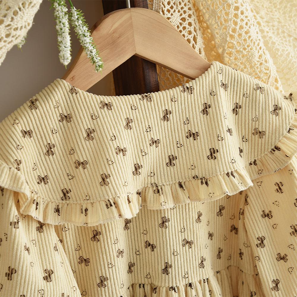 Vestido de Moda de Otoño para Niñas con Cuello de Muñeca Dulce de Manga Larga con Estampado de Lazo Vestido Infantil para Bebé