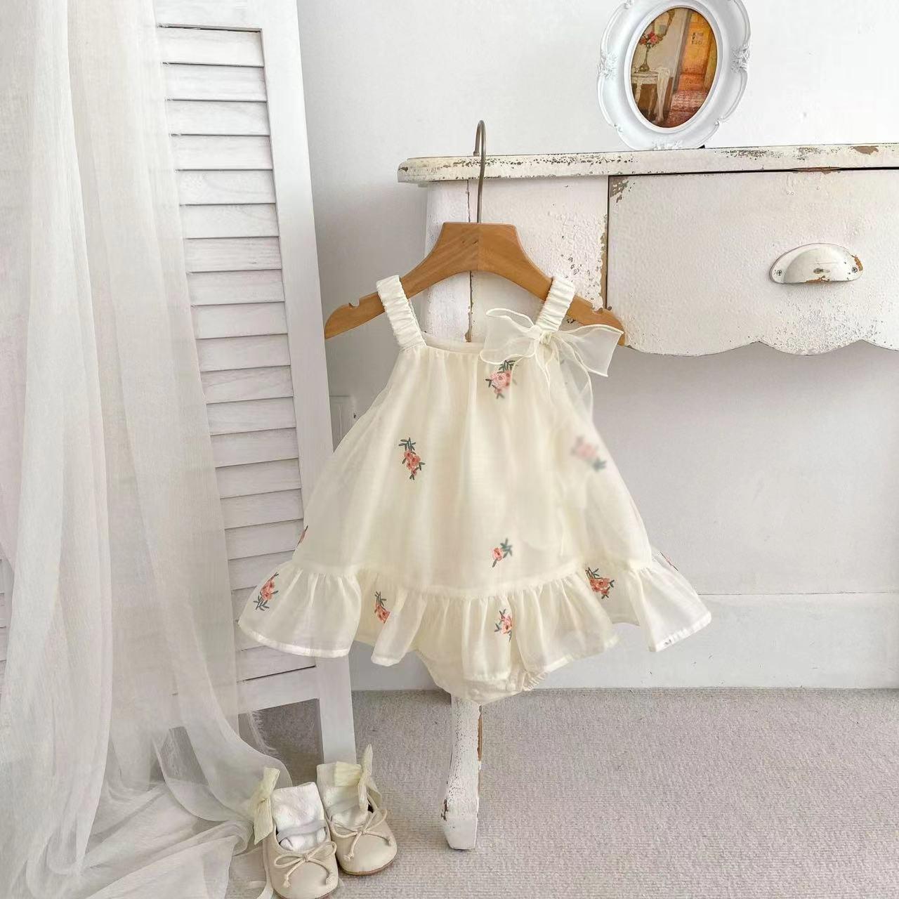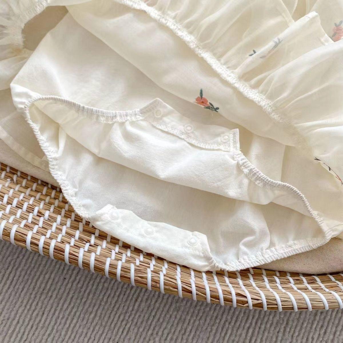 Estilo Verano Pelele con Tirantes para Bebé Niña Vestido Bordado Infantil para Niño Pequeño de Un Año Vestido de Tul de Princesa Ropa Exterior Traje para Gatear Moderno