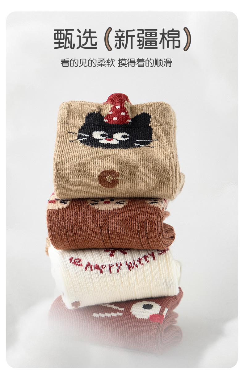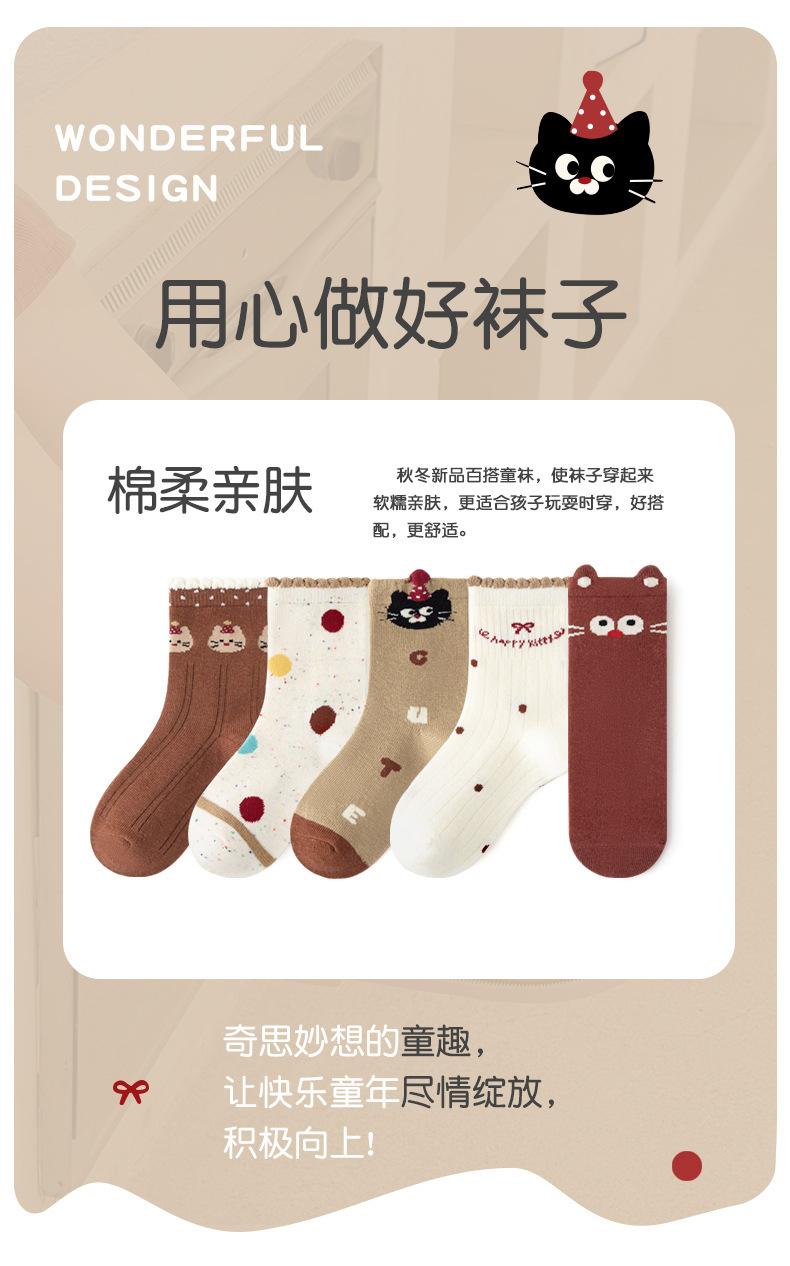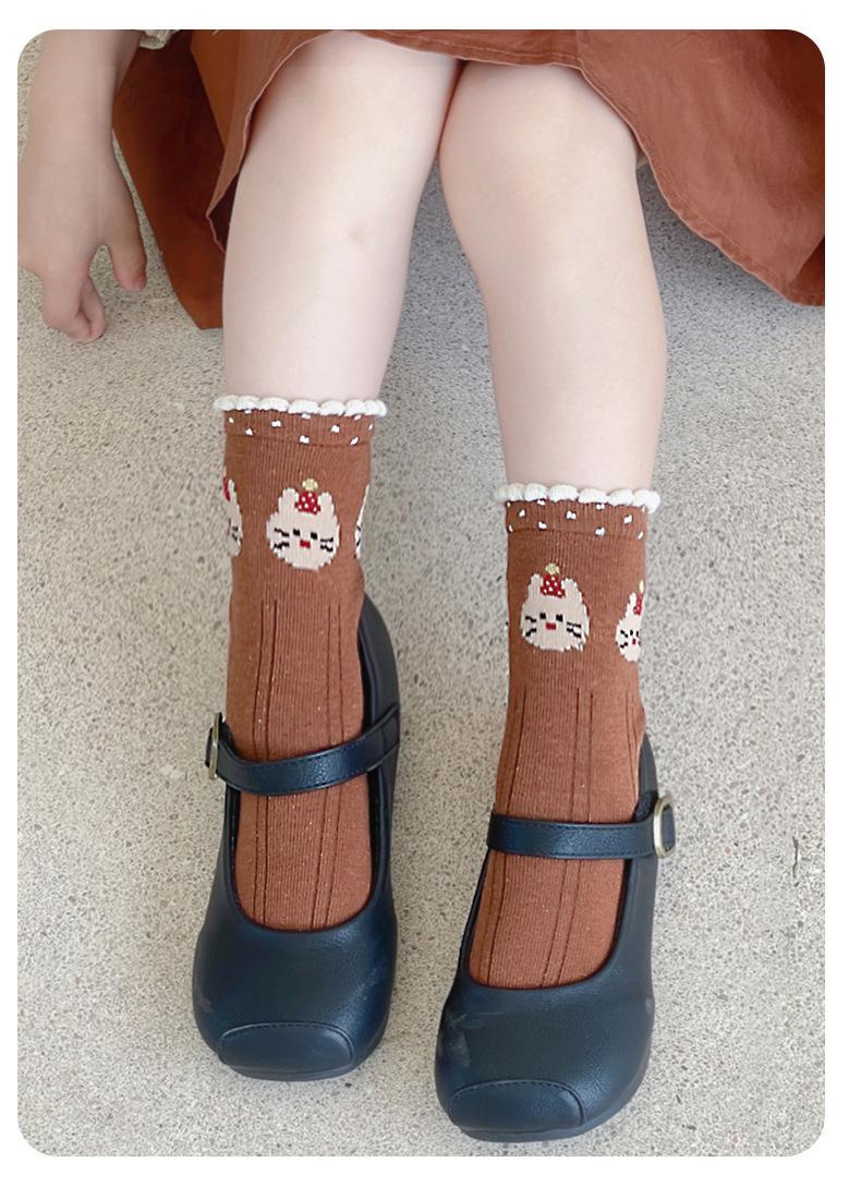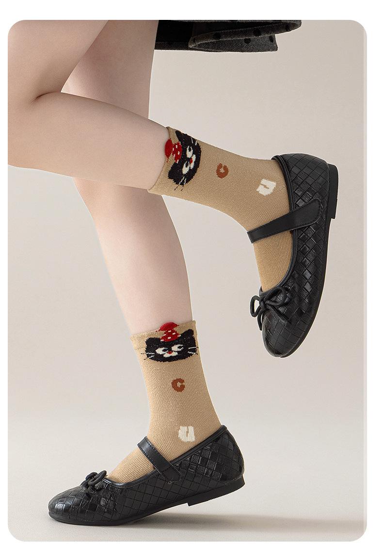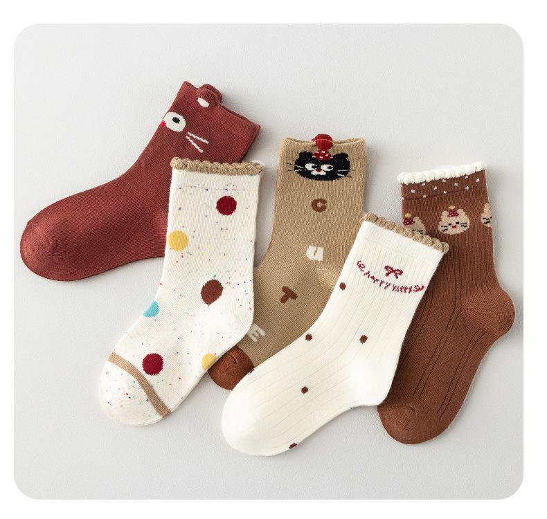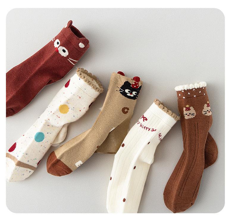 Calcetines nuevos de Otoño e Invierno para Niños Algodón Niños y Niñas Media Caña Primavera y Otoño Suaves Gatito de Dibujos Animados Clase A Calcetines para Niños