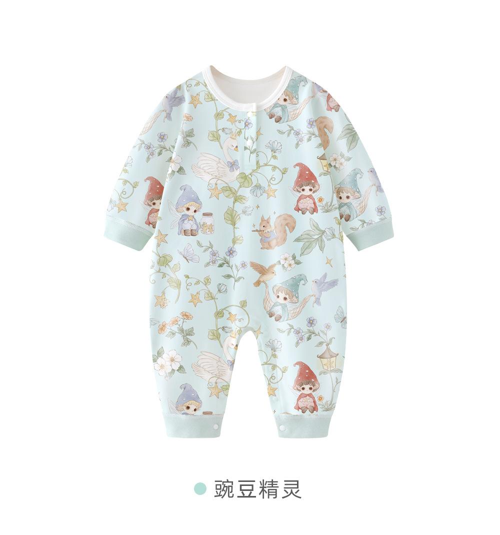 Mameluco de Manga Larga de Algodón Puro para Bebé Niña Mameluco de Luna Llena para Bebé Traje para Gatear Pijama con Estampado Lindo Ropa de Primavera y Otoño para Niño