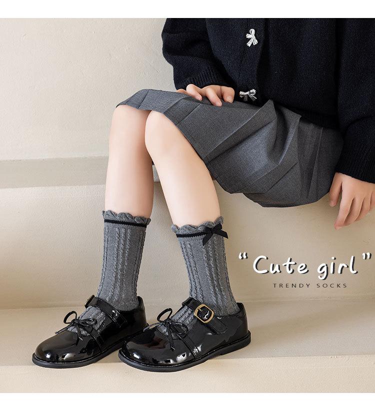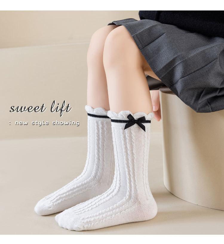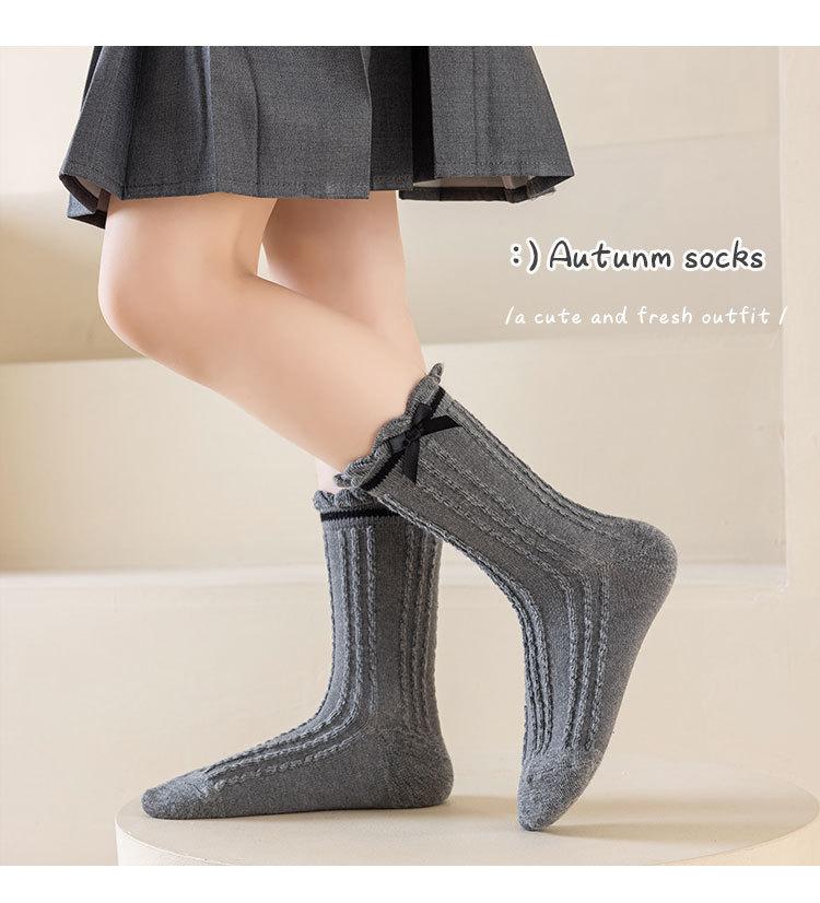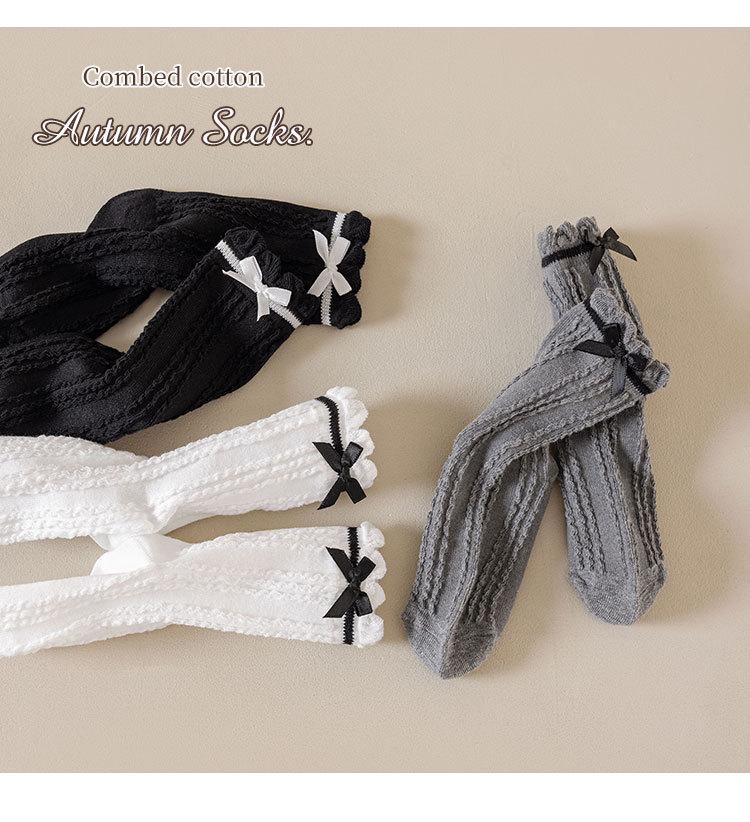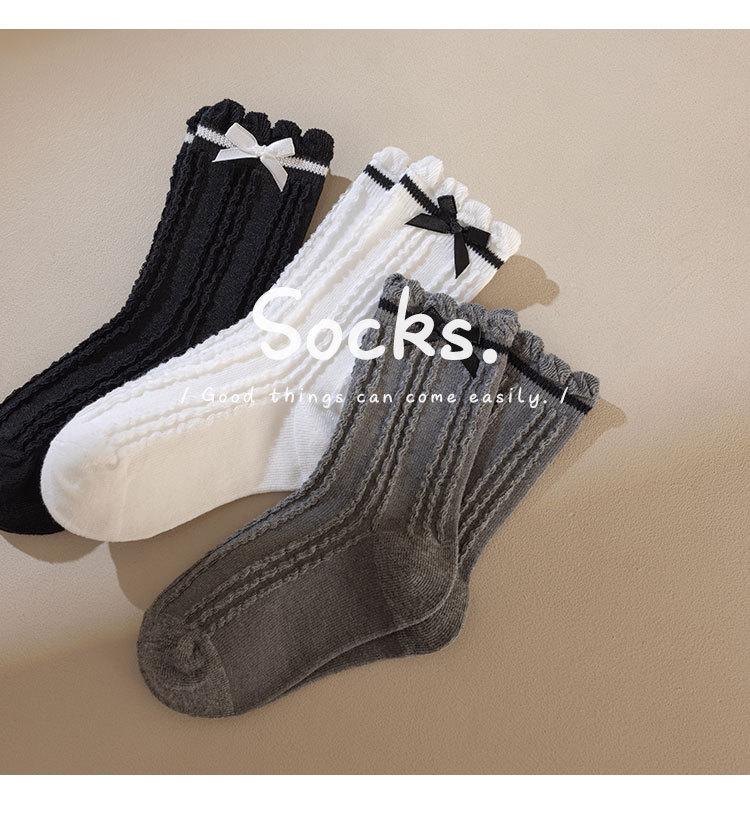 Calcetines de Media Caña para Niñas Primavera Otoño Lazo Borde con Volantes Lindo Otoño Invierno Calcetines de Pantorrilla para Niñas Calcetines de Princesa para Niñas Calcetines Blancos