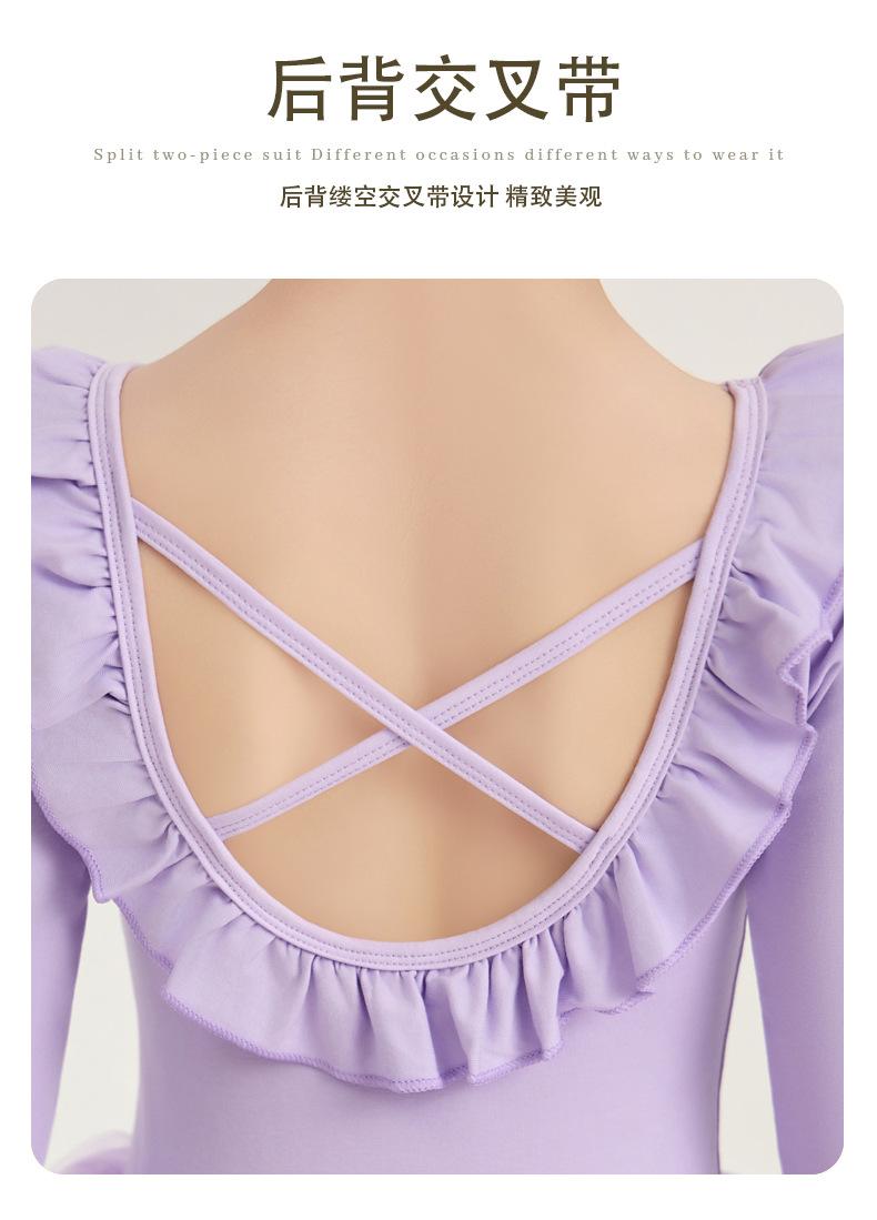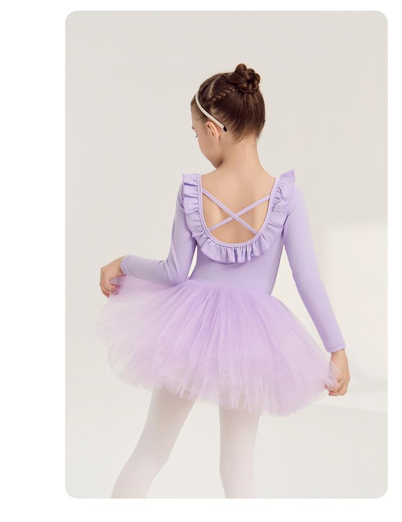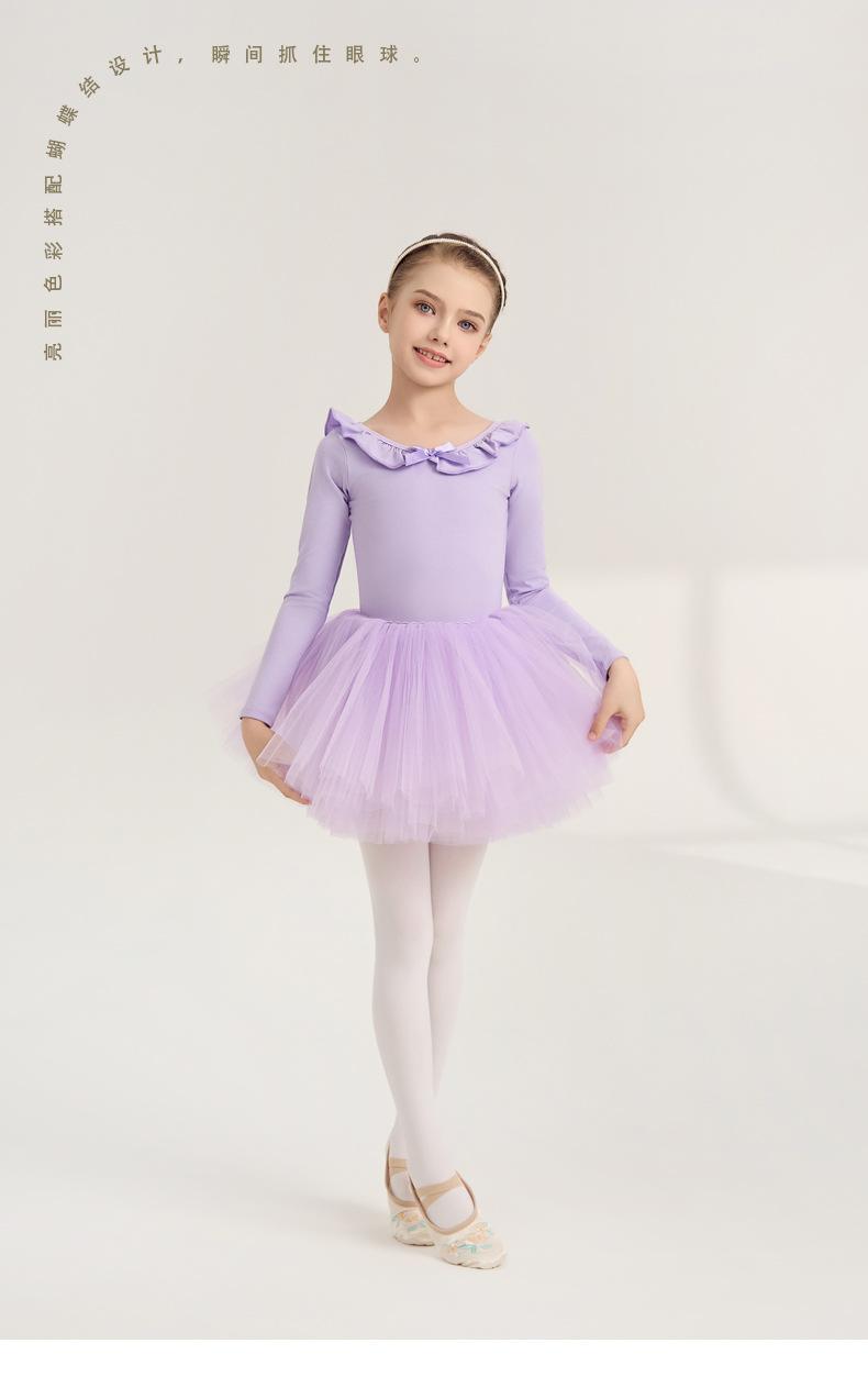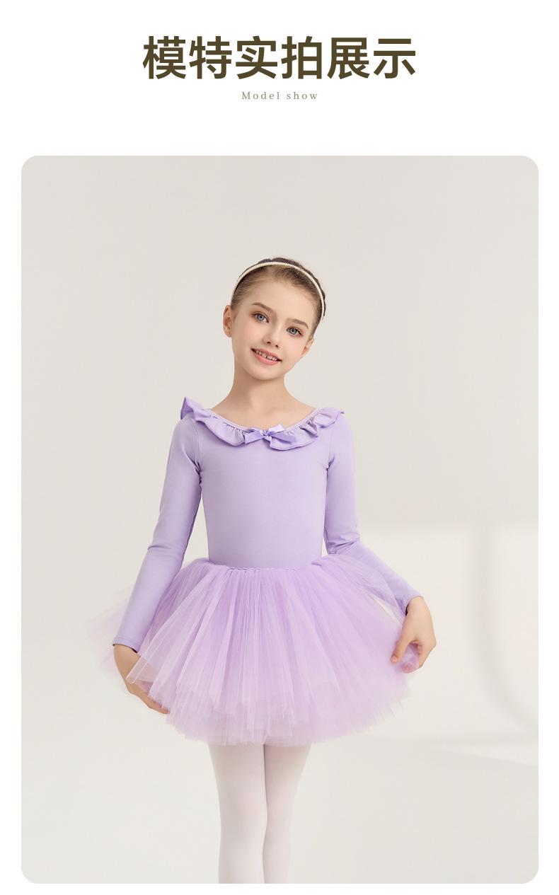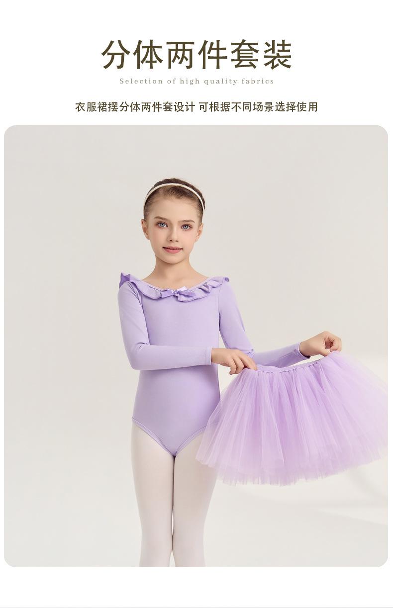 Ropa de Danza Infantil Otoño Manga Larga Morado Algodón Puro Niñas Ropa de Práctica Grado de Examen Vestido de Ballet Chino Conjunto Separado