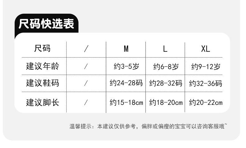 3-5 years old [recommended shoe size 24-27], 6-8 years old [recommended shoe size 27-31], 9-12 years old [reco...