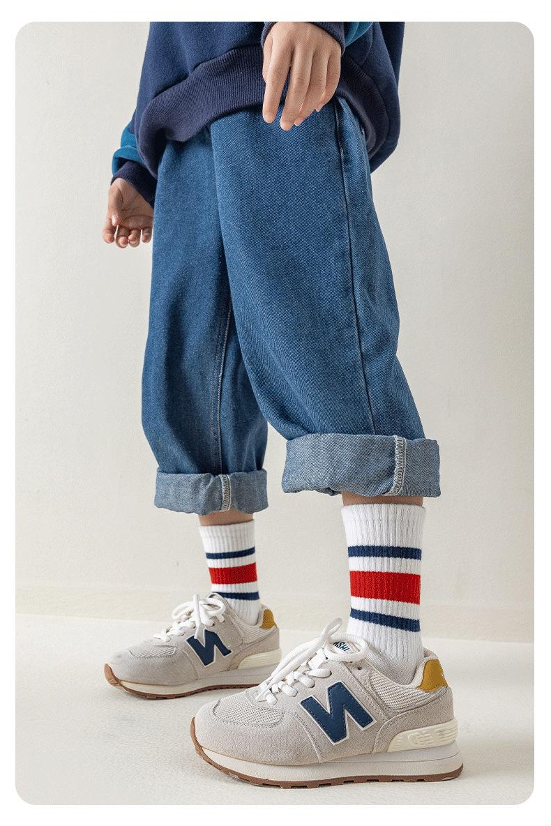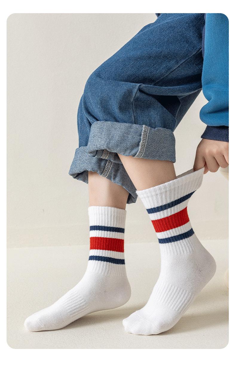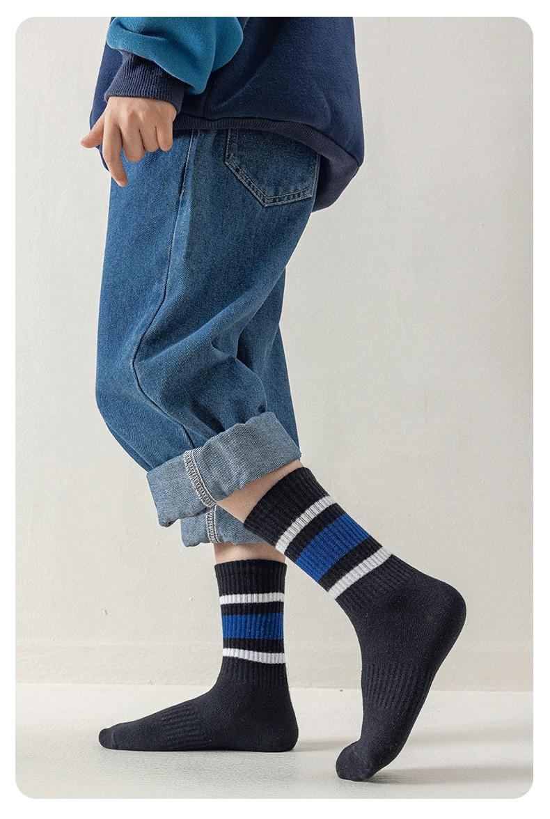 Nuevo estilo de otoño e invierno para niños y niñas, calcetines deportivos de rayas para niños, calcetines de moda, calcetines de media caña de rayas, calcetines casuales de algodón para estudiantes de 3 a 12 años