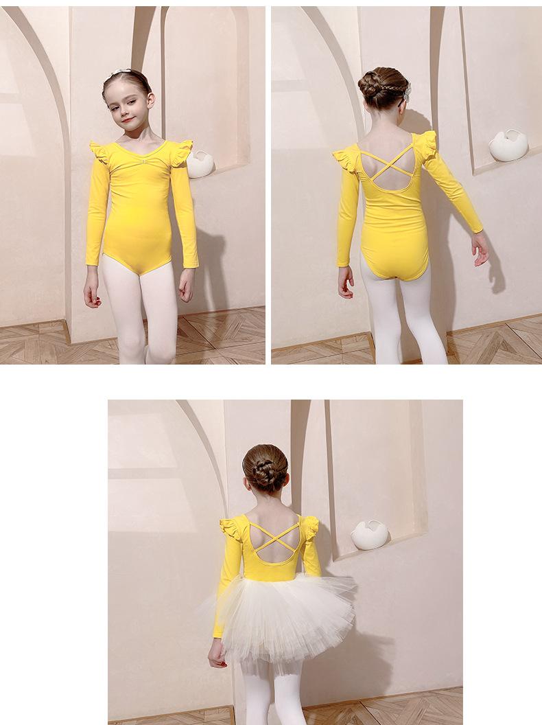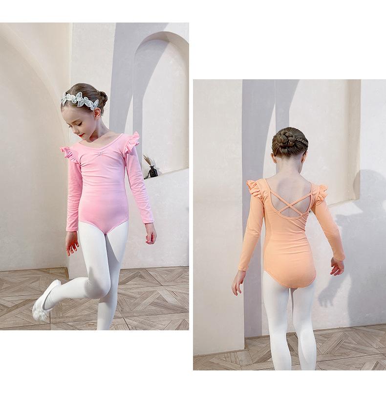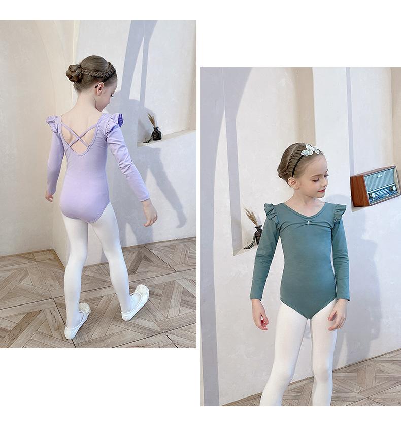 Traje de baile infantil otoño manga larga ropa de práctica para niñas leotardo de examen de algodón puro ropa de baile entrepierna abierta ropa de baile para niños pequeños danza china