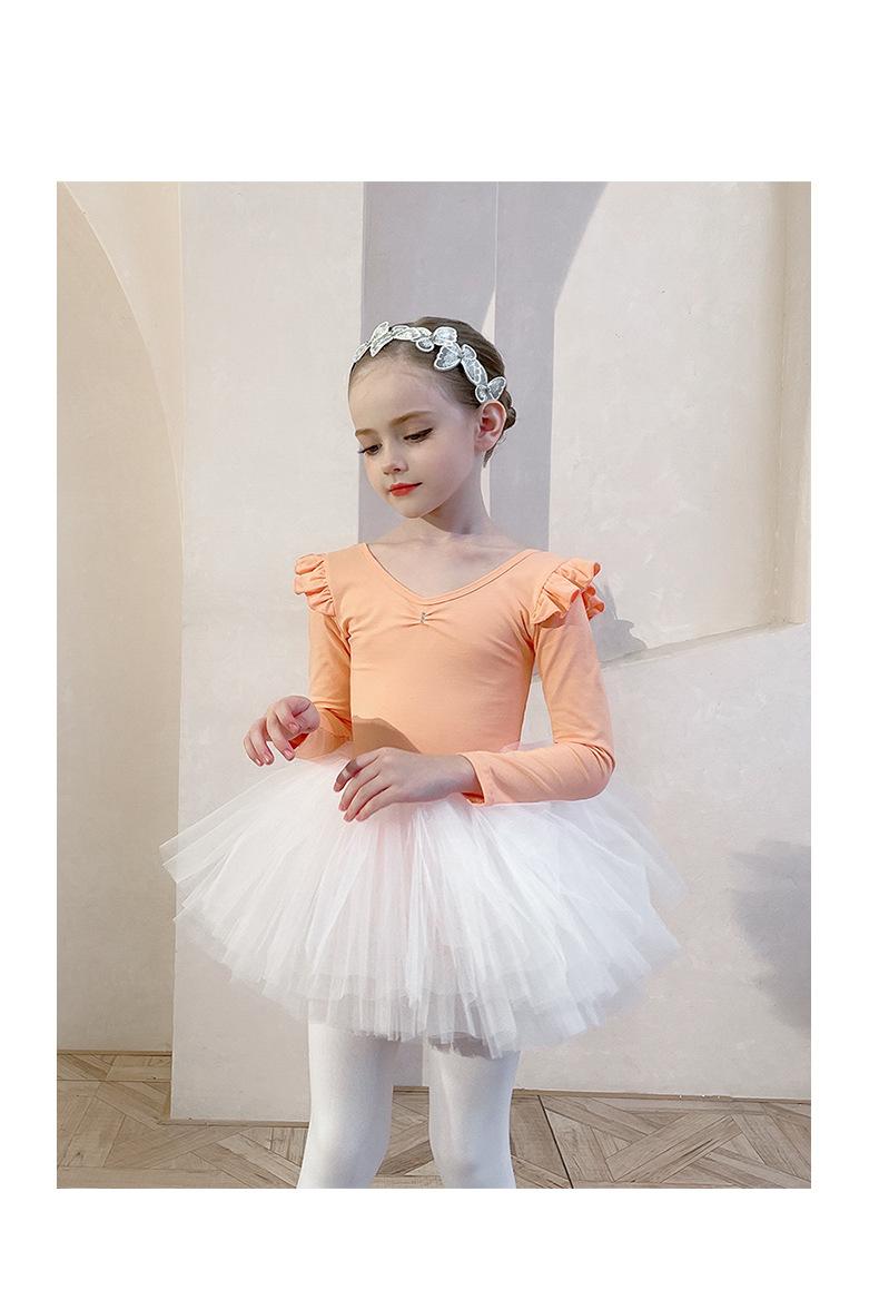 White tulle skirt, Pink and orange long-sleeved clothes, Pink long-sleeved clothes, Purple long-sleeved clothe...