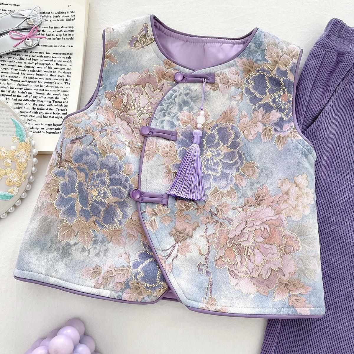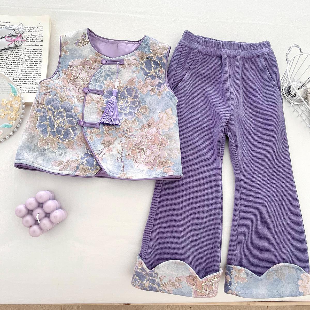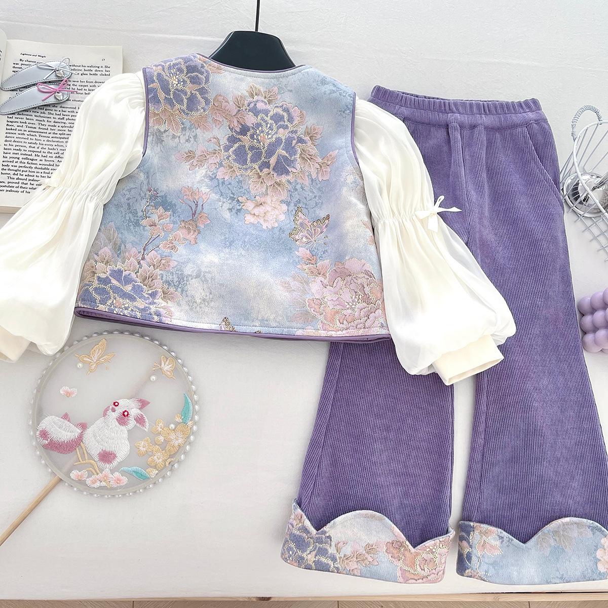 Conjunto Hanfu de Estilo Nuevo 2025 para Bebé Niña Otoño Ropa China para Niños Moderna y Elegante Traje Tang de Tres Piezas para Niña