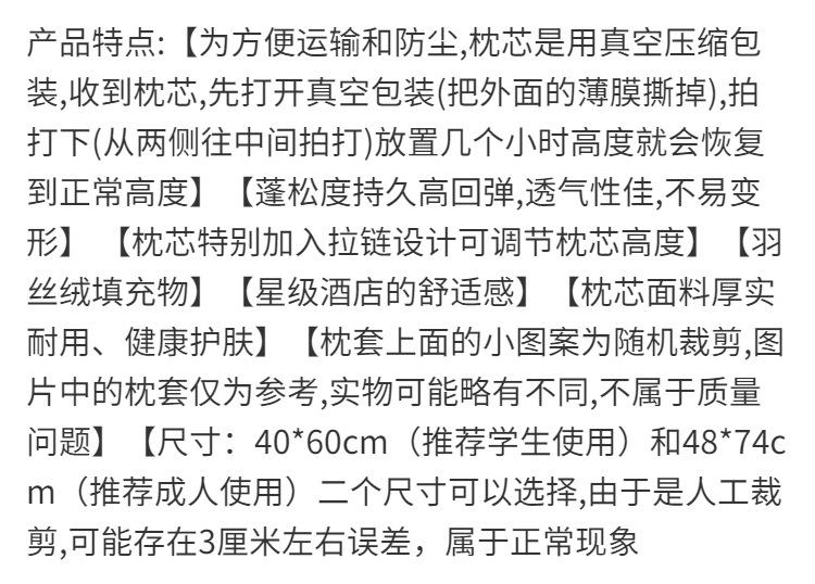 Antibacterial and anti-mite pillow core (without pillowcase) 48*74