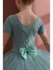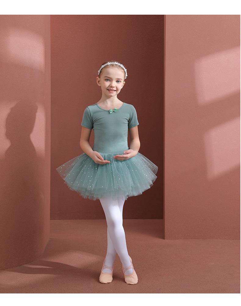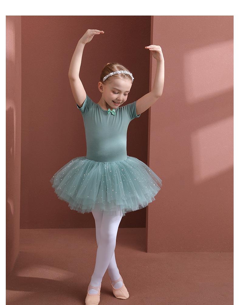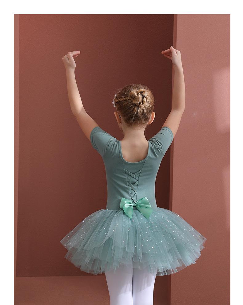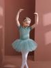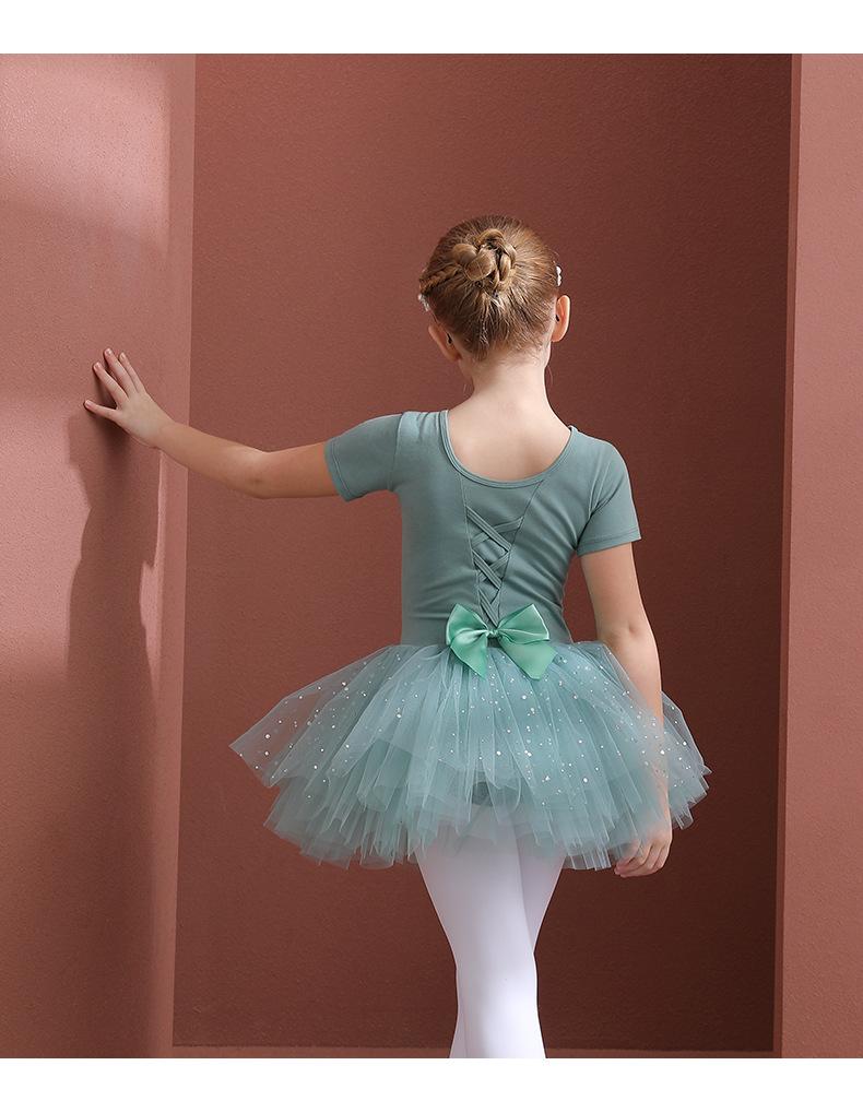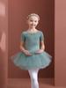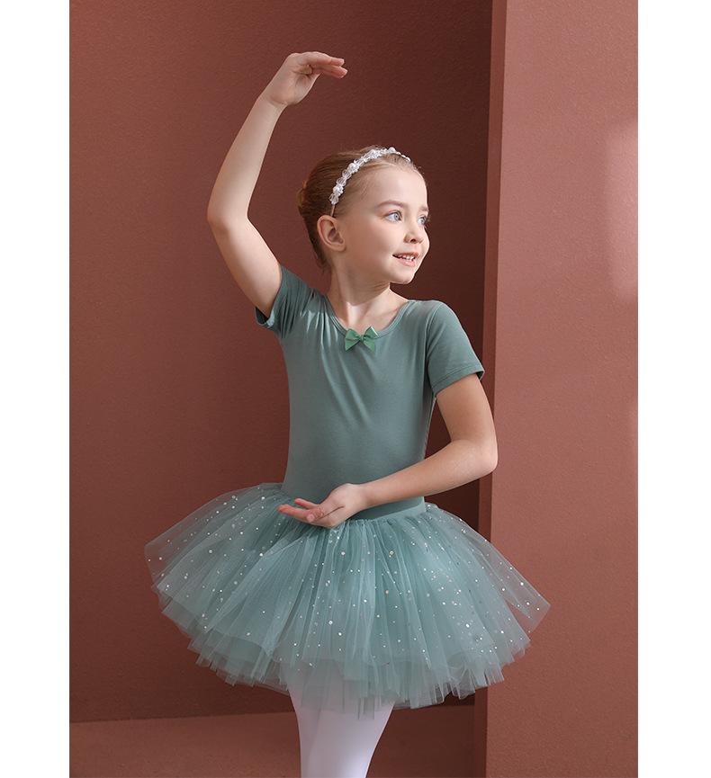 Traje de baile infantil de manga corta verde ropa de práctica para niñas verano algodón puro estilo coreano para niña pequeña ballet lentejuelas falda de hilo