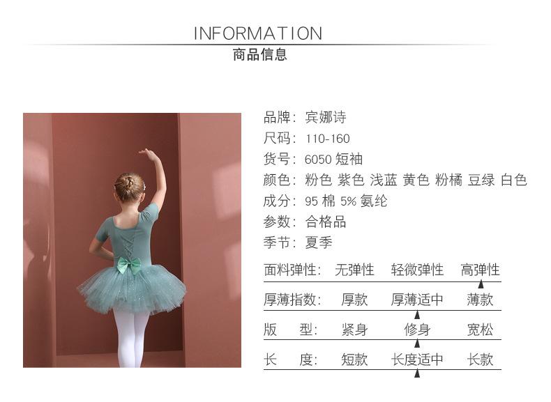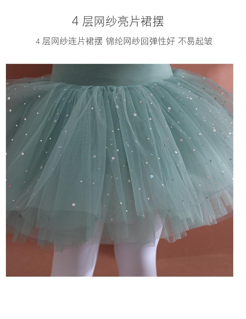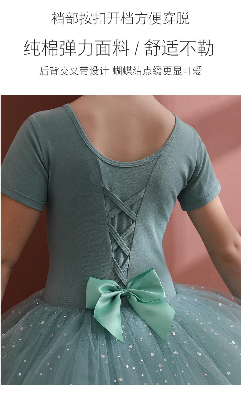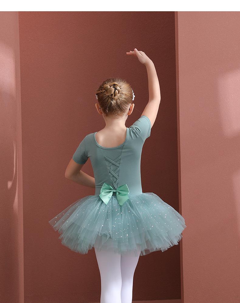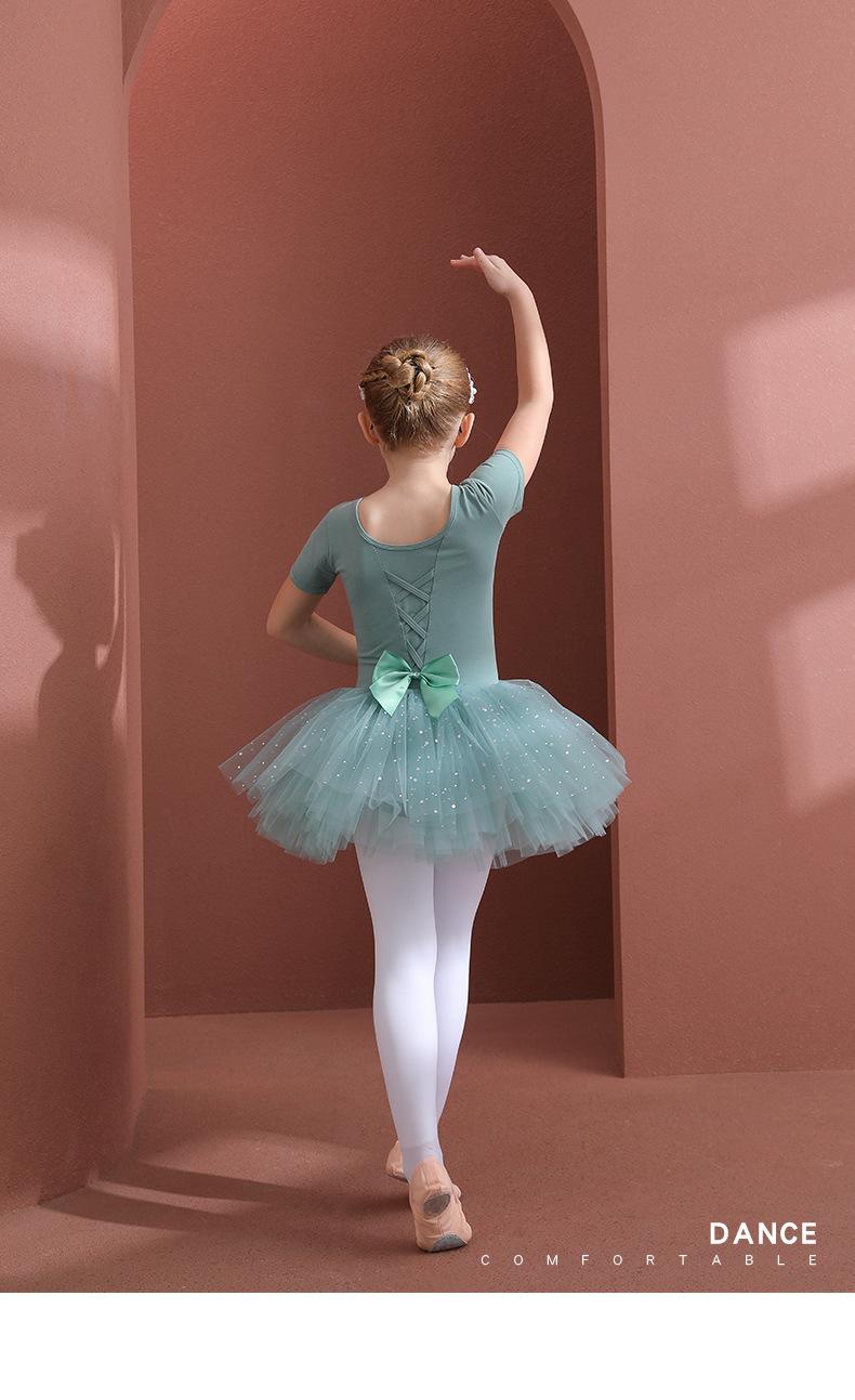 Traje de baile infantil de manga corta verde ropa de práctica para niñas verano algodón puro estilo coreano para niña pequeña ballet lentejuelas falda de hilo