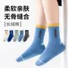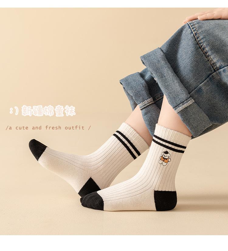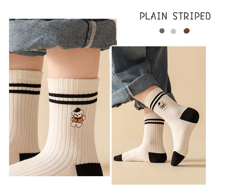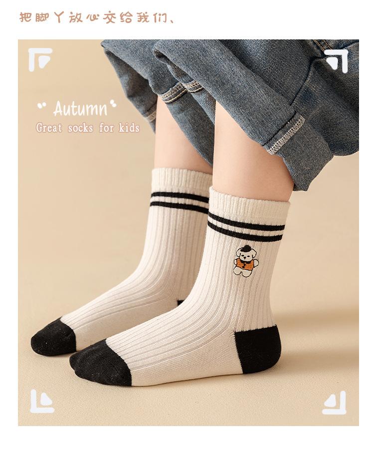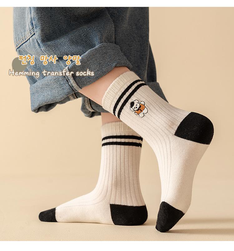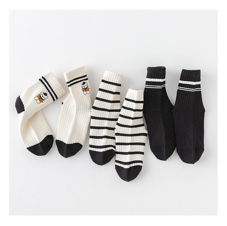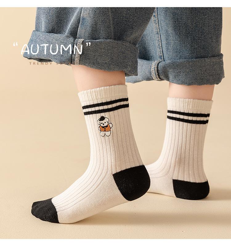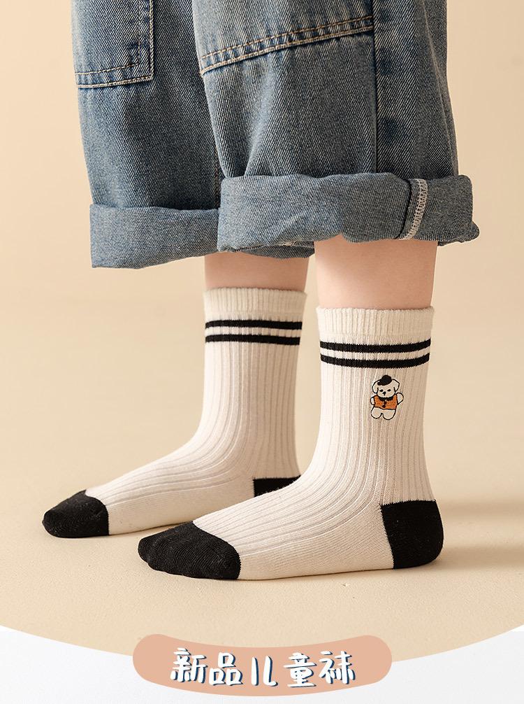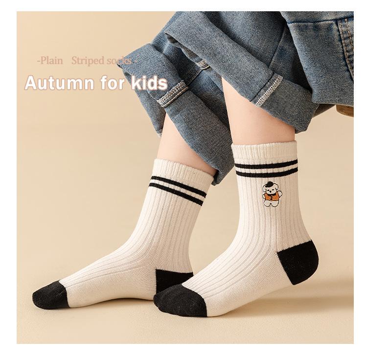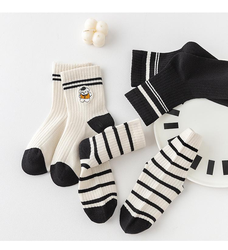 Calcetines Bordados Sin Costuras para Niños Otoño e Invierno Nuevos de Dibujos Animados Tendencia Rayados Calcetines para Niños Rayados Bloque de Color Media Caña