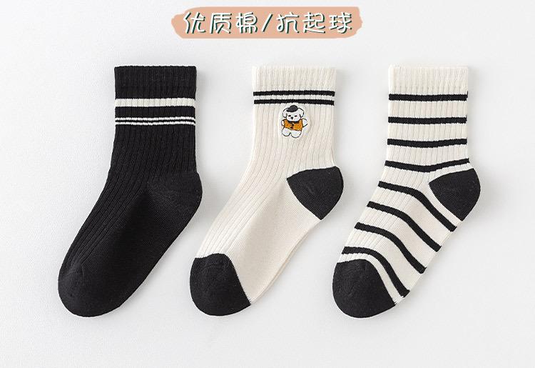 Y322 embroidery black and white little bear (3 pairs)