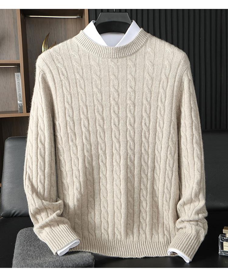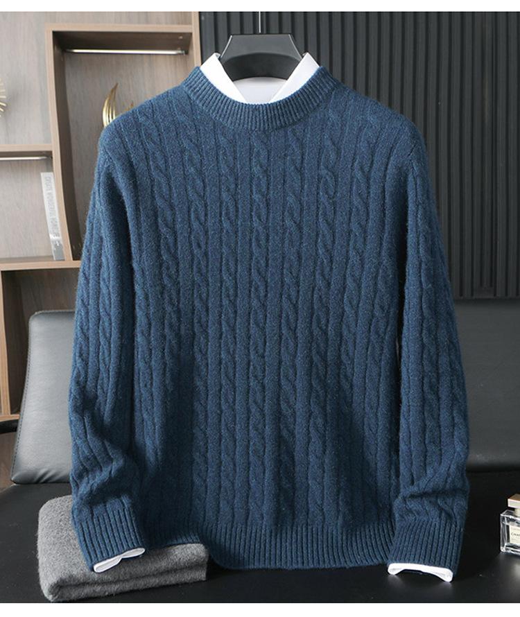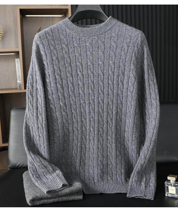 Suéter de Cachemira 100% Pura para Hombre Otoño/Invierno Jersey Grueso para Hombre Cárdigan de Punto Holgado Cuello Redondo Casual Negocios Camiseta Interior