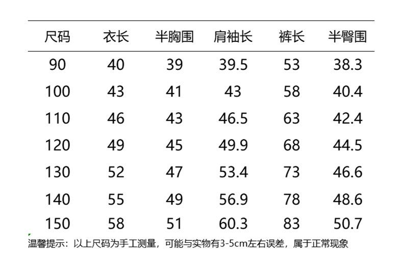 90cm, 100cm, 110cm, 120cm, 130cm, 140cm, 150cm