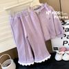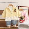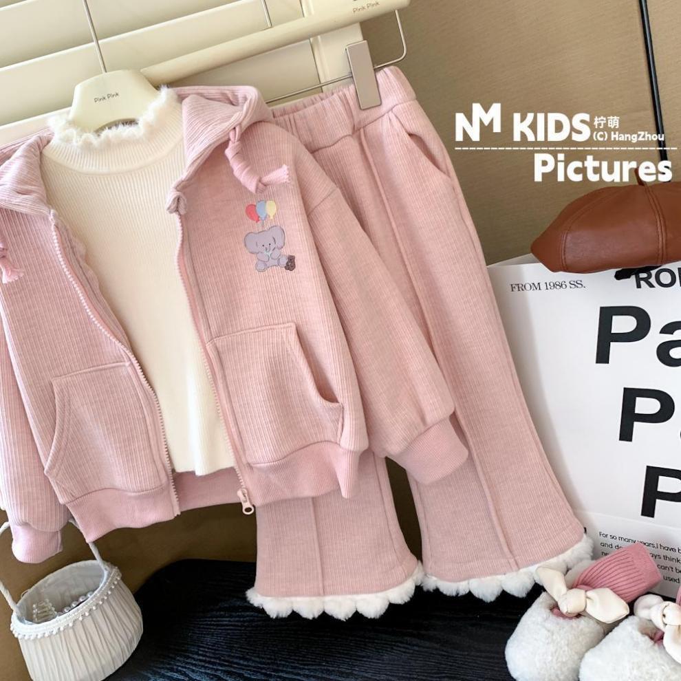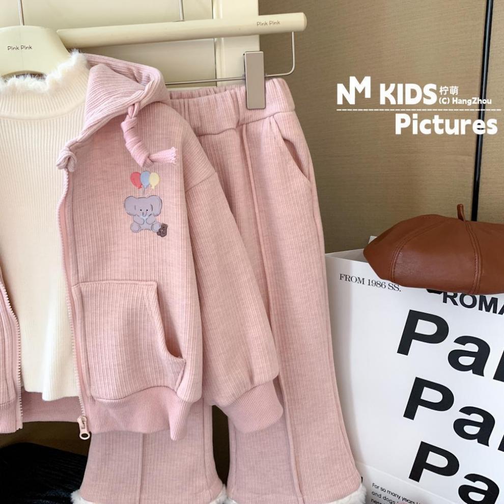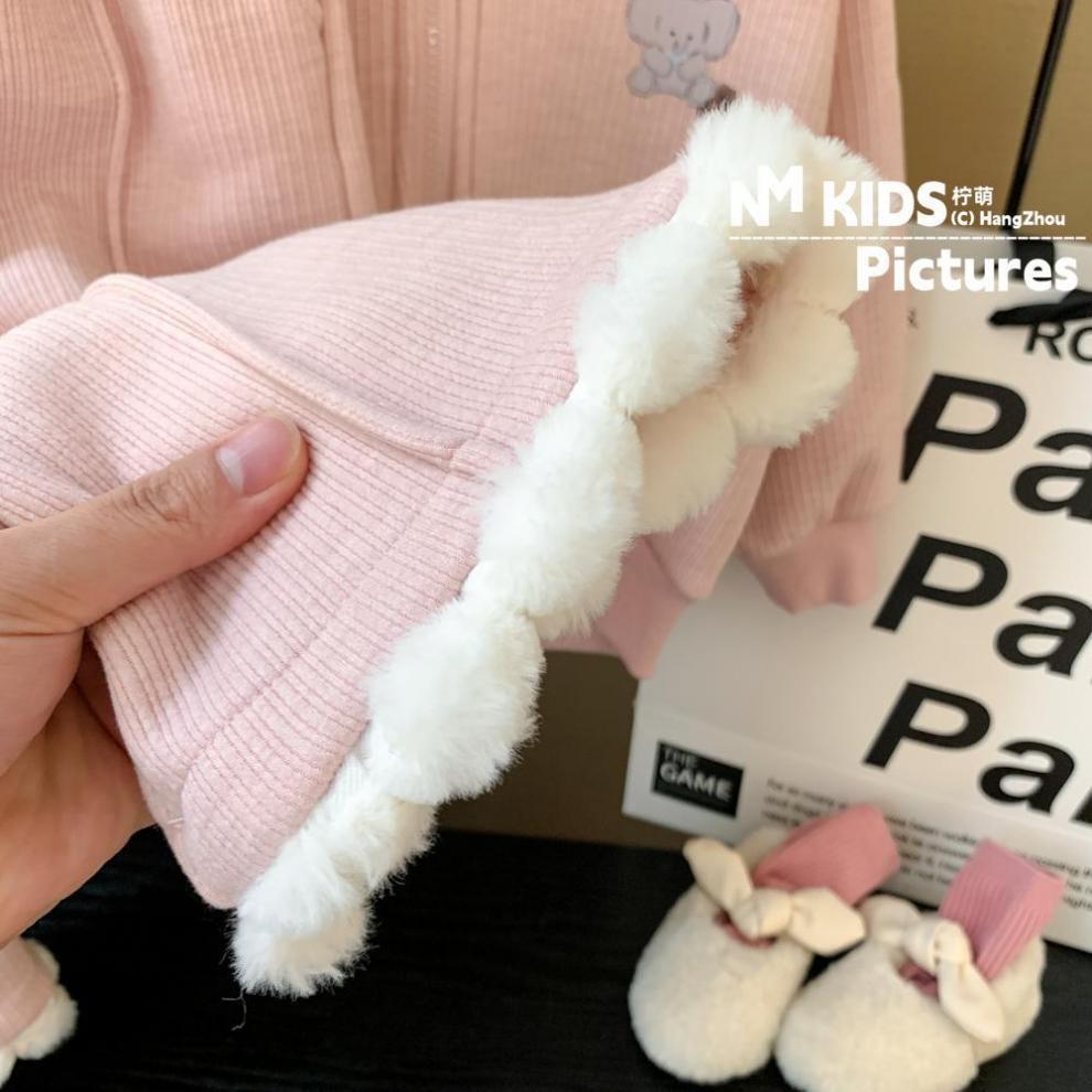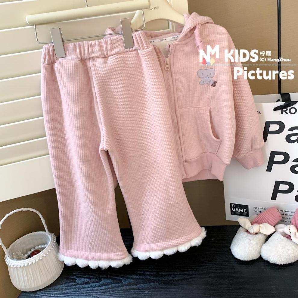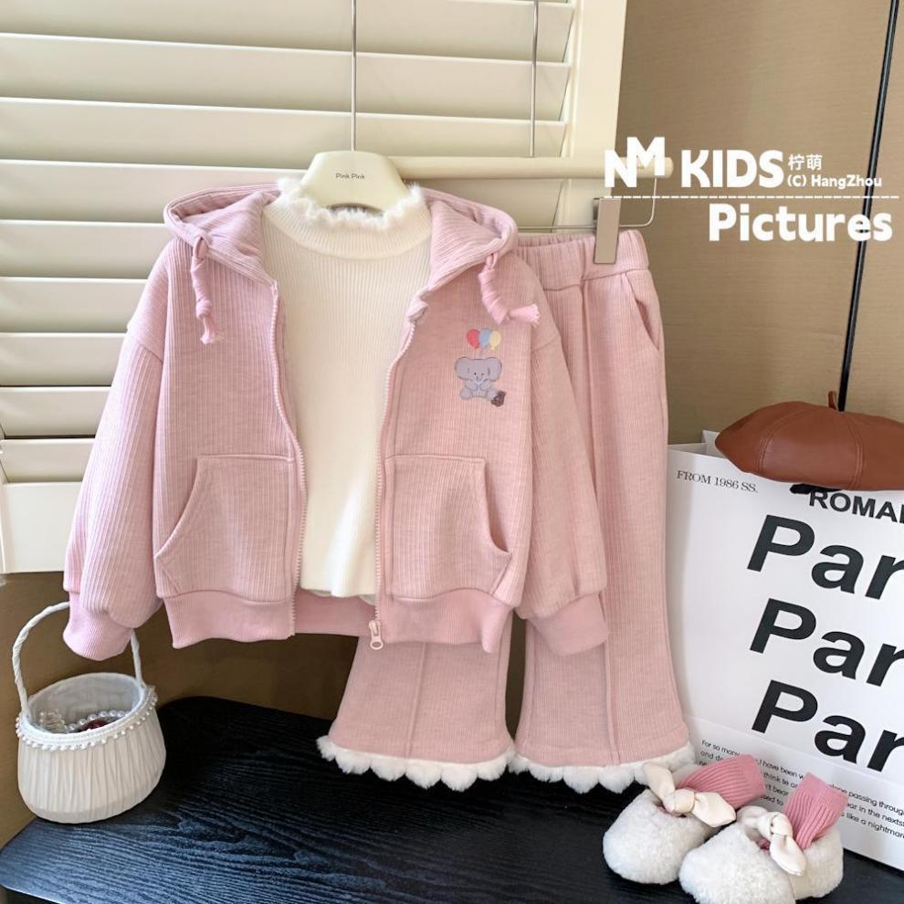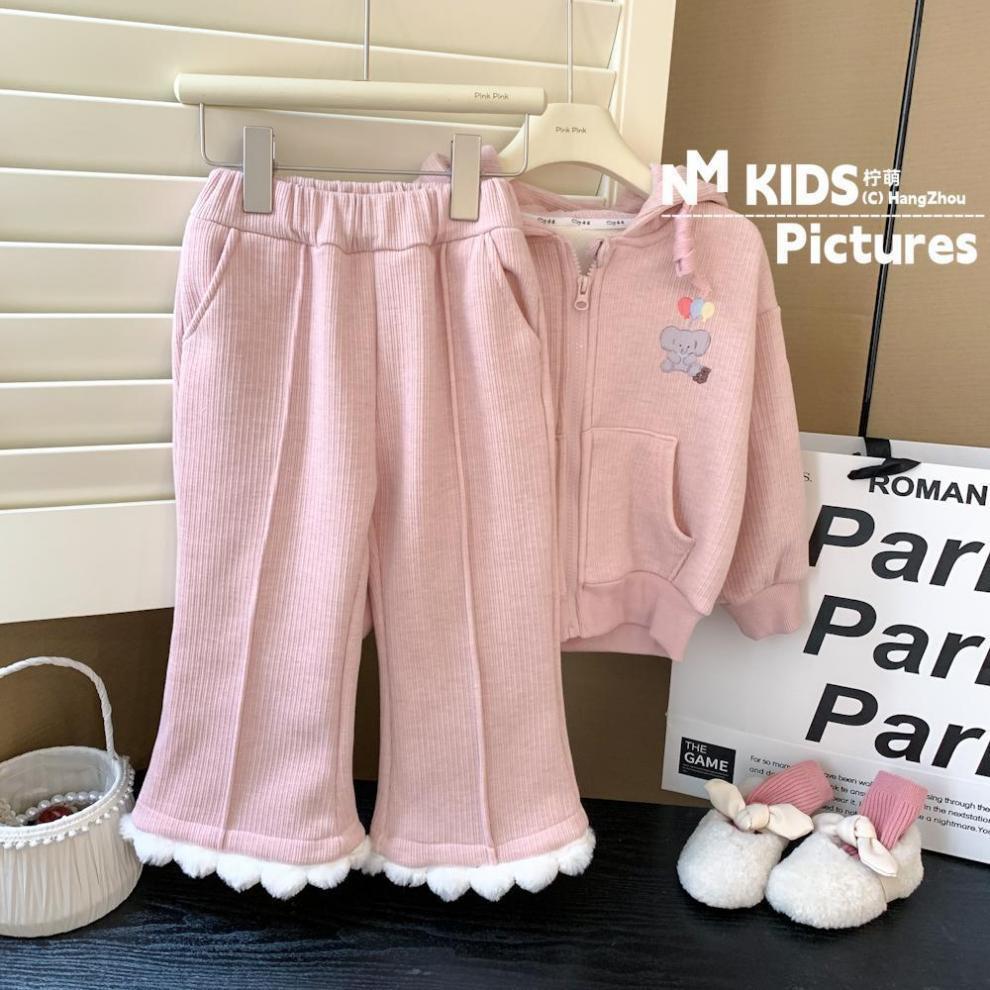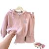Conjunto de Primavera y Otoño para Niñas Moda Bebé Infantil Individual Moderno Elegante Estilo Coreano Dibujos Animados Chaqueta con Capucha Encaje Pantalones Acampanados