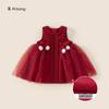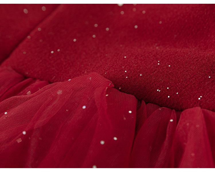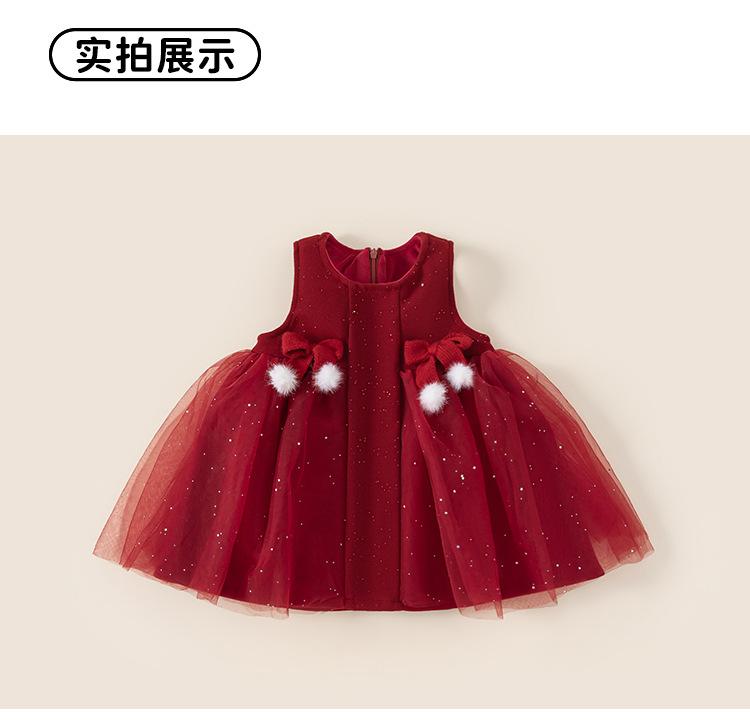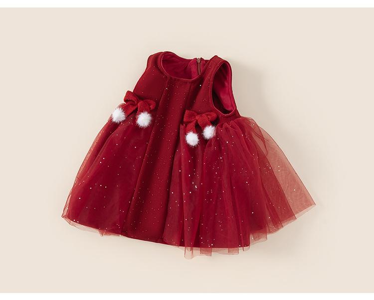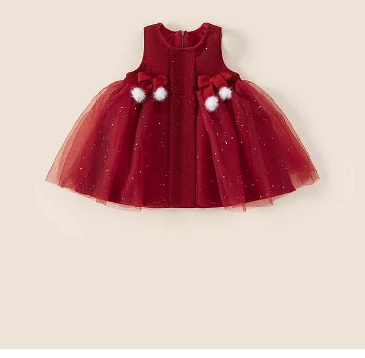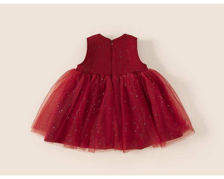 Vestido de Niña Bangxuan Dulce Vestido de Princesa Rojo Sin Mangas Lazo Falda de Tul Vestido de Cumpleaños para Niña