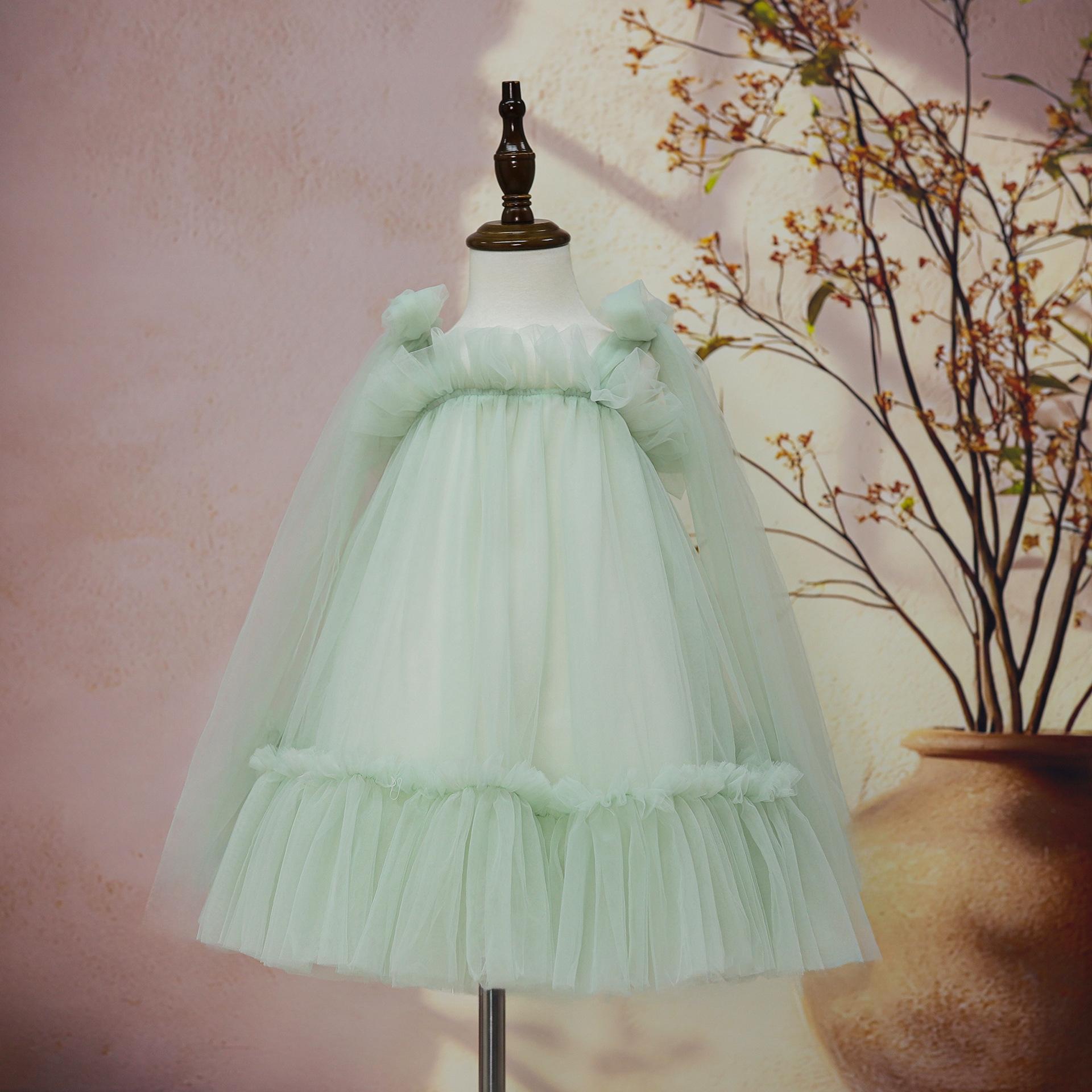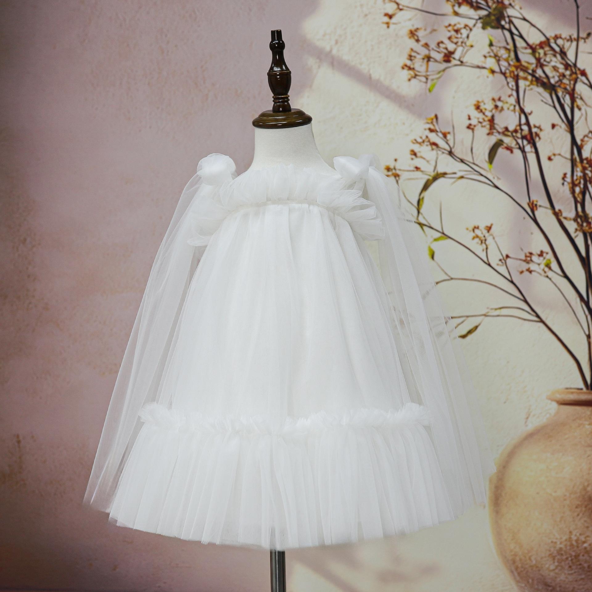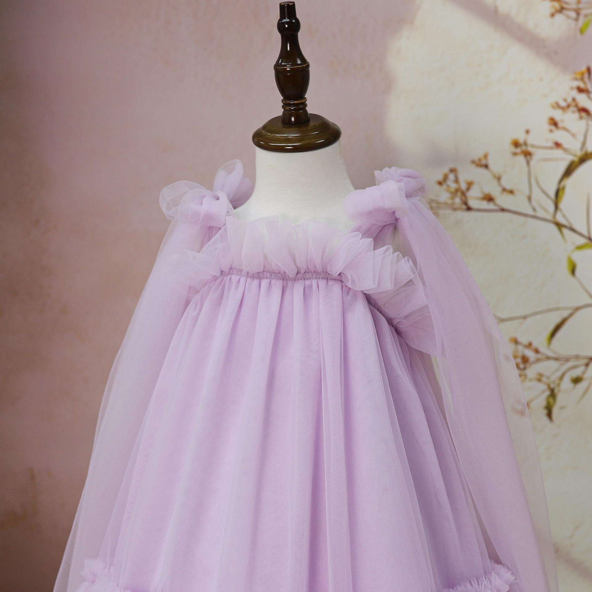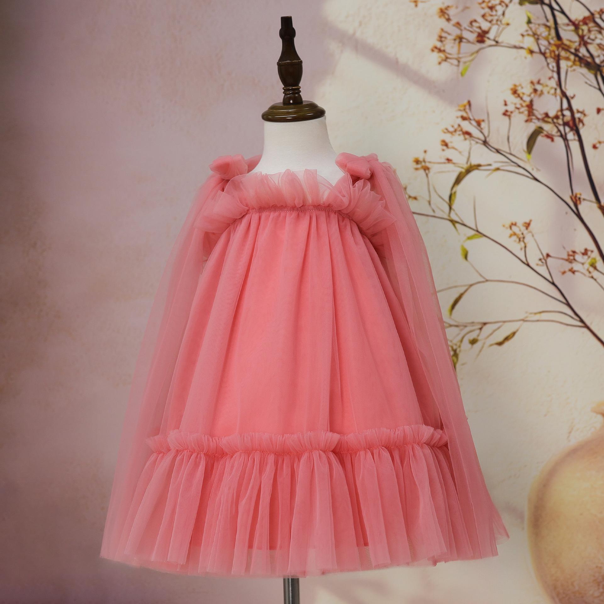 Vestido de Princesa de Verano para Niñas, Vestido Dulce de Tul, Vestido Liso de Malla con Manga Abullonada para Niñas, Venta al por Mayor