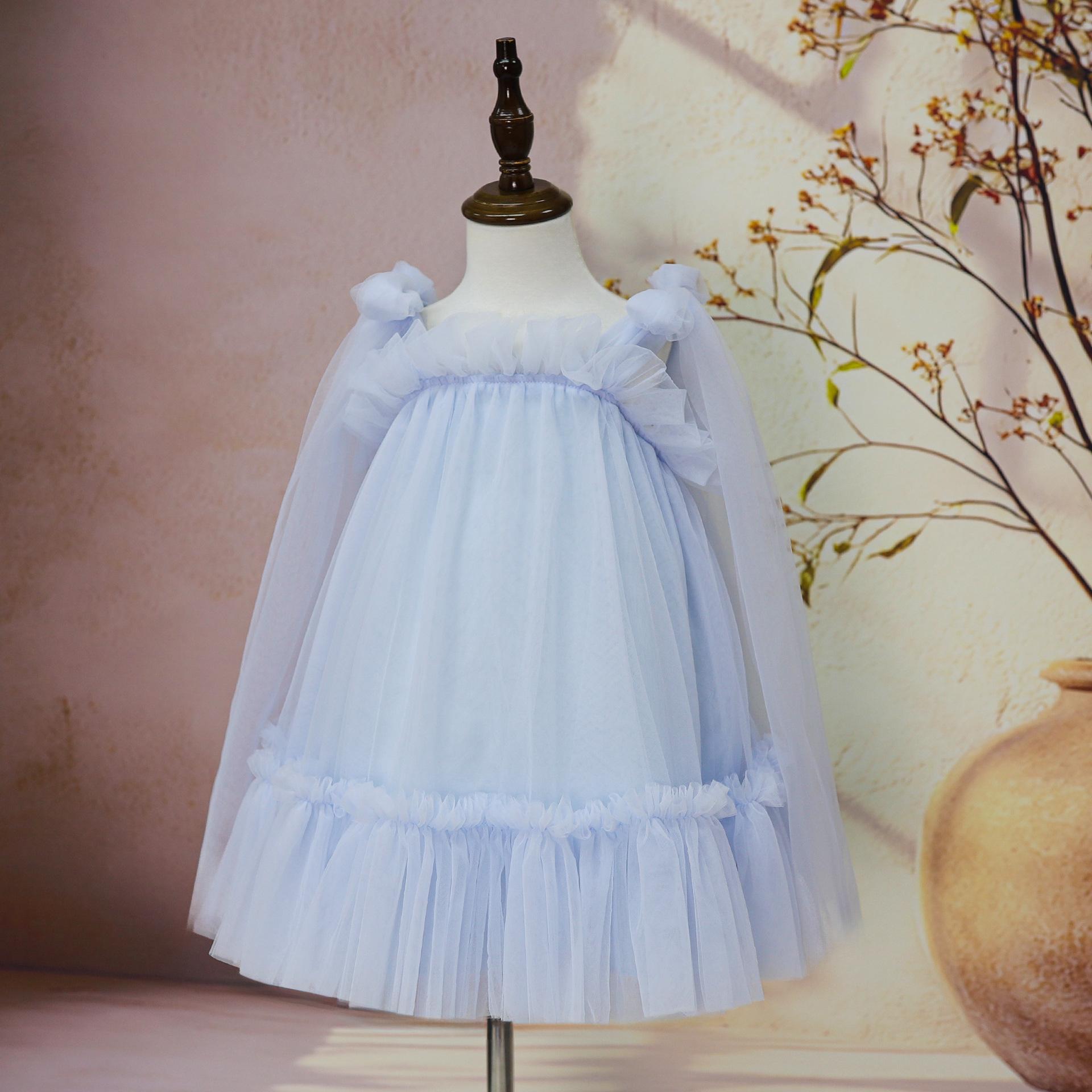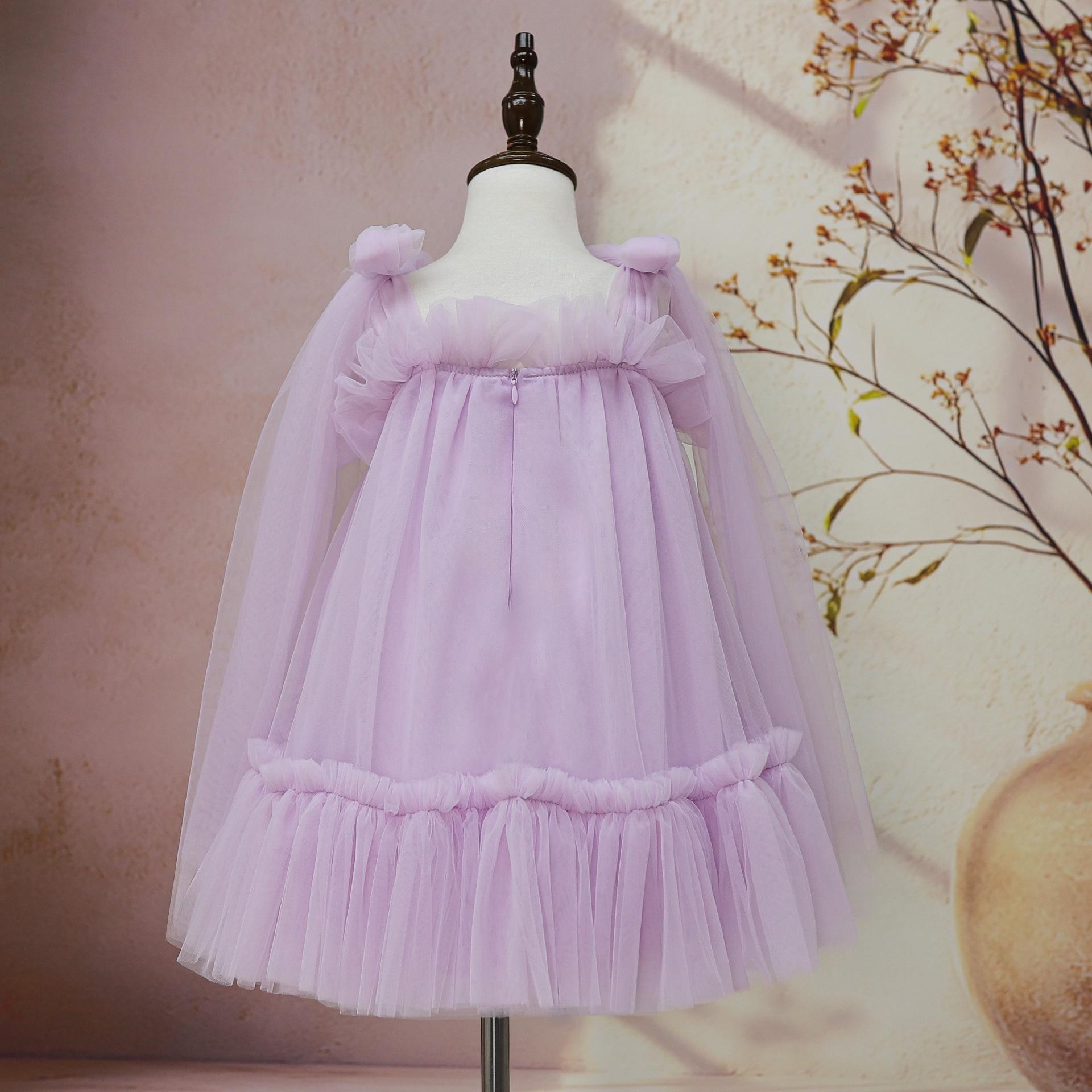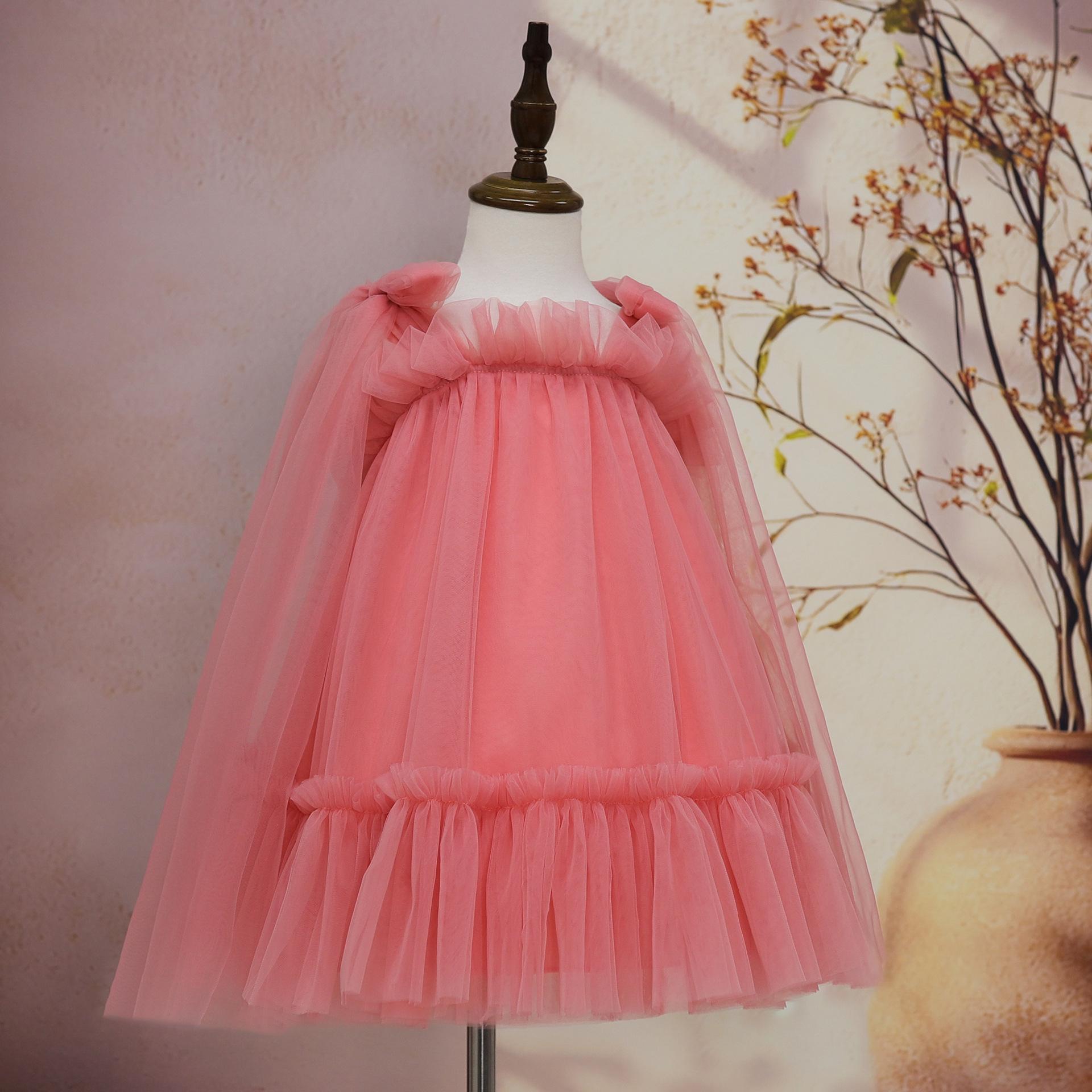 Vestido de Princesa de Verano para Niñas, Vestido Dulce de Tul, Vestido Liso de Malla con Manga Abullonada para Niñas, Venta al por Mayor