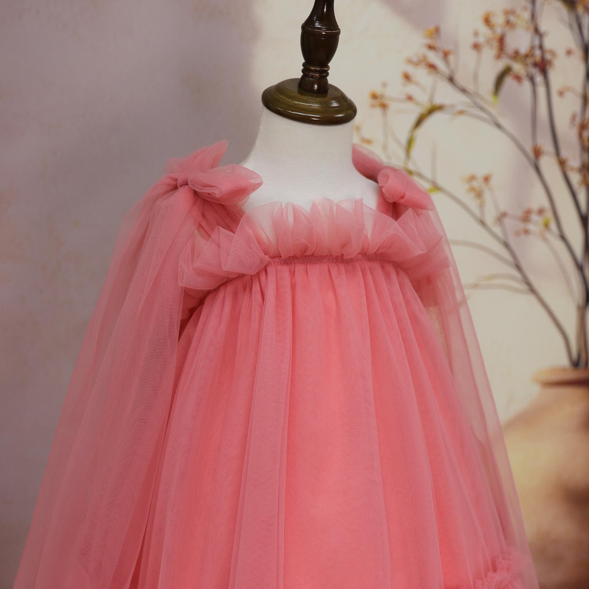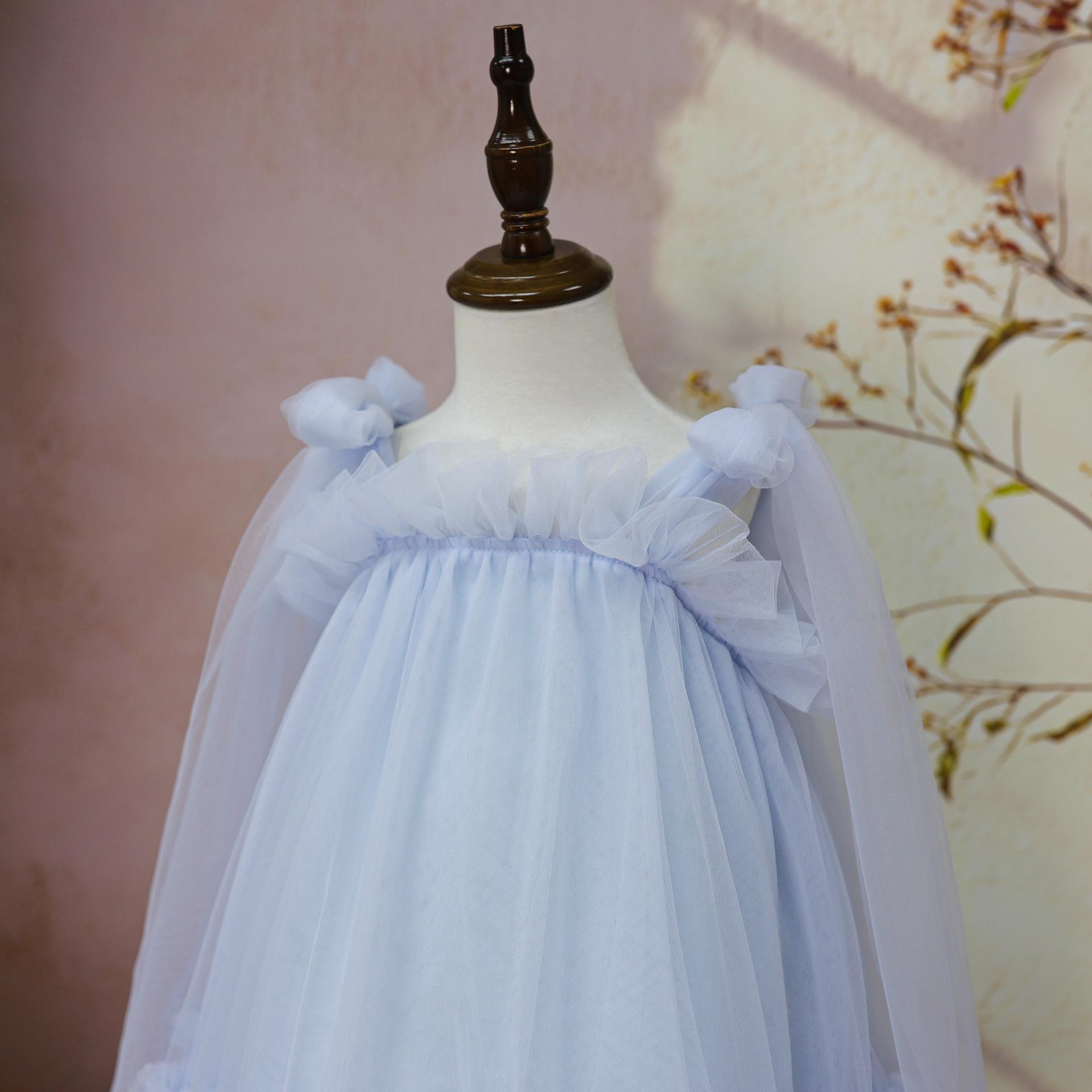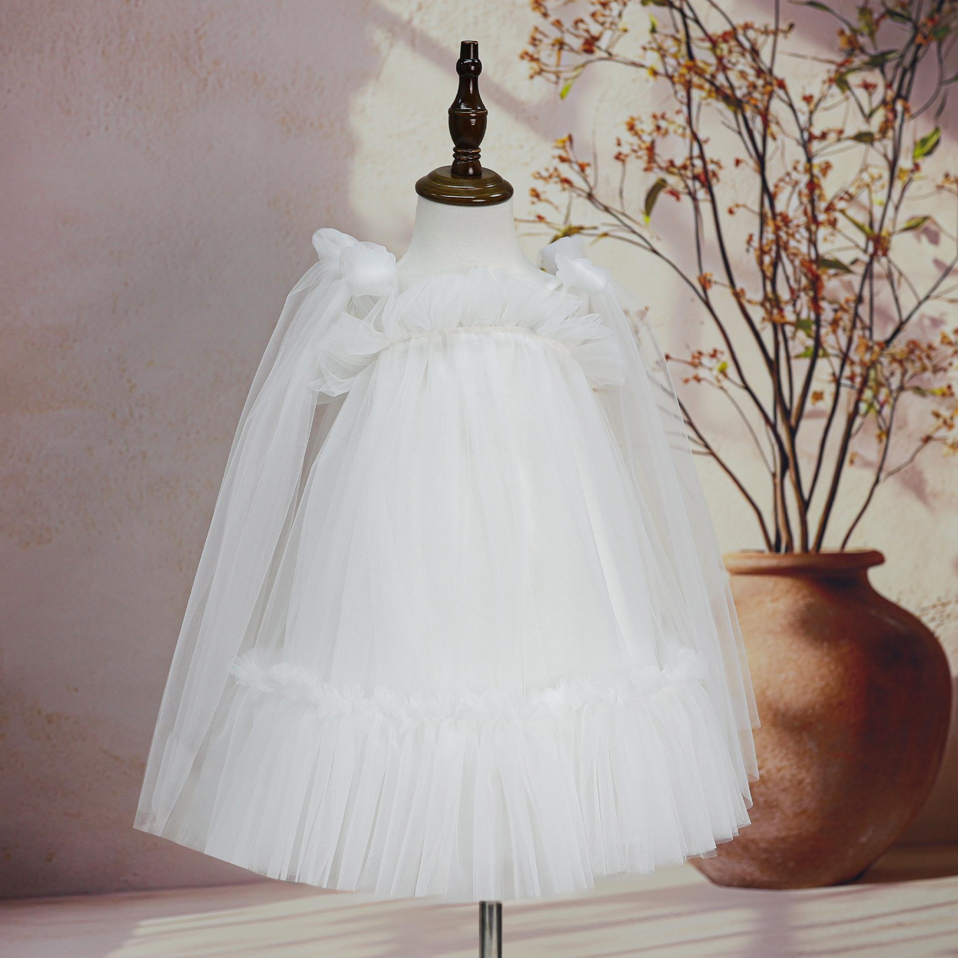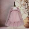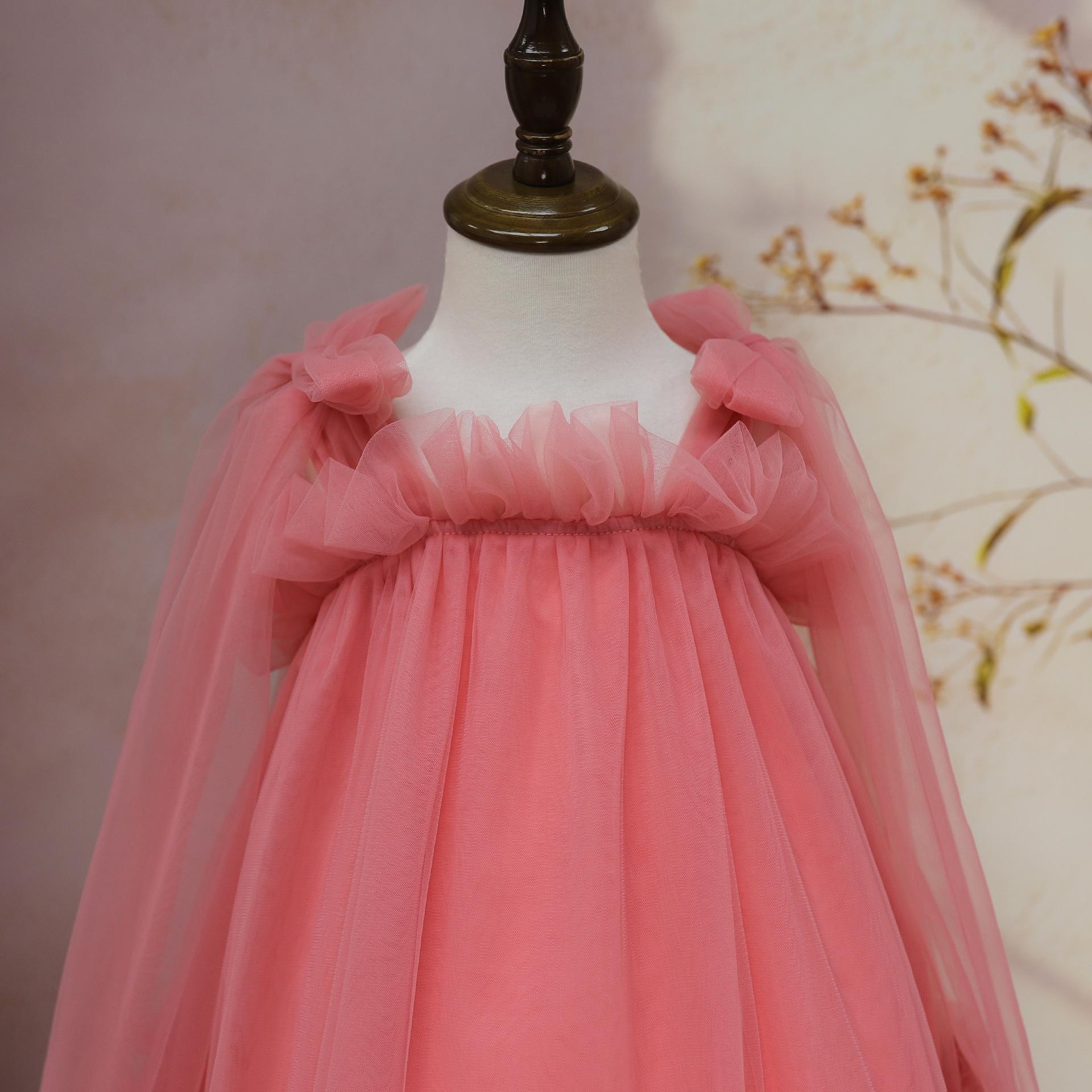 Vestido de Princesa de Verano para Niñas, Vestido Dulce de Tul, Vestido Liso de Malla con Manga Abullonada para Niñas, Venta al por Mayor