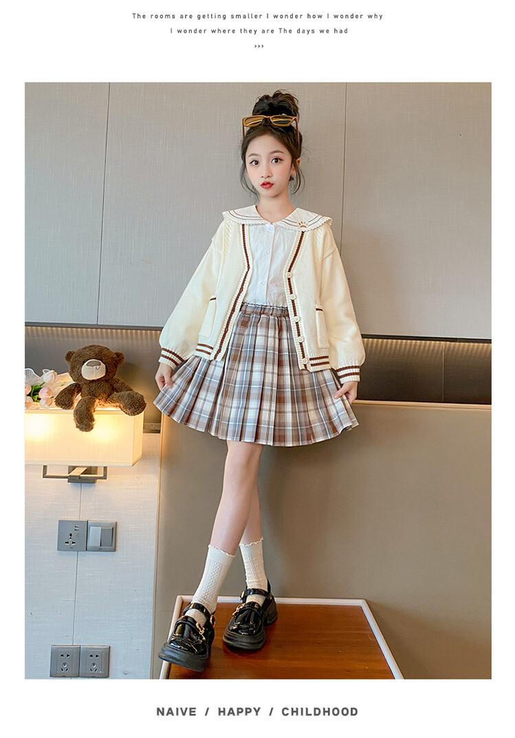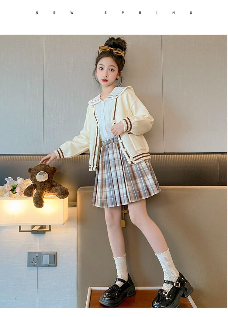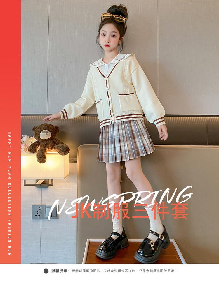 Conjunto de Uniforme JK para Niñas Primavera y Otoño 2024 Nuevo Estilo Universitario para Niños Falda Plisada Conjunto de Tres Piezas a la Moda