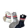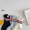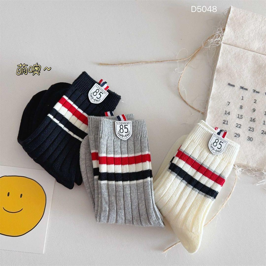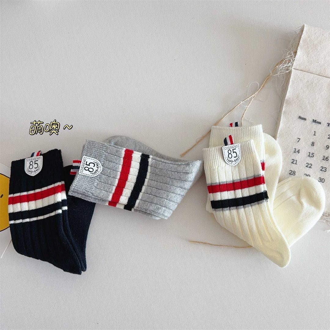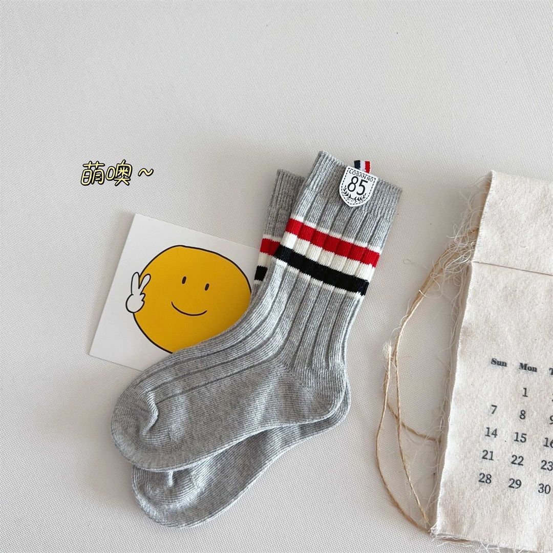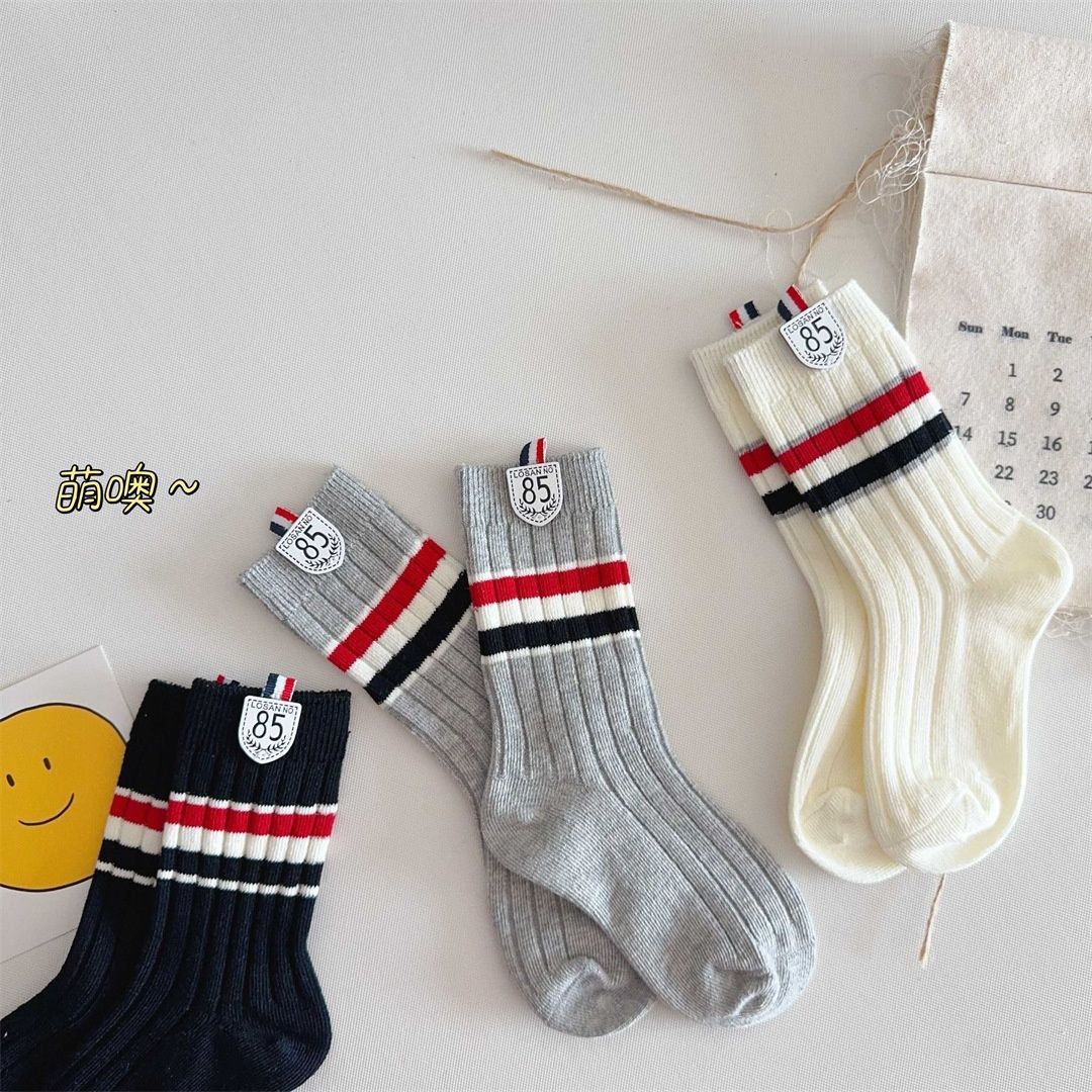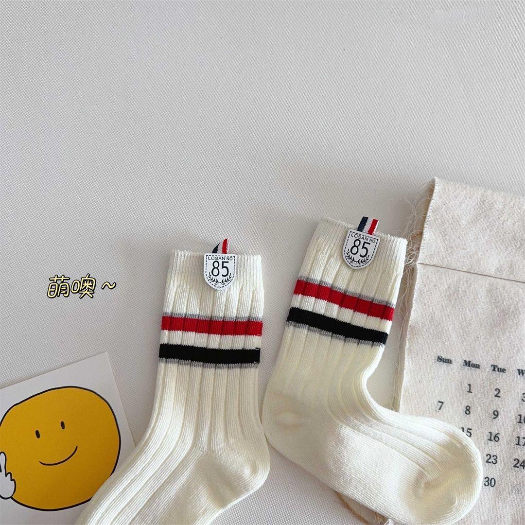 Calcetines para Niños Primavera y Otoño Nuevos Calcetines Medios de Pantorrilla Calcetines para Niños y Niñas Bloque de Color Raya Estilo Universitario Versátiles Etiqueta de Tela Estudiante Calcetines de Algodón