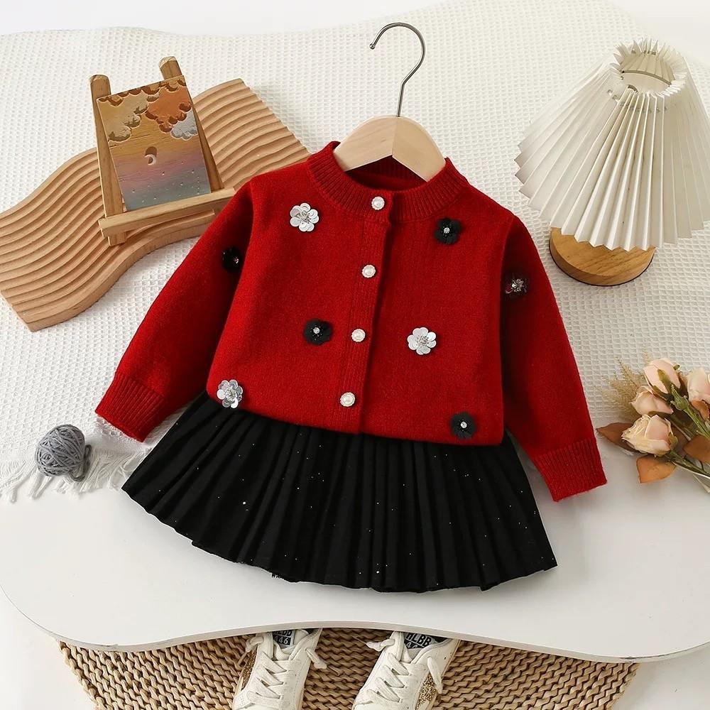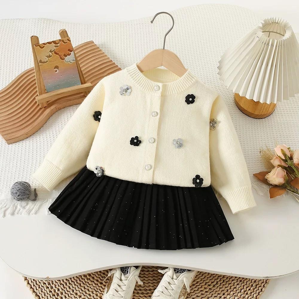 Conjunto de Suéter para Niña 2025 Primavera y Otoño Nuevo Estilo Coreano Moderno Color Sólido Cárdigan Tejido para Bebé Conjunto de Dos Piezas Trendy