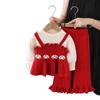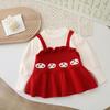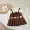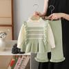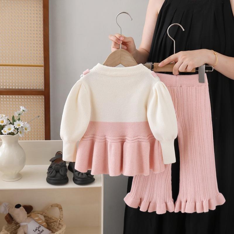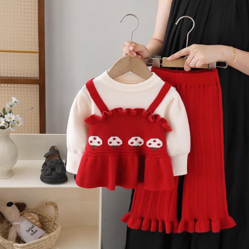 Set de Suéter para Niños con Vestido de Tirantes y Pantalones 2025 Otoño Nuevo Cuello Redondo Tejido Dos Piezas Suéter para Niñas
